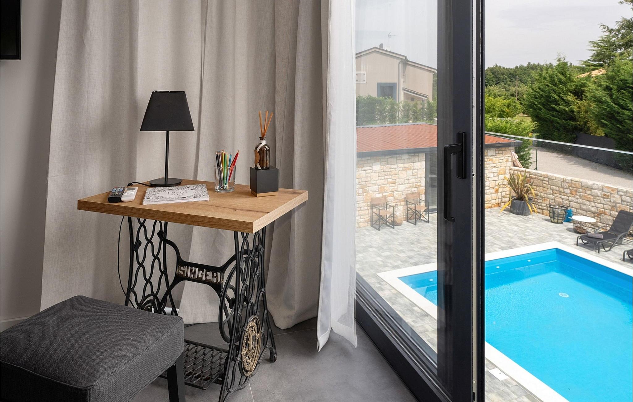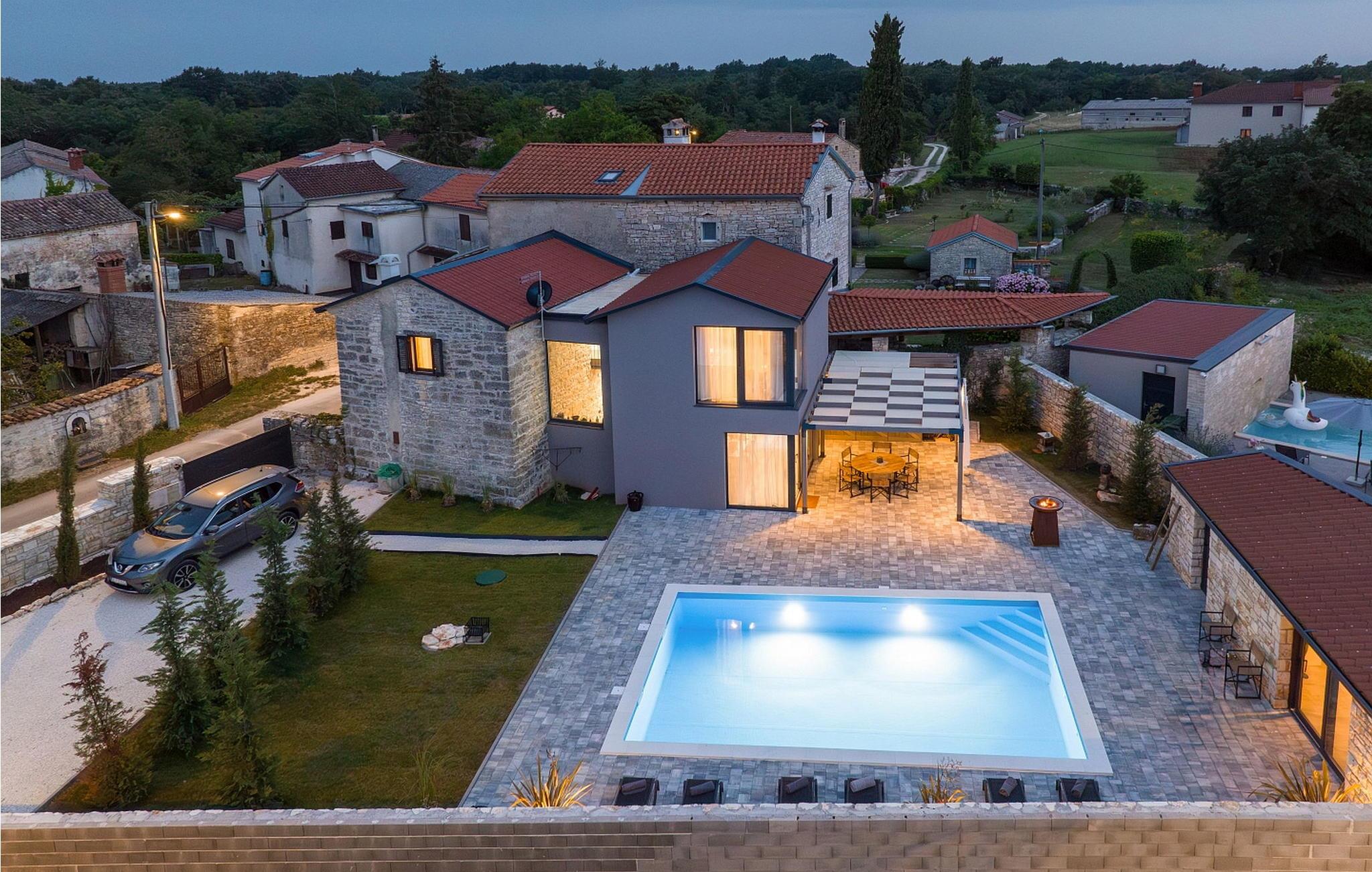 Casa La Tabachina ist eine moderne Villa mit Pool am Rande des Dorfes Sivati in der Nähe von Kanfanar im Binnenland Istrien.