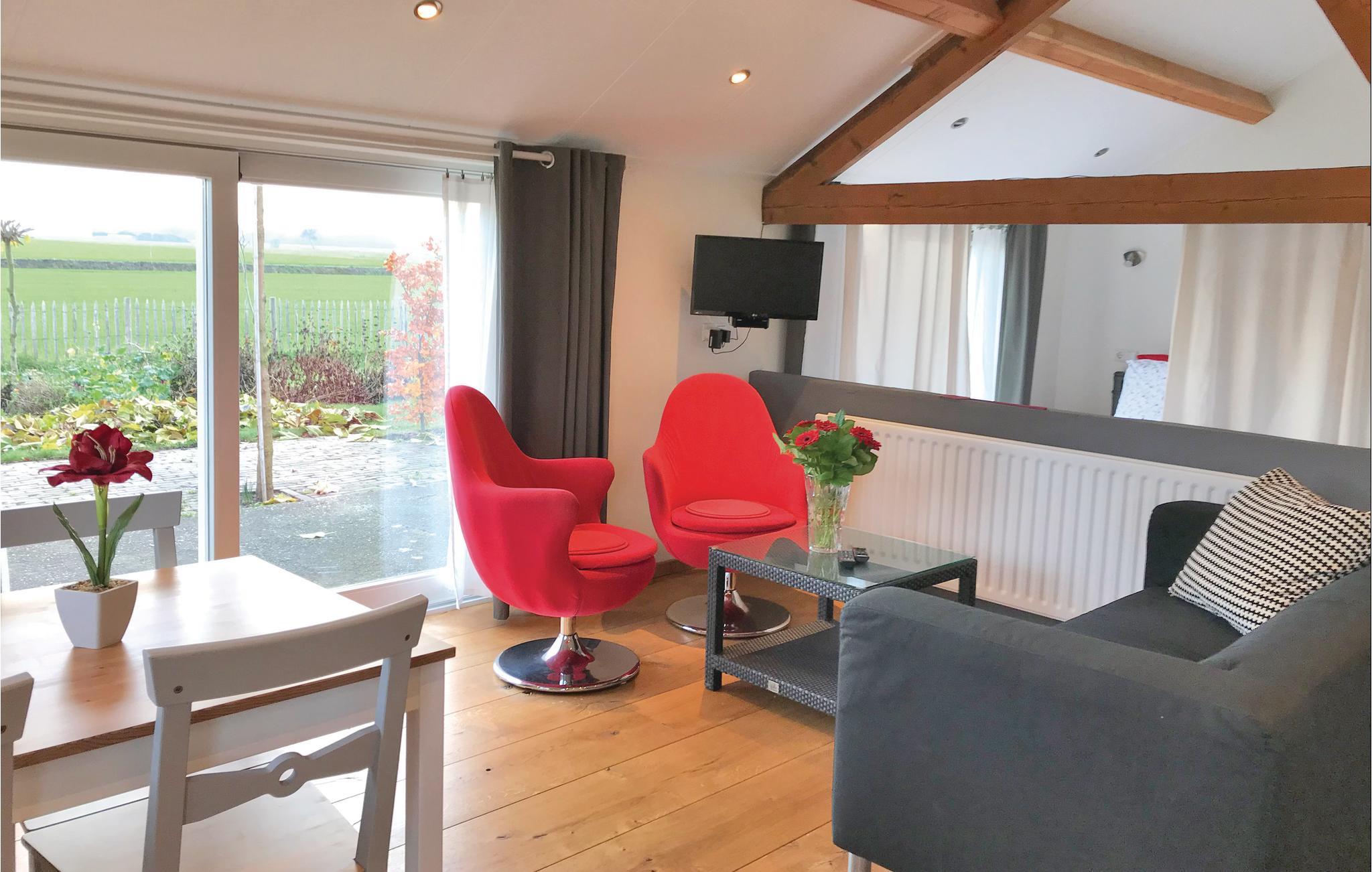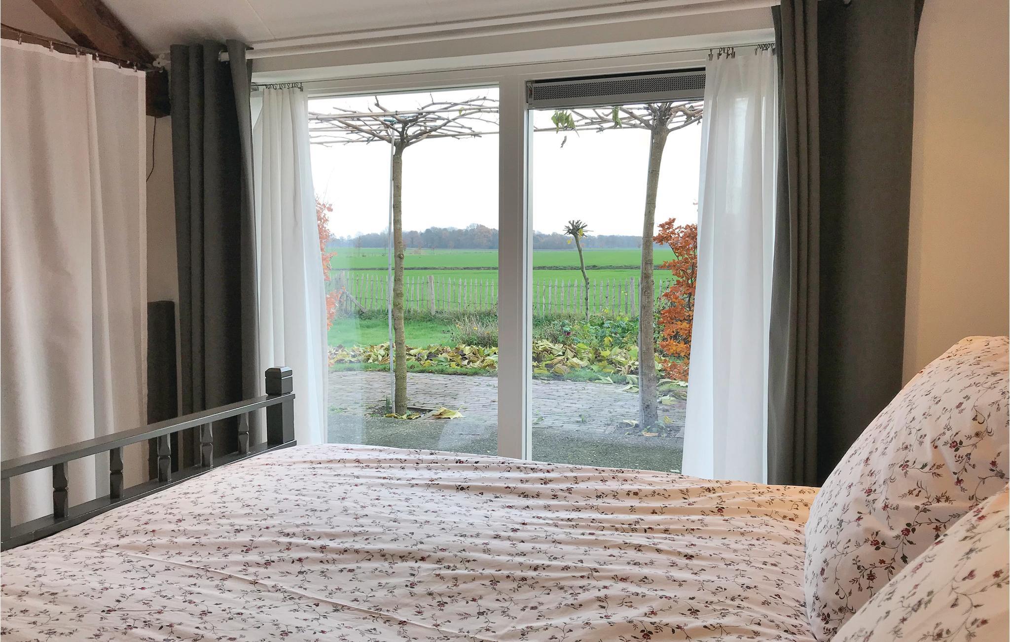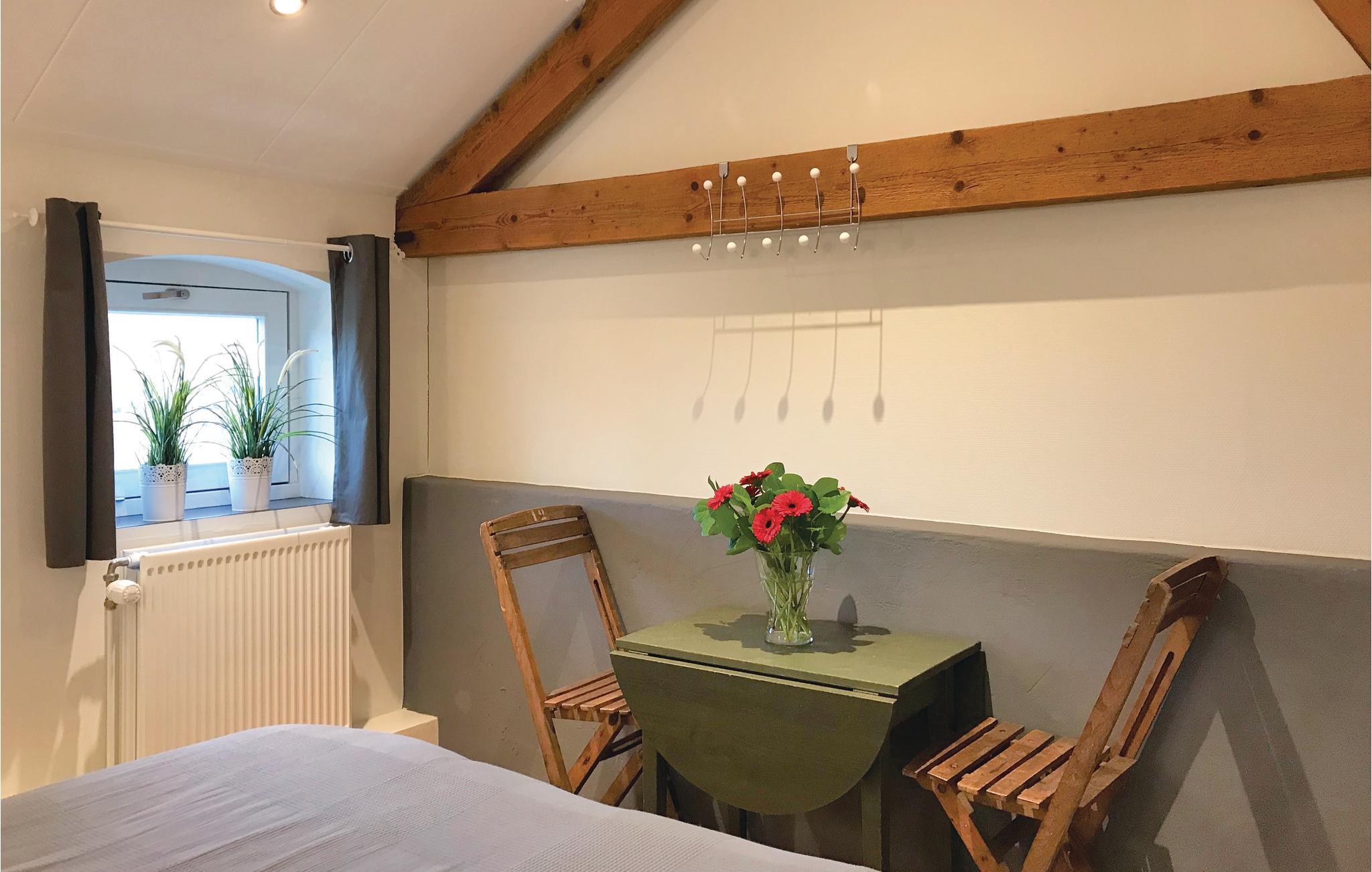 Das Ferienhaus verfügt über zwei Schlafzimmer, eines ist im eigentlichen Wohnzimmer, jedoch trotzdem komfortabel und mit Holz abgeschirmt. Das zweite Schlafzimmer ist geschlossen und hat ein Doppelbett. Die moderne Küche verfügt über die notwendigen Annehmlichkeiten, wie einen Geschirrspüler, Filterkaffeemaschine und eine Mikrowelle. Durch Französische Türen erreichen Sie die schöne Terrasse, wo Sie auch Ruhe und Privatsphäre genießen können.