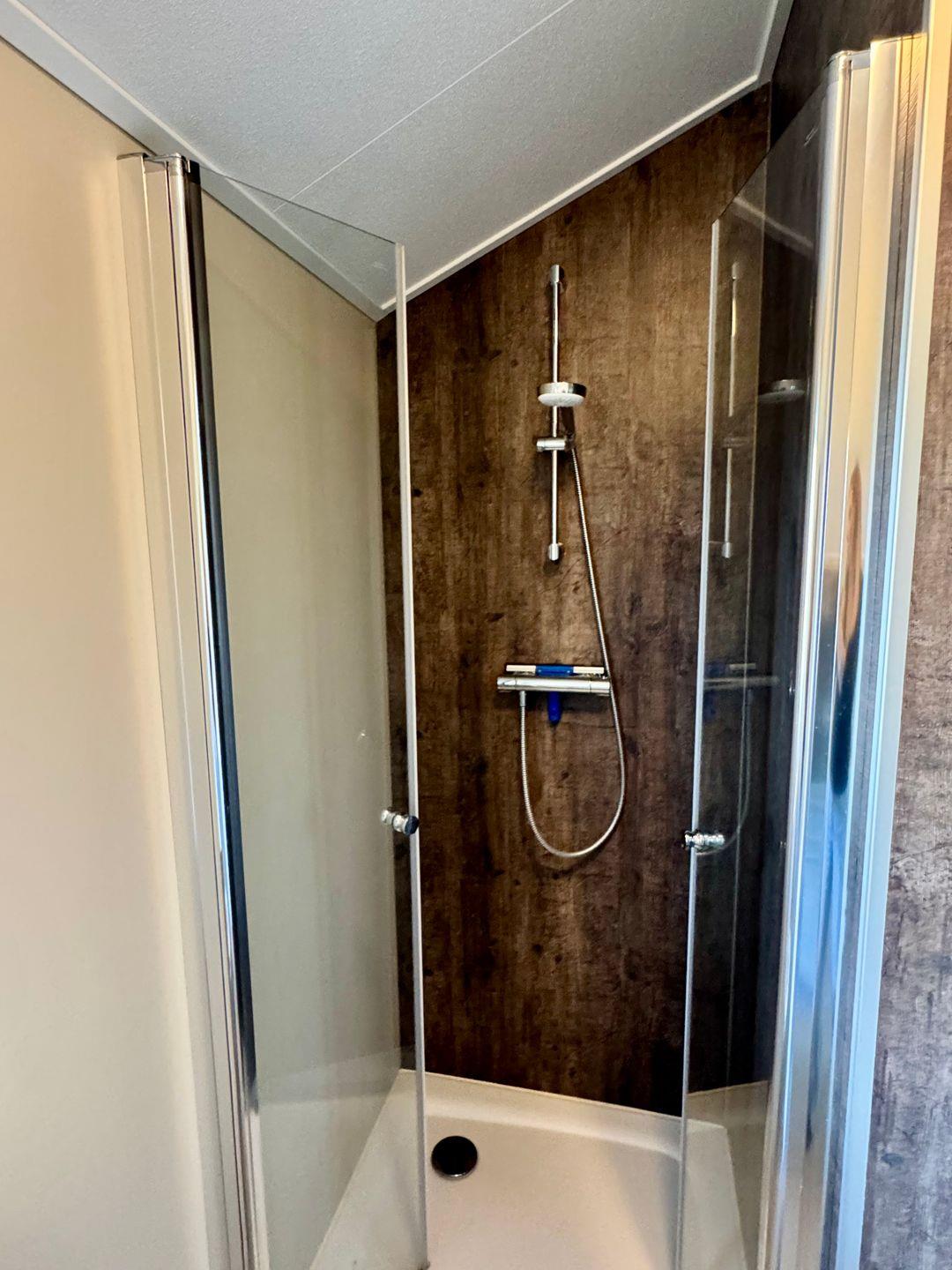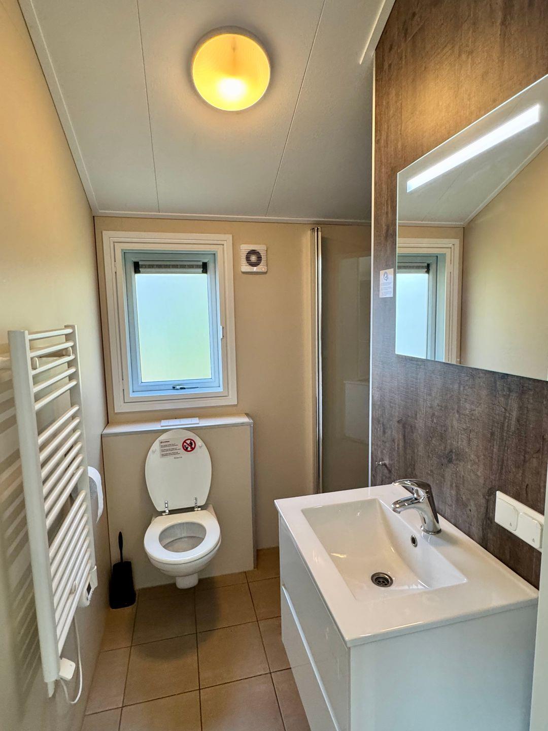 Im Badezimmer stehen Ihnen eine bodengleiche Dusche, WC, Waschbecken, Spiegel und ein Fenster zur Verfügung. Für zusätzlichen Komfort sorgen Klimaanlage im Wohnraum, Heizung, Fliegengitter, Garderobe und ausreichend Stauraum. Waschmaschine und Trockner können im Park gemeinschaftlich genutzt werden; außerdem sind Wäscheständer, Staubsauger, Abfalleimer sowie wichtige Sicherheitsausstattung wie Rauchmelder und Feuerlöscher vorhanden.