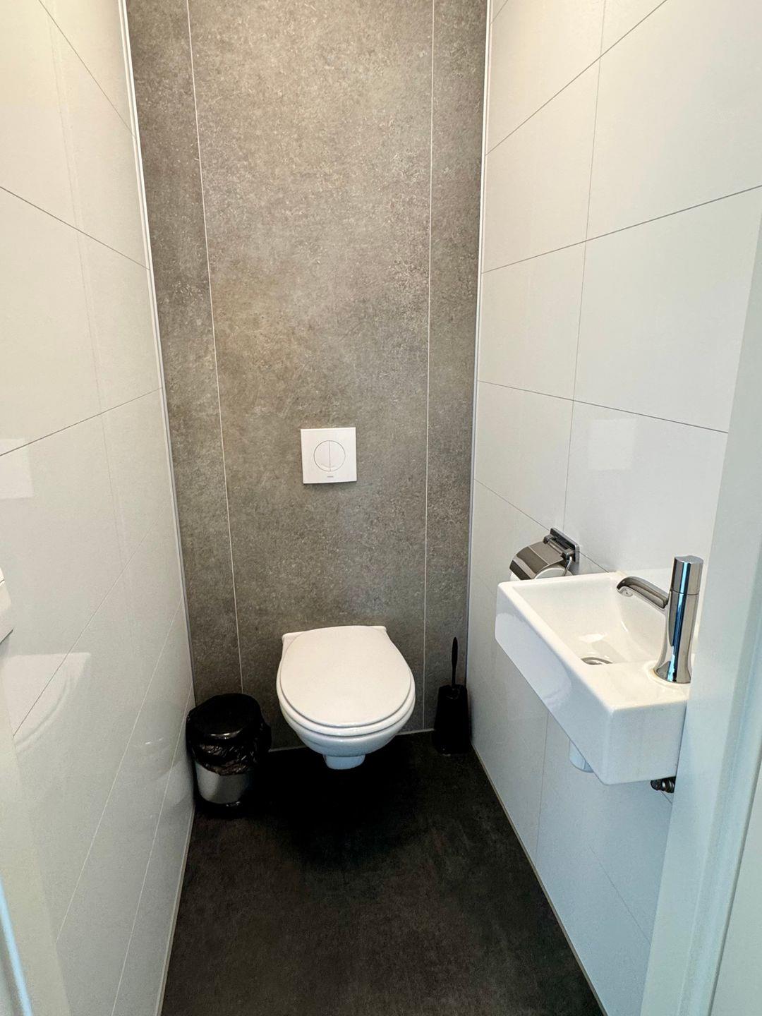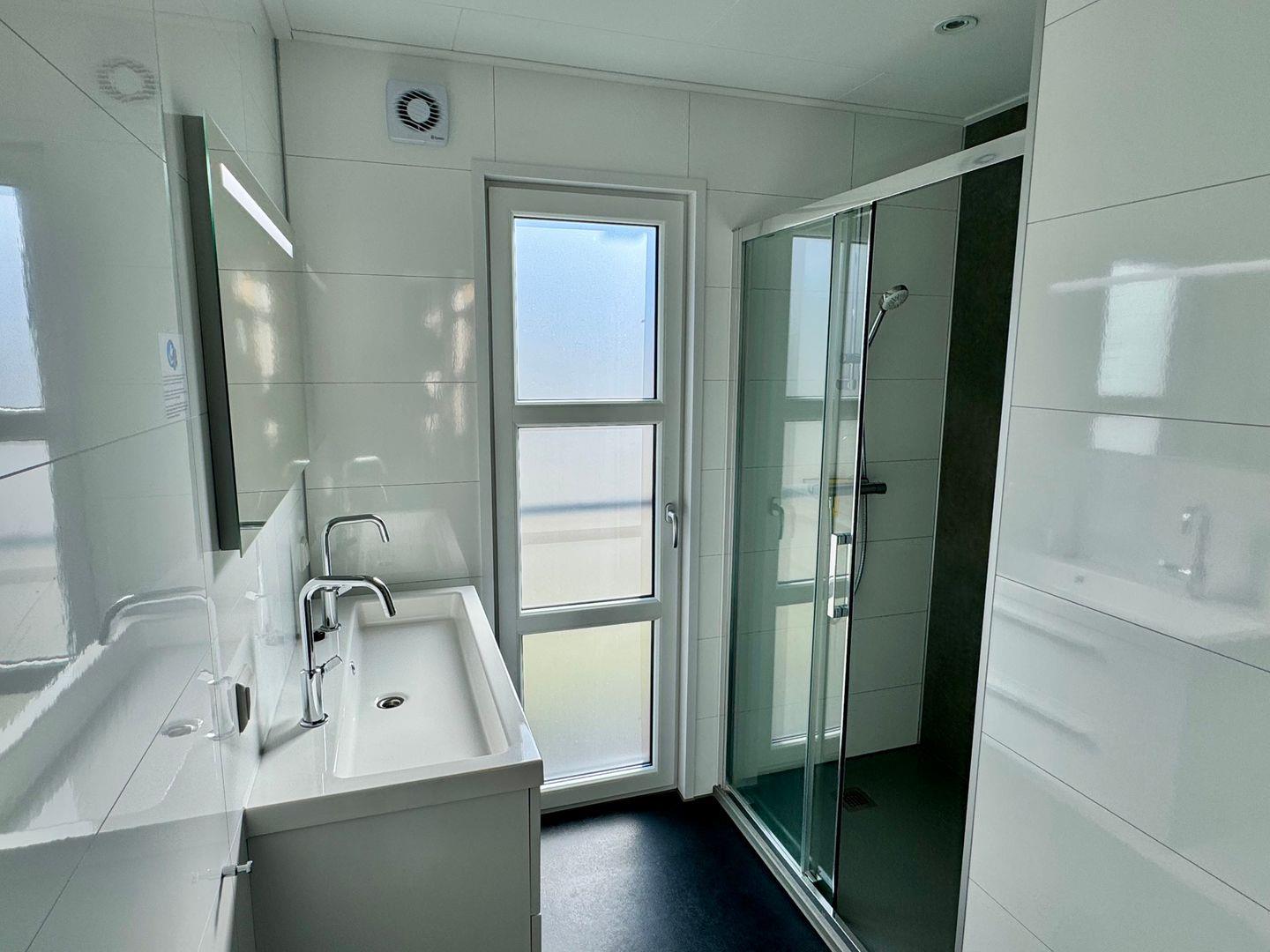 Das Chalet verfügt über 1 Badezimmer mit Fenster, Waschbecken, Spiegel und bodengleicher Dusche. Zur weiteren Ausstattung gehören Garderobe, Kommoden, Wäscheständer, Staubsauger sowie Rauchmelder und Feuerlöscher. Das Chalet verfügt auch über Fliegengitter. Waschmaschine und Trockner können gemeinschaftlich genutzt werden.