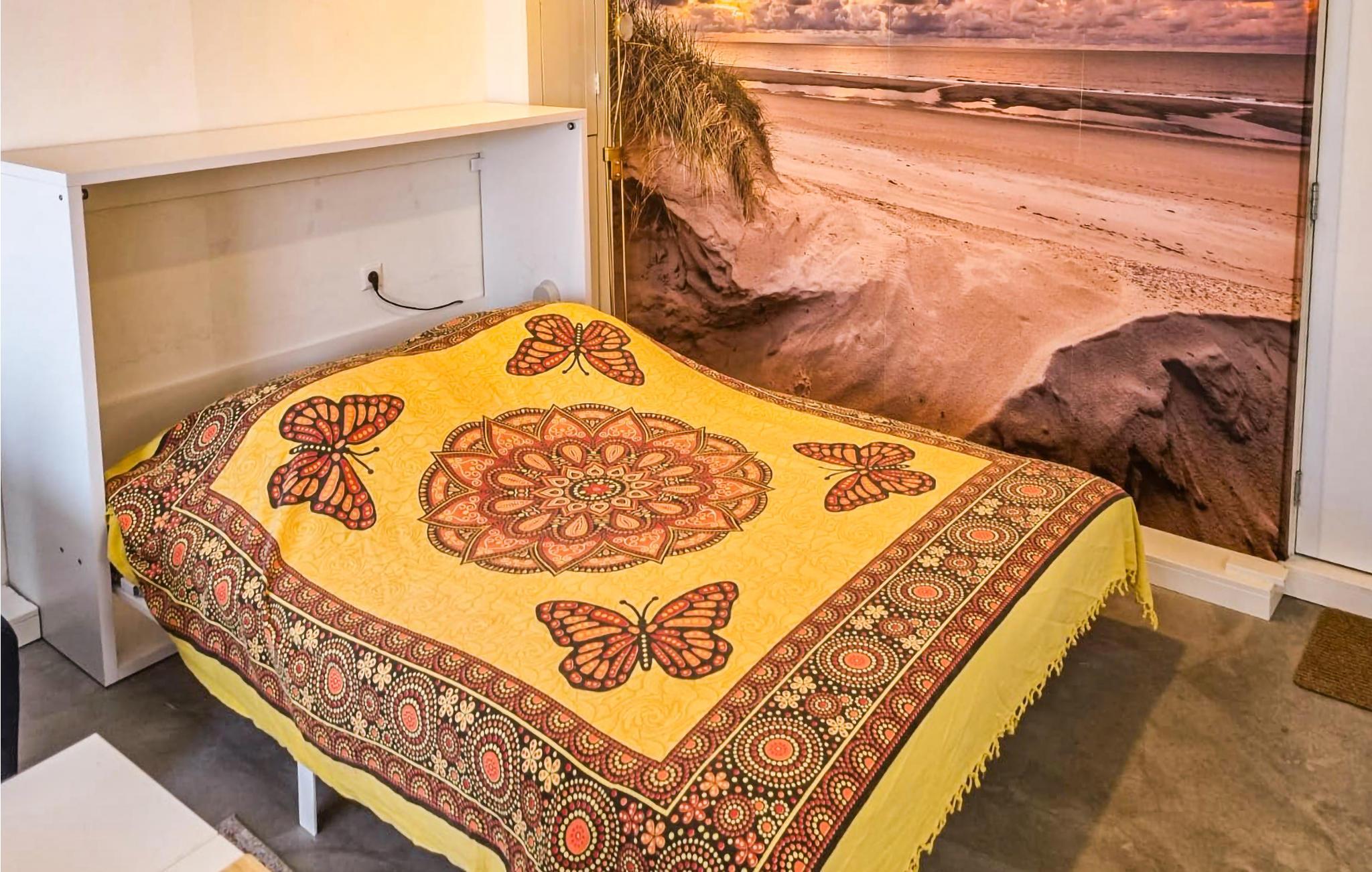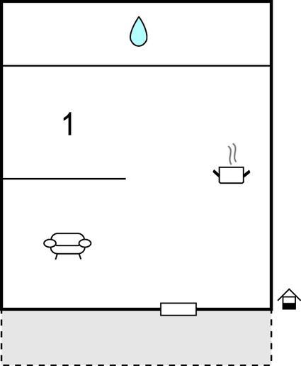 Der Wohnbereich lädt zum Essen oder Entspannen ein und in der offenen Küche können Sie gut zusammen die Mahlzeiten des Urlaubs zubereiten. Das Doppelbett befindet sich in einer romantischen Nische, hier werden Sie bestimmt gut schlafen. Das kleine Badezimmer hat eine schöne Dusche, Waschbecken und Toilette.