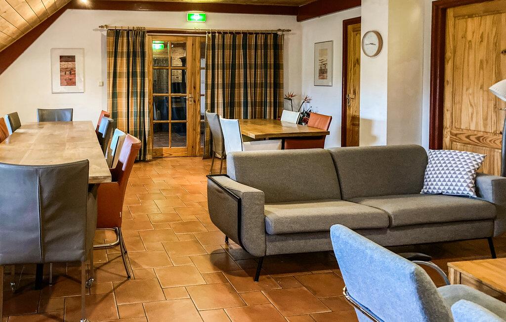 Der ehemalige Bauernhof in Boazum bietet drinnen und draußen angenehme Ecken zu Verweilen. Die charakteristischen Holzbalken geben dieser Gruppenunterkunft einen authentischen Look. Dieses Ferienhaus ist ideal für ein Wochenende oder einen langen Urlaub mit Familie, Freunden oder Kollegen. Auf der oberen Etage befindet sich ein großer Aktivitätsraum mit TV, Billard und Tischtennis. Entspannen Sie im Wellnessbereich, wo Sie die Sauna und den Whirlpool nutzen können. Im Erdgeschoss befinden sich die Küche und ein großer Wohn- und Essbereich. Fünf Schlafzimmer haben den Komfort eines eigenen Badezimmers. Das Schlafzimmer mit Etagenbett und das Schlafzimmer mit Bettkasten sind nur über ein anderes Schlafzimmer zugänglich. Zwei Schlafzimmer sind mit einer kleinen Küche ausgestattet. Verbringen Sie die schönen Sommerabende auf der offenen Terrasse mit Grillen und bewundern Sie die weite Aussicht. Die engagierten Hausbesitzer bewohnen das Wohnhaus und haben einen abgeschlossen Bereich, so dass Sie Ihre Privatsphäre genießen können.