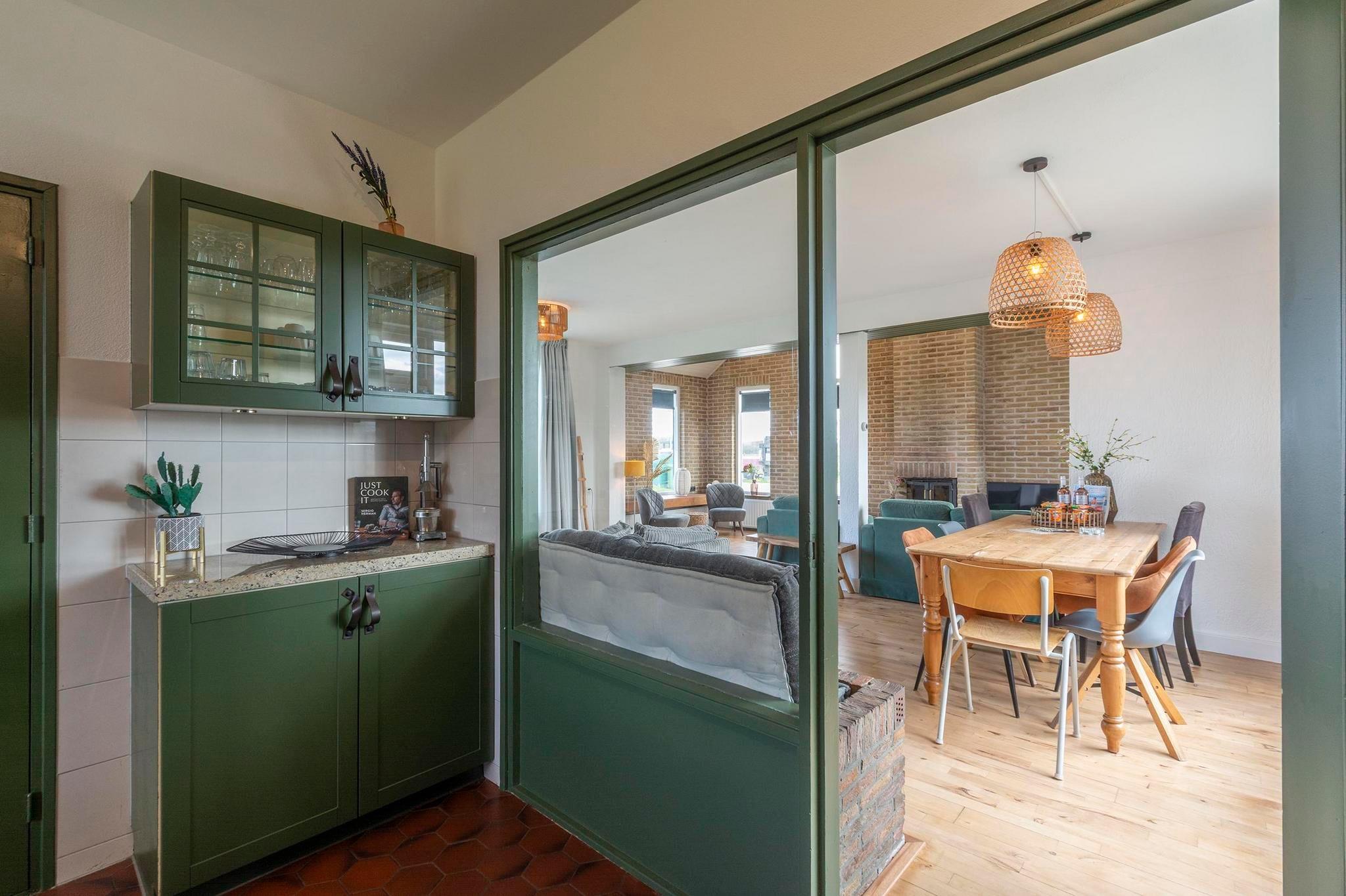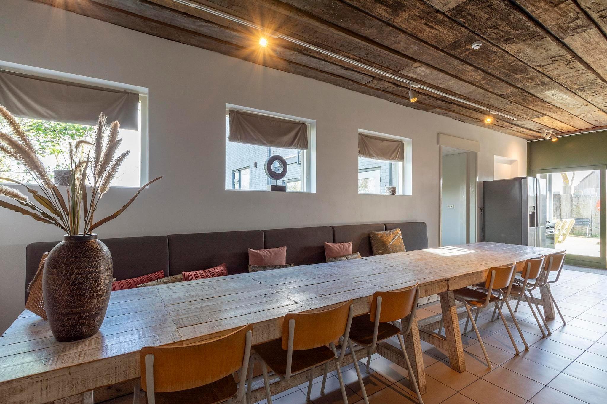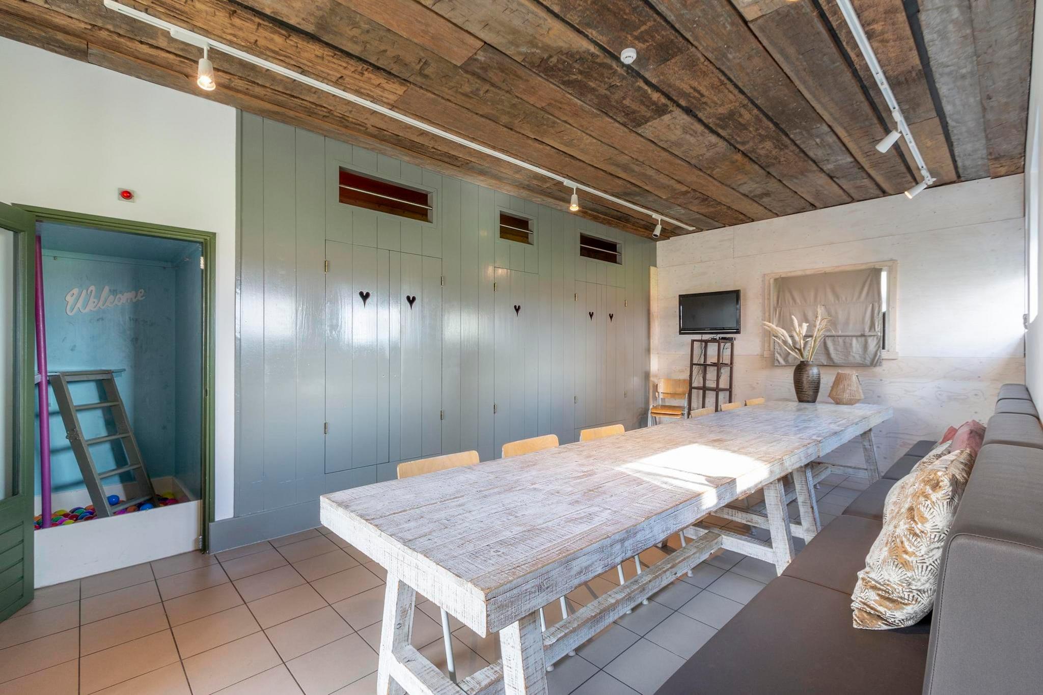 Dieses charmante Ferienhaus eignet sich perfekt für große Familien oder Gruppen und bietet eine gemütliche Mischung aus rustikalem Charakter und modernem Komfort. Das großzügige Anwesen ist geschickt in einen vorderen und einen hinteren Bereich unterteilt und bietet sowohl gemeinschaftliche als auch private Bereiche. Im hinteren Bereich befindet sich ein großer Gruppenraum mit zwei Alkoven für vier Gäste, ideal für gemeinsame Mahlzeiten, Spiele oder Filmabende. Ein angrenzendes Kinderzimmer mit drei Betten und einem tollen Bällebad sorgt für Unterhaltung bei den kleinen Gästen. Im vorderen Bereich sorgt ein einladendes Wohnzimmer mit mehreren Sitzbereichen und einem funktionierenden Kamin für eine warme Atmosphäre. Der angrenzende Essbereich bietet Platz für acht Personen, und die halboffene Küche ist komplett ausgestattet mit einem 5-Flammen-Herd, Backofen, Geschirrspüler und ausreichend Kochgeschirr für bis zu 18 Gäste. Im Obergeschoss befinden sich drei Doppelzimmer, ein Zimmer mit zwei Etagenbetten und ein Badezimmer mit Dusche. Im zweiten Stock befinden sich zwei weitere Schlafzimmer und ein geräumiges Badezimmer mit Whirlpool-Badewanne. Das Haus ist von einem gepflegten Garten und einer Westterrasse umgeben, auf der Sie den ganzen Tag die Sonne genießen können. Eine Schiebetür verbindet den Gruppenraum direkt mit der umzäunten Terrasse. Dank der Nähe zum Duynpark haben Gäste außerdem Zugang zu Kinderspielplätzen. Dies macht diesen Raum zum idealen Rückzugsort für Familientreffen oder Gruppenausflüge.