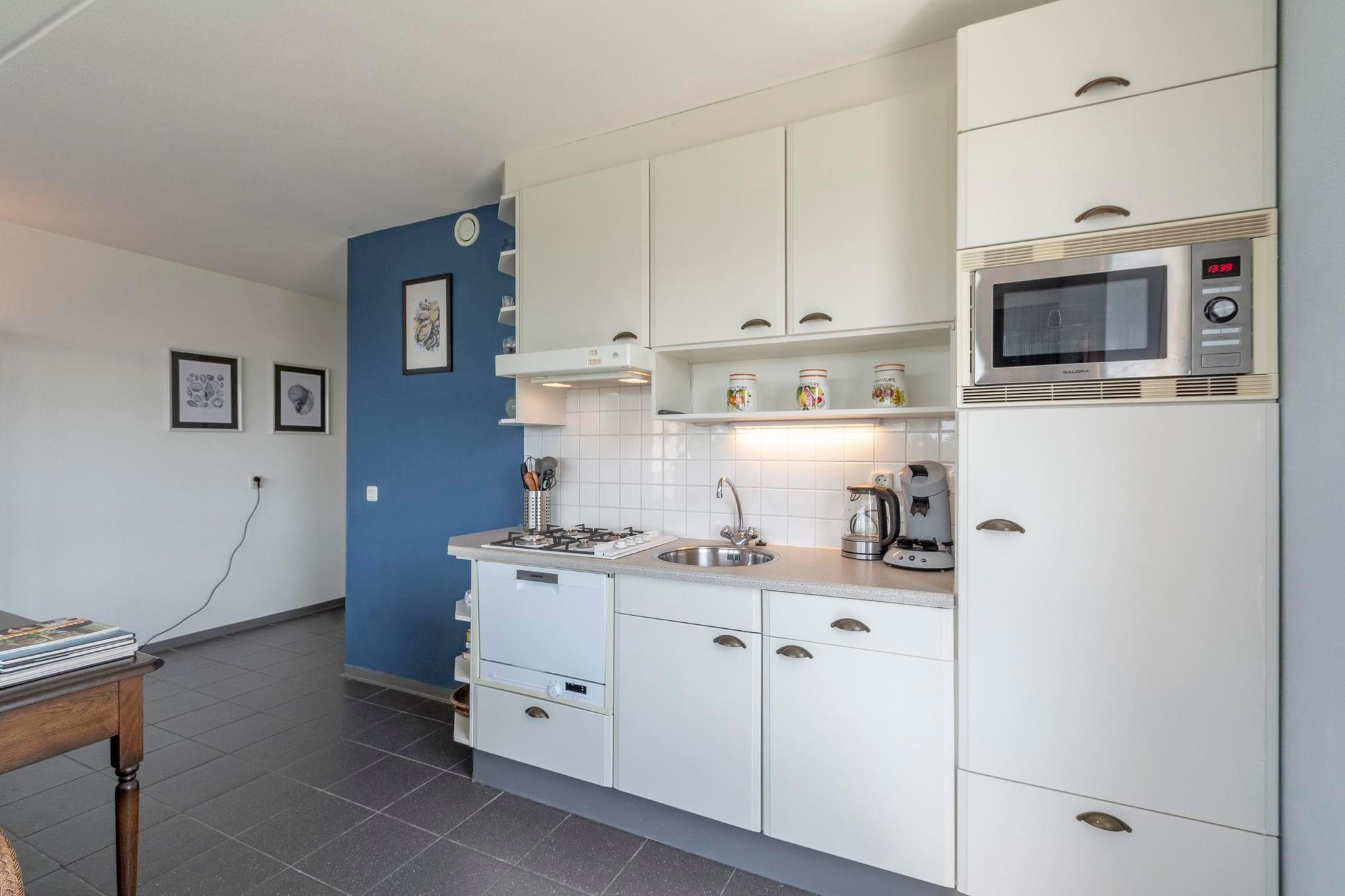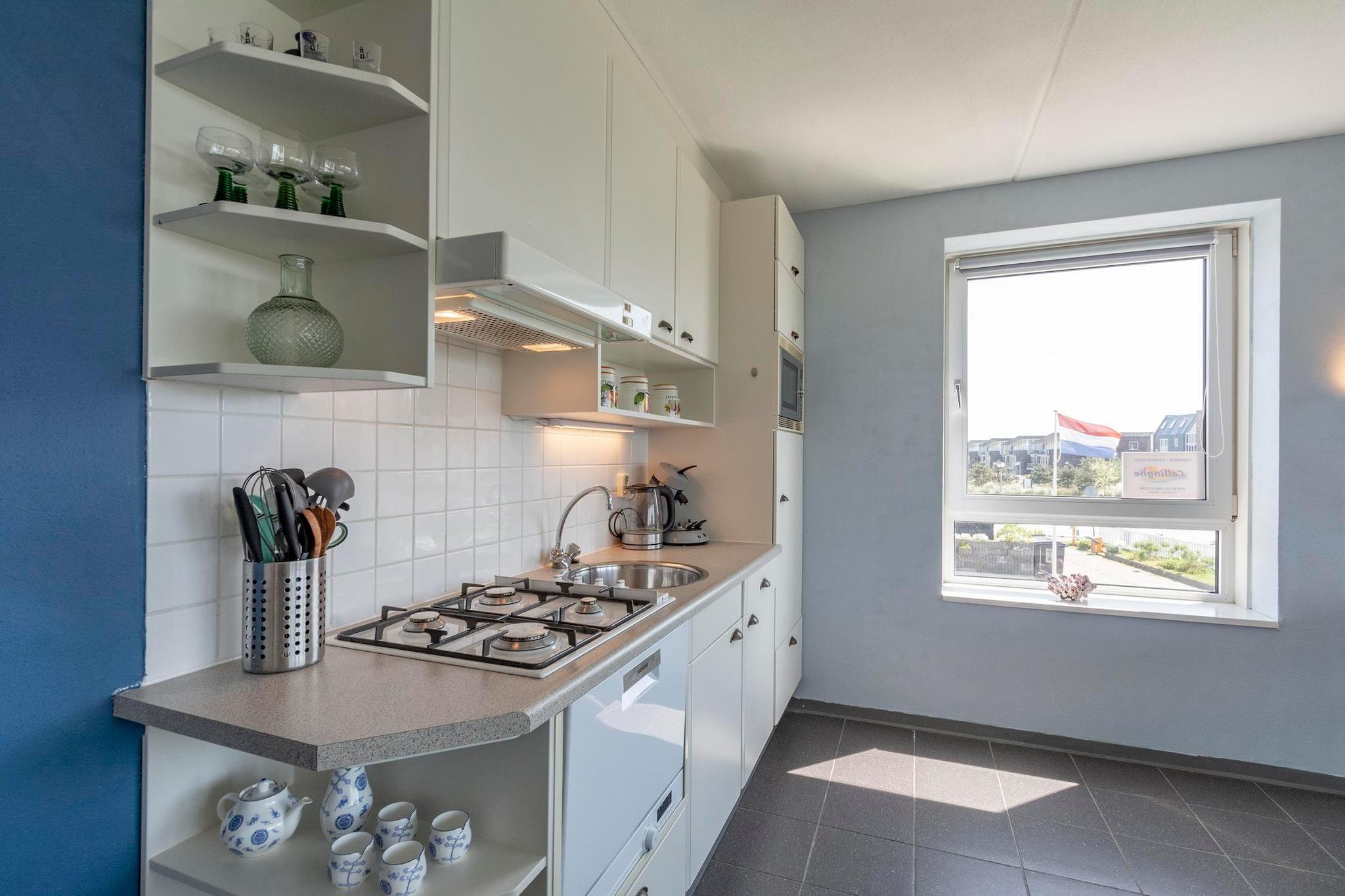 Eingebettet in die ruhigen Dünen von Groote Keeten bietet diese stilvolle Ferienwohnung die perfekte Mischung aus modernem Komfort und maritimem Charme. Mit 60 m² ist sie ideal für bis zu vier Gäste, die einen erholsamen Küstenurlaub verbringen möchten. Das helle Wohnzimmer geht nahtlos in einen großen Südwestbalkon über, auf dem Sie die Sonne genießen, abends Drinks genießen oder einfach die salzige Meeresluft einatmen können. Im Inneren befindet sich eine gemütliche Essecke neben der offenen Küche – kompakt und dennoch voll ausgestattet für alle Kochbedürfnisse. Die Wohnung verfügt über zwei einladende Schlafzimmer, eines mit Doppelbett und Kleiderschrank, das andere mit einem gemütlichen Etagenbett – ideal für Familien und Freunde. Ein geräumiges Badezimmer lädt nach einem Tag im Freien zum Entspannen ein, während das separate WC zusätzlichen Komfort bietet. Die moderne Inneneinrichtung und die durchdachte Einrichtung schaffen eine warme und einladende Atmosphäre. Dank der haustierfreien Regelung bleibt die Unterkunft ruhig und allergikerfreundlich. Außerdem ist die Lage der Wohnung ein echtes Highlight. Der Strandzugang ist nur wenige Schritte entfernt und führt zu den weiten, ruhigen Stränden, für die Groote Keeten bekannt ist. In der Nähe können Sie das lebhafte Dorf Callantsoog erkunden, malerische Dünenwege mit dem Fahrrad erkunden oder das Naturschutzgebiet Zwanenwater zum Vogelbeobachten und Wandern besuchen. Um die lokale Kultur kennenzulernen, ist die historische Stadt Schagen mit ihren Märkten und Veranstaltungen nur eine kurze Autofahrt entfernt. Ob Sie Erholung, Natur oder Abenteuer suchen – dieser Rückzugsort am Dünenufer ist Ihr Tor zu unvergesslichen Momenten am Meer.