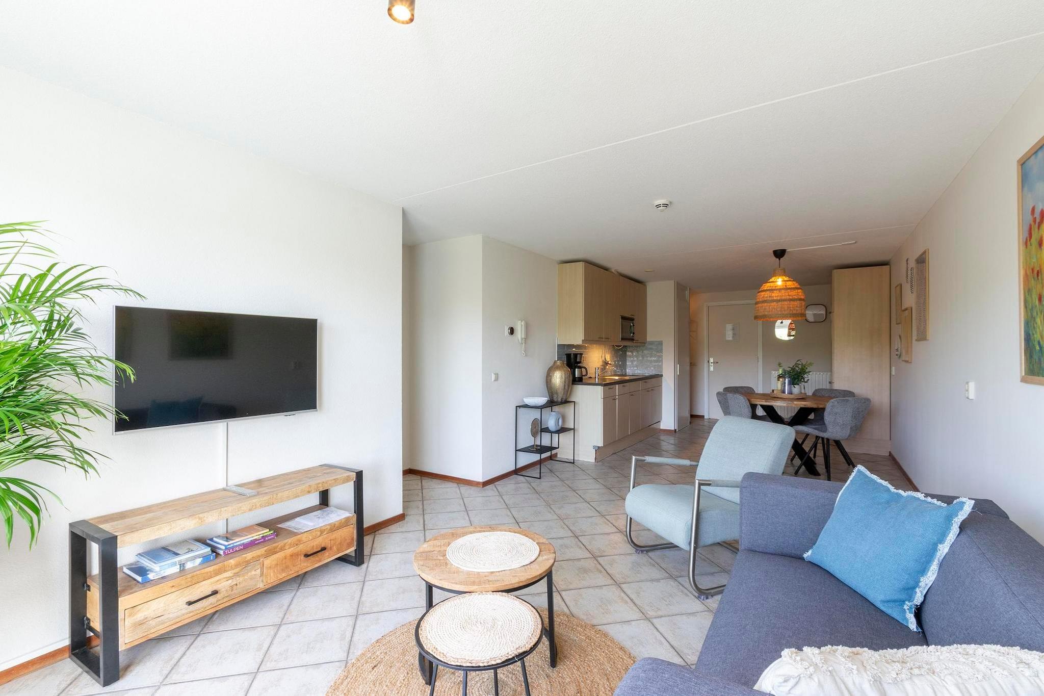 Willkommen in Ihrer farbenfrohen Ferienwohnung, die perfekt gelegen ist und nur wenige Gehminuten vom wunderschönen Strand von Callantsoog entfernt liegt. Dieser entzückende Rückzugsort ist für bis zu vier Gäste ausgelegt und bietet eine geräumige und einladende Raumaufteilung, die Komfort und Entspannung gewährleistet. Betreten Sie den Balkon und genießen Sie die atemberaubende Aussicht auf die Dünen, wo Sie die ruhige Umgebung aufsaugen können. Dank der Schiebetüren, die eine helle und luftige Atmosphäre schaffen, ist die Wohnung in natürliches Licht getaucht. Der Essbereich ist durchdacht für vier Personen ausgestattet und ideal für gemeinsame Mahlzeiten und Zusammenkünfte. Die offene Küche ist voll ausgestattet, sodass Sie während Ihres Aufenthalts problemlos Ihre Lieblingsgerichte zubereiten können. Mit zwei gemütlichen Schlafzimmern ist diese Wohnung perfekt für Familien oder Freunde. Das schöne Badezimmer verfügt über eine wohltuende Badewanne und bietet den perfekten Raum zum Entspannen nach einem Tag am Strand. Wenn Sie mit pelzigen Begleitern reisen, werden Sie erfreut sein zu wissen, dass in der Wohnung bis zu zwei Hunde erlaubt sind, was sie zu einer fantastischen Wahl für einen Familienurlaub am Meer macht. Erleben Sie den Charme und Komfort dieser Ferienwohnung in Callantsoog, wo Sie bleibende Erinnerungen am Strand schaffen können.