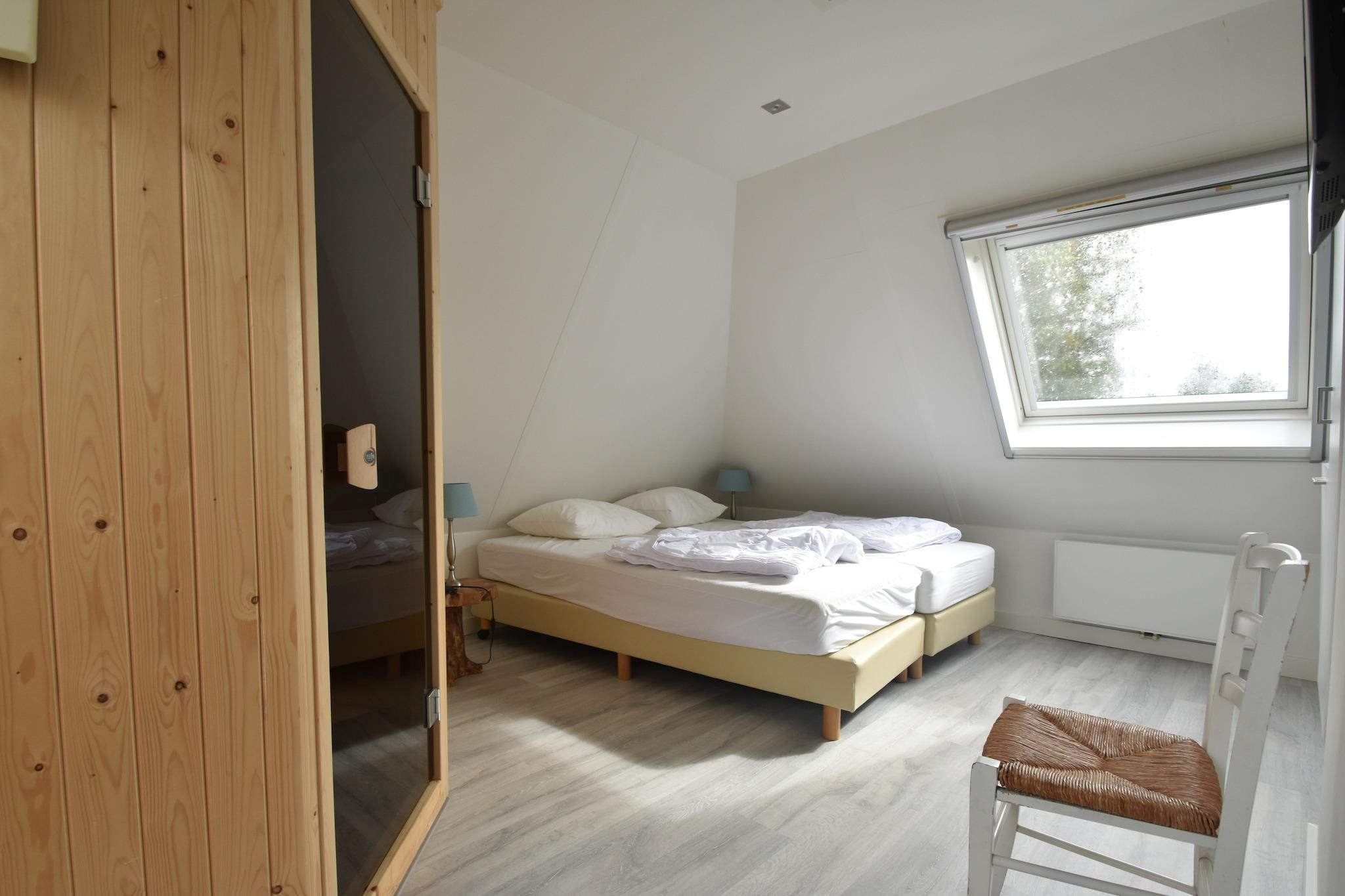 Ferienhaus für 6 bis 8 Personen am Wasser in Earnewoude. Das Dorf Earnewoude liegt zentral in der Friesischen Seenregion. Der schöne Wasserpark bietet verschiedene Einrichtungen, damit Sie und Ihre ganze Familie einen wunderschönen Urlaub oder einen Wochenendausflug genießen können. Das Haus verfügt über eine Terrasse am Wasser – wer möchte das nicht? Bringen Sie Ihre Angelrute mit und entspannen Sie sich hier so richtig. Dieser gepflegte und voll ausgestattete Bungalow verfügt im Erdgeschoss über ein Wohnzimmer, eine offene Küche und ein Schlafzimmer mit Bad. Im Obergeschoss befinden sich drei weitere Schlafzimmer, ein zweites Badezimmer und eine Infrarotkabine. Das Wohnzimmer verfügt über einen Flachbildfernseher, auf dem unter anderem Eredivisie Live läuft. Internetzugang ist im gesamten Haus verfügbar. Vor dem Ferienhaus befindet sich ein Parkplatz, und hinter dem Haus befindet sich eine Terrasse mit gepflegten Gartenmöbeln am Wasser. Dieses Wellness-Ferienhaus mit Sauna und Solarium ist die ideale Unterkunft für Natur- und Wassersportbegeisterte. Der Ferienpark liegt mitten im Friesischen Seengebiet, am Rande des wunderschönen und naturreichen Nationalparks De Alde Feanen. Die Umgebung bietet zahlreiche Möglichkeiten für Ausflüge und aktive Freizeitaktivitäten wie Segeln, Kanufahren oder Motorbootfahren. Wer lieber einen flotten Spaziergang oder eine entspannte Radtour bevorzugt, ist hier genau richtig. Der Ferienpark verfügt über ein Freibad mit Rutsche, einen Tennisplatz sowie einen Boots- und Fahrradverleih. Selbstverständlich gibt es auch ein Restaurant vor Ort, in dem Sie köstliche Mahlzeiten genießen können.