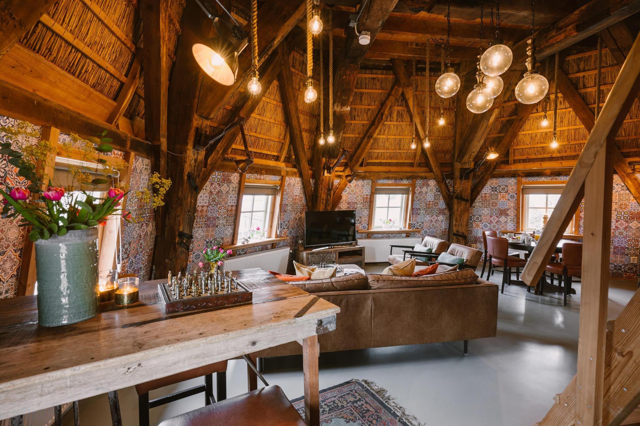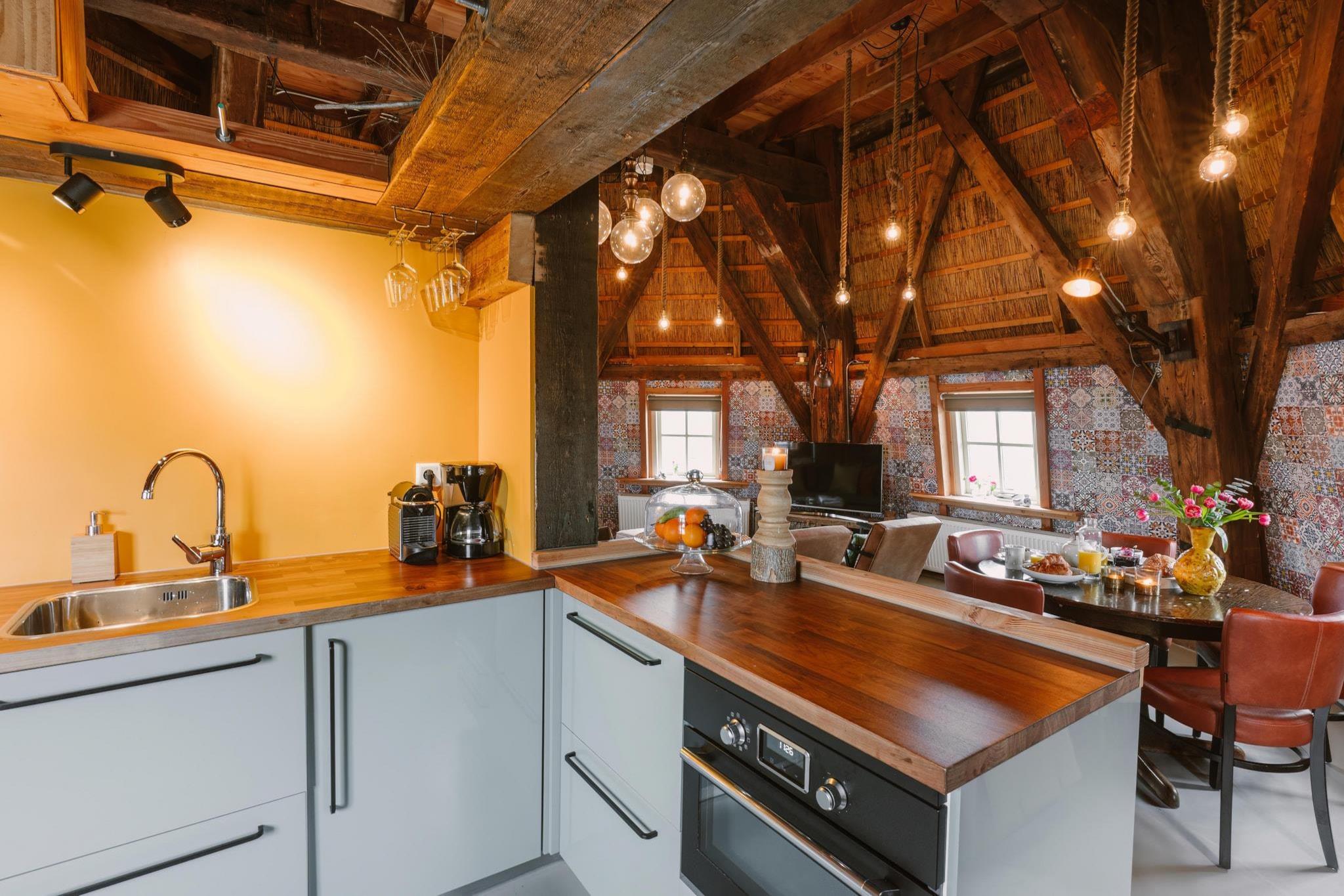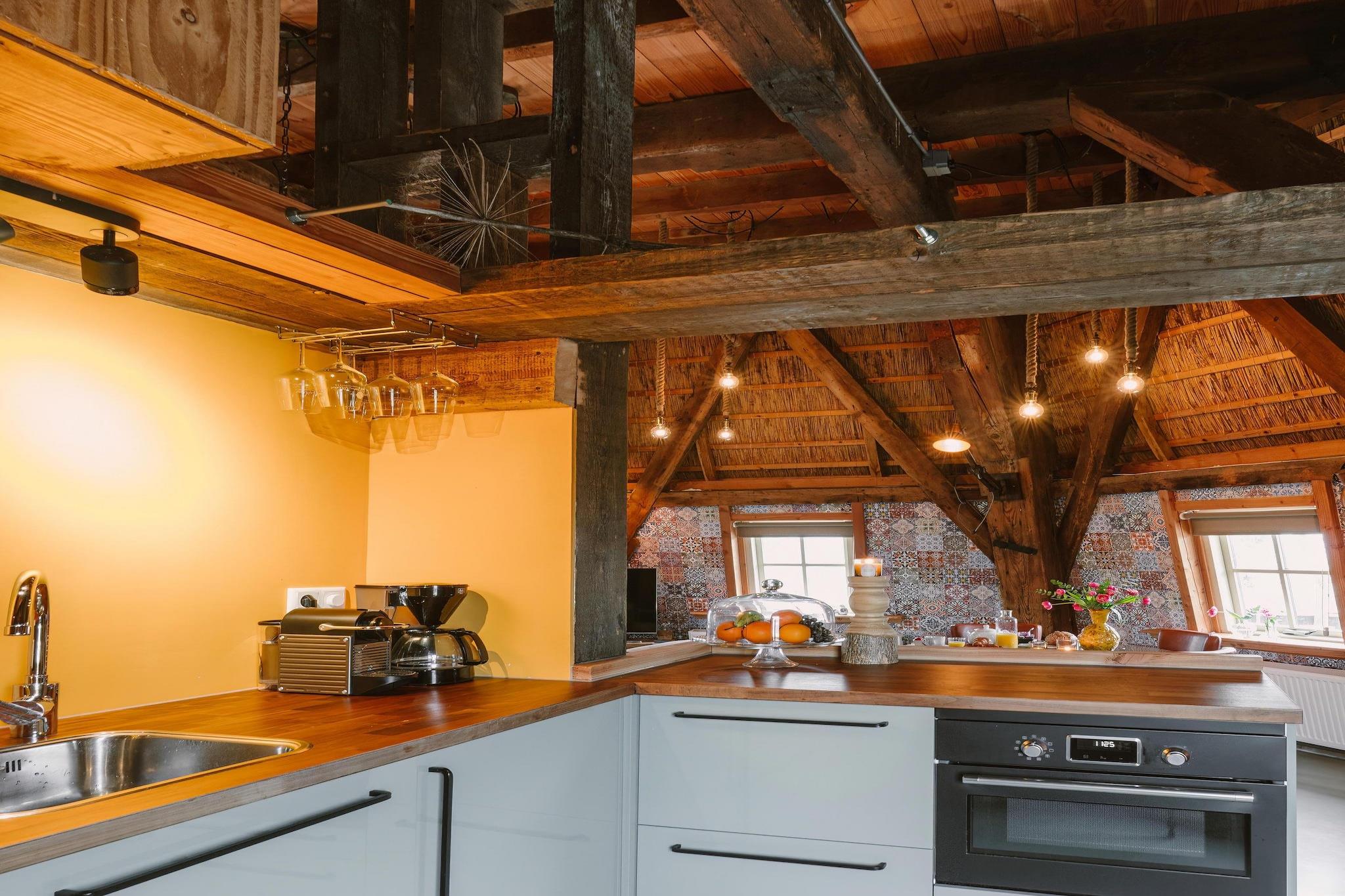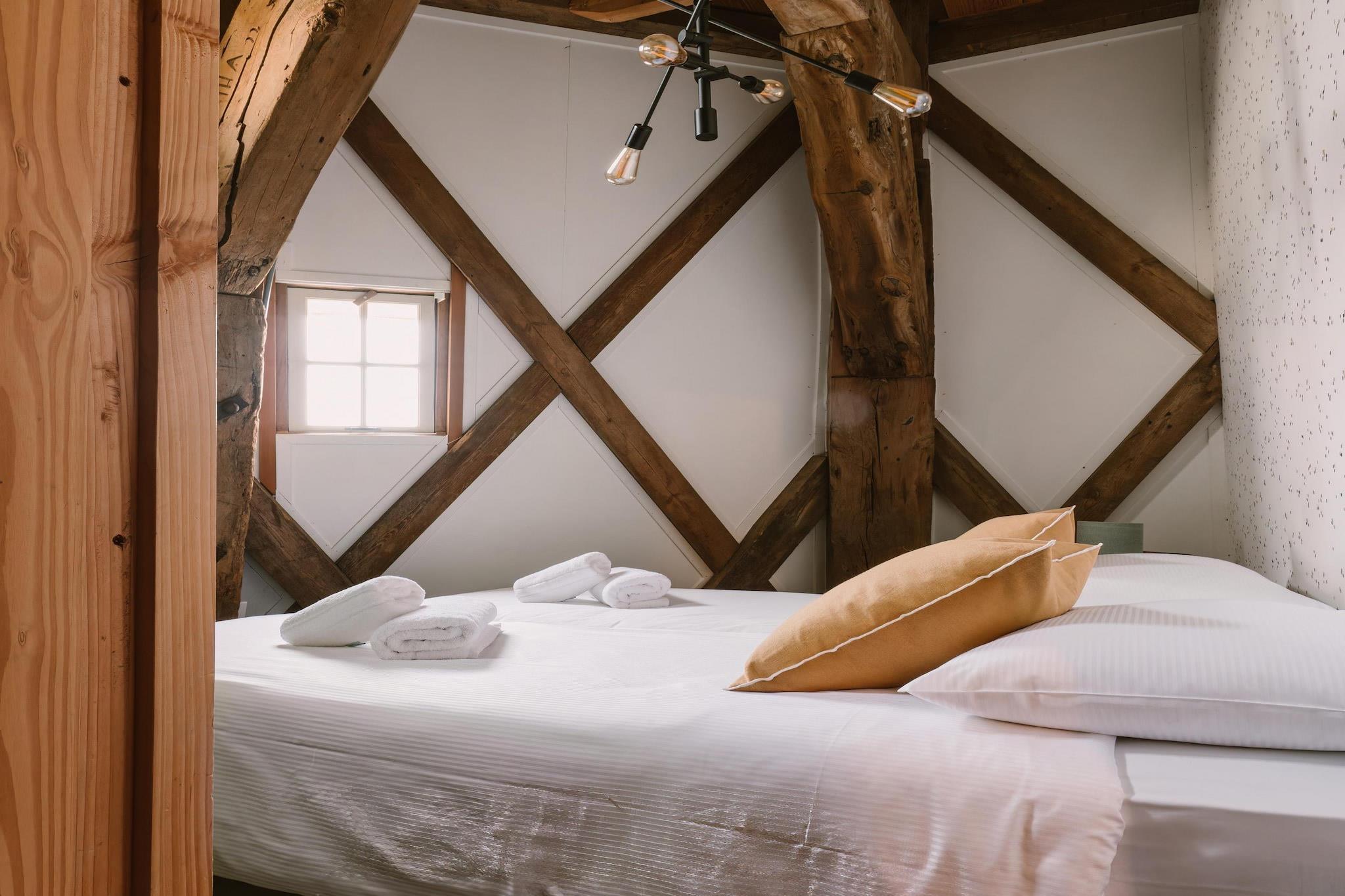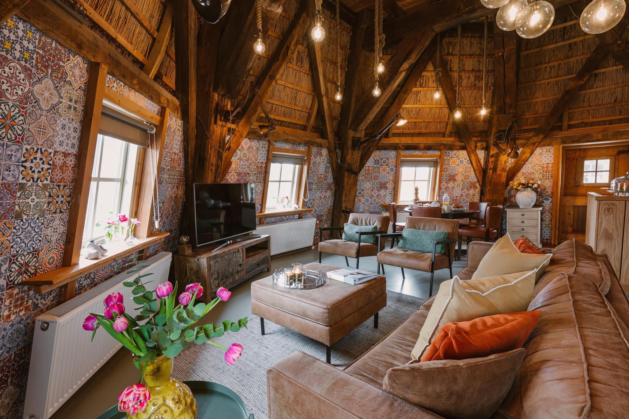 Erleben Sie einen unvergesslichen Aufenthalt in dieser einzigartigen Luxus-Ferienmühle, einem sorgfältig renovierten Wahrzeichen inmitten der malerischen Dünen von Egmond. Dieses freistehende Haus bietet ein wahrhaft einzigartiges architektonisches Erlebnis und vereint historischen Charme mit moderner Eleganz. Das Anwesen ist von einer weitläufigen privaten Terrasse umgeben, die mit einem Essbereich und einer komfortablen Lounge-Ecke ausgestattet ist und von der aus Sie den Panoramablick auf die umliegende Dünenlandschaft genießen können. Ob Sie einen romantischen Kurzurlaub oder einen unvergesslichen Familienurlaub suchen – diese Mühle bietet Ihnen eine Oase der Ruhe, nur wenige Minuten von der lebhaften Küste entfernt. Das Interieur ist auf Komfort und Bequemlichkeit ausgelegt und verfügt über einen geräumigen Wohnbereich im Erdgeschoss, der sich direkt zur umlaufenden Terrasse öffnet. Hier finden Sie eine helle Sitzecke und eine elegante, voll ausgestattete Küche mit Induktionskochfeld, Backofen und Geschirrspüler. Im Obergeschoss befinden sich zwei einladende Schlafzimmer, jeweils mit flexiblen Doppelbetten, die bei Bedarf getrennt werden können, sowie ein modernes Badezimmer. Praktische Annehmlichkeiten wie Waschmaschine, Wäschetrockner und Self-Check-in sorgen für einen reibungslosen Aufenthalt, während ein bereitgestellter Handwagen Ausflüge zum nahegelegenen Strand zum Kinderspiel macht. Am Rande eines kleinen Parks in Egmond aan den Hoef gelegen, genießen Sie hier Natur und Dorfleben gleichermaßen. Die weitläufigen Sandstrände von Egmond aan Zee sind nur eine kurze Fahrradtour entfernt, und alle wichtigen Geschäfte – darunter Bäckerei, Metzgerei und Supermarkt – sind bequem zu Fuß erreichbar.
