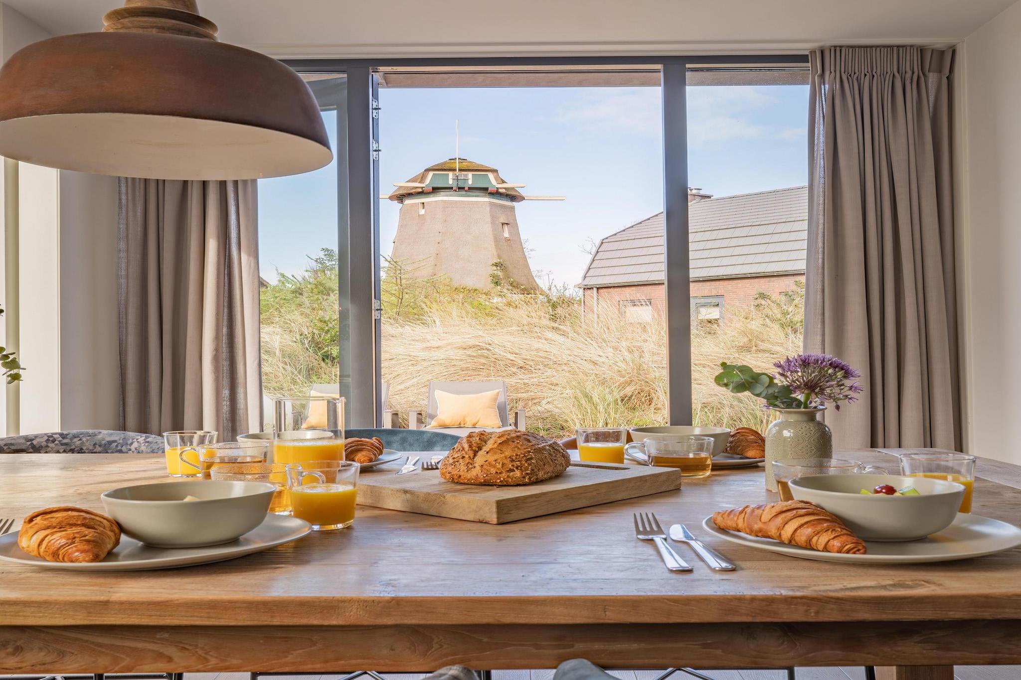 Inmitten eines wunderschön gelegenen, kleinen Freizeitparks in den Dünen von Egmond bietet dieses luxuriöse Ferienhaus eine Oase der Ruhe, nur 2 km vom Meer entfernt. Das Interieur ist auf maximale Entspannung ausgelegt und verfügt über ein helles Wohnzimmer mit gemütlicher Sitzecke und Kamin – ideal, um es sich nach einem langen Spaziergang an der Küste gemütlich zu machen. Große Terrassentüren führen vom Essbereich direkt auf eine private Terrasse mit Garten, von der aus Sie den Blick auf die umliegende Landschaft und eine liebevoll restaurierte Windmühle genießen können. Dank modernem Komfort und lichtdurchfluteter Räume bietet das Haus eine warme und einladende Atmosphäre für Familien oder kleine Gruppen. Die Unterkunft verfügt über drei helle Schlafzimmer im ersten Stock, die jeweils mit komfortablen Betten für einen erholsamen Schlaf ausgestattet sind. Das Highlight des Obergeschosses ist das elegante Badezimmer mit privater Sauna – ein perfektes Wellness-Angebot für alle, die sich während ihres Aufenthalts etwas Besonderes gönnen möchten. Das Erdgeschoss ist funktional gestaltet und bietet eine moderne, voll ausgestattete Küche mit Gaskochfeld, Mikrowelle und Geschirrspüler sowie praktische Annehmlichkeiten wie Waschmaschine, Wäschetrockner und ein separates WC. Das Leben im Freien wird durch eine private Terrasse mit Lounge-Garnitur, Sonnenschirm und Außenkamin bereichert, von der aus Sie den Blick auf die Dünen auch in den kühleren Abendstunden genießen können. Die Umgebung ist ein Paradies für Outdoor-Fans und bietet beste Voraussetzungen zum Wandern, Mountainbiken und Reiten durch Wälder und Dünen. Für Tagesausflüge ist das lebhafte Dorf Egmond aan Zee nur 1,5 km entfernt, und auch die historische Altstadt von Alkmaar sowie das Künstlerdorf Bergen sind bequem zu erreichen.