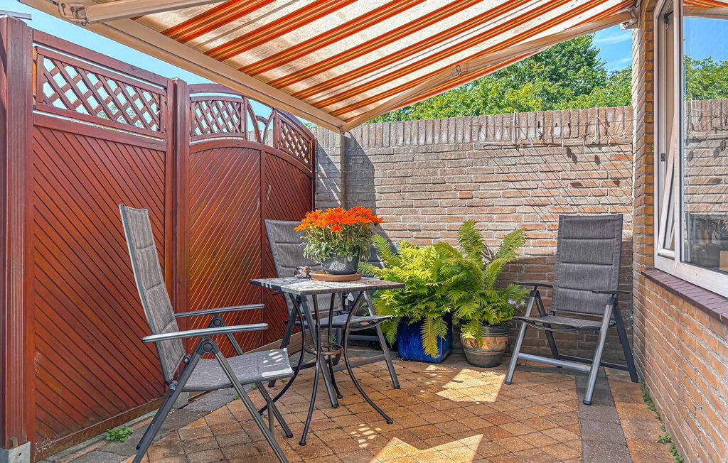 Nutzen Sie den geschützten Außenbereich für erholsame Momente an der frischen Luft. Frühstücken Sie auf der kleinen Terrasse, die mit einem Sonnenschutz ausgestattet ist. Blumendekoration und grüne Pflanzen schaffen eine angenehme Wohlfühlatmosphäre.