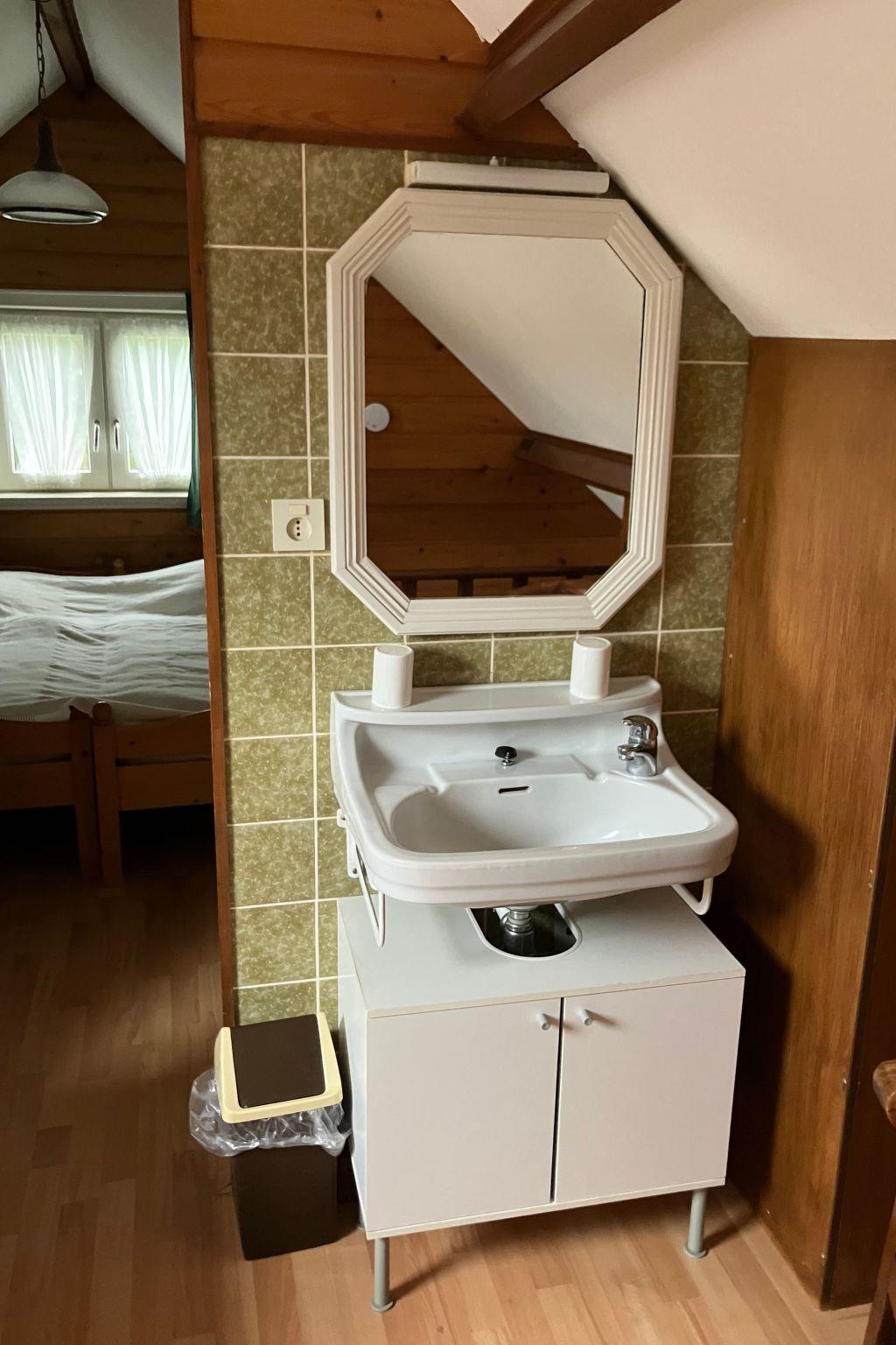 IM DACHGESCHOSS GIBT ES 1 SCHLAFZIMMER MIT 1 EINZELBETT ,1 (BABY) KINDERBETT IST VORHANDEN WO ES AUCH EIN WASCHBECKEN GIBT. IM VORDEREN SCHLAFZIMMER, WO ES AUCH EIN WASCHBECKEN GIBT, STEHEN 2 EINZELBETTEN NEBENEINANDER. DIE BEIDEN SCHLAFZIMMER SIND DURCH EINE VERBINDUNGSTÜR GETRENNT. DIE BETTEN SIND AUSGESTATTET MIT DECKBETTEN,KISSEN. Bettwäsche (Auch zu mieten) und HANDTÜCHER BRAUCHEN SIE SELBER MITBRINGEN. BEI DIE TREPPE GIBT ES EIN TRAPPENGELÄNDER UND EIN SPERRGITTER.