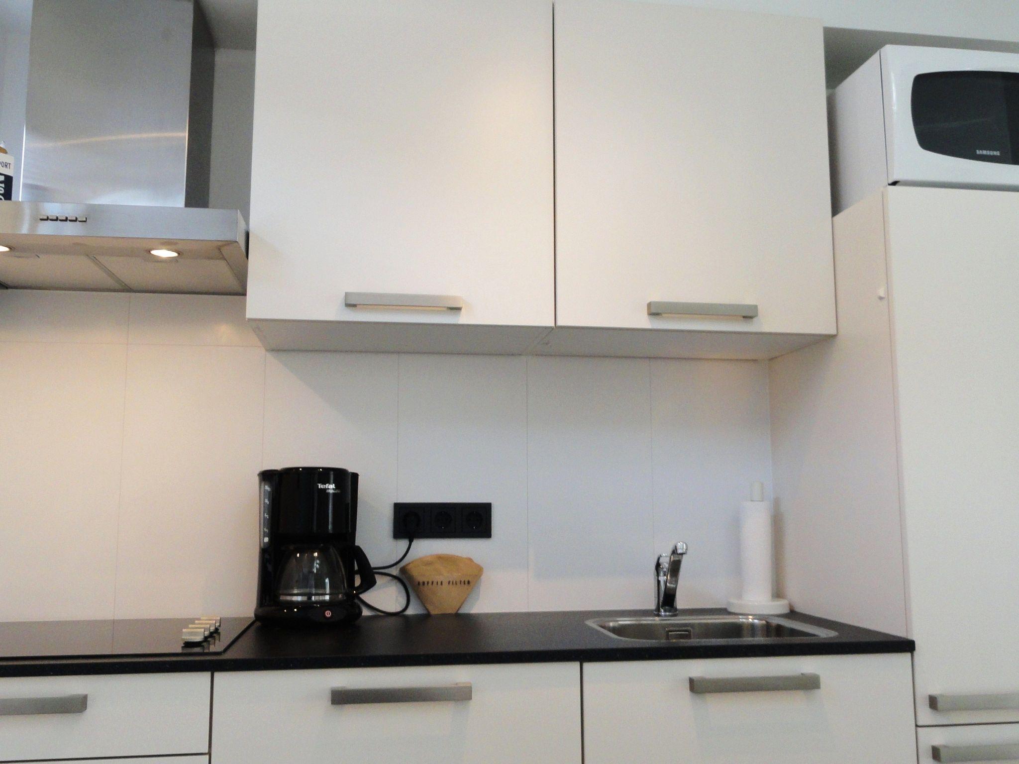 Die Küche ist mit einem Combi-Magnetron, einem Kühlschrank mit Gefrierfach, einer Kaffeemaschine und einer Filterkaffeemaschine, einem Brot/Toaster, einem Mixer und Besteck ausgestattet.