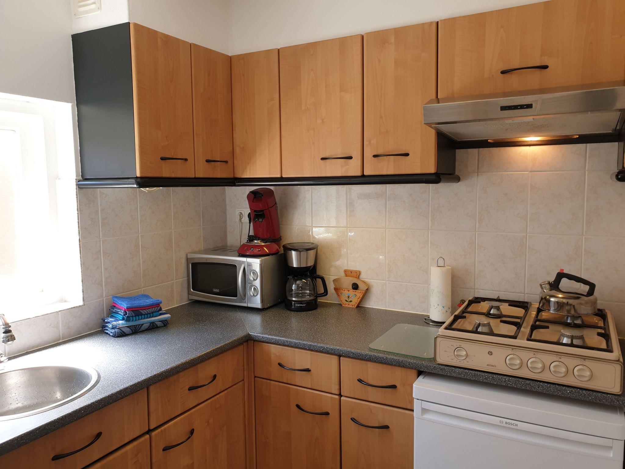 Die Küche ist komplett ausgestattet mit Mikrowelle, Kühlschrank mit Gefrierfach, Pads und Kaffeemaschine, Toaster, Panini-Toaster, Mixer und Saftpresse. Das Wohnzimmer ist mit einem Sofa, Kommode, Esstisch und Stühlen ausgestattet. Das Wohnzimmer hat einen (Kabel-)TV und kostenlosen WIFI/WLAN-Zugang.
