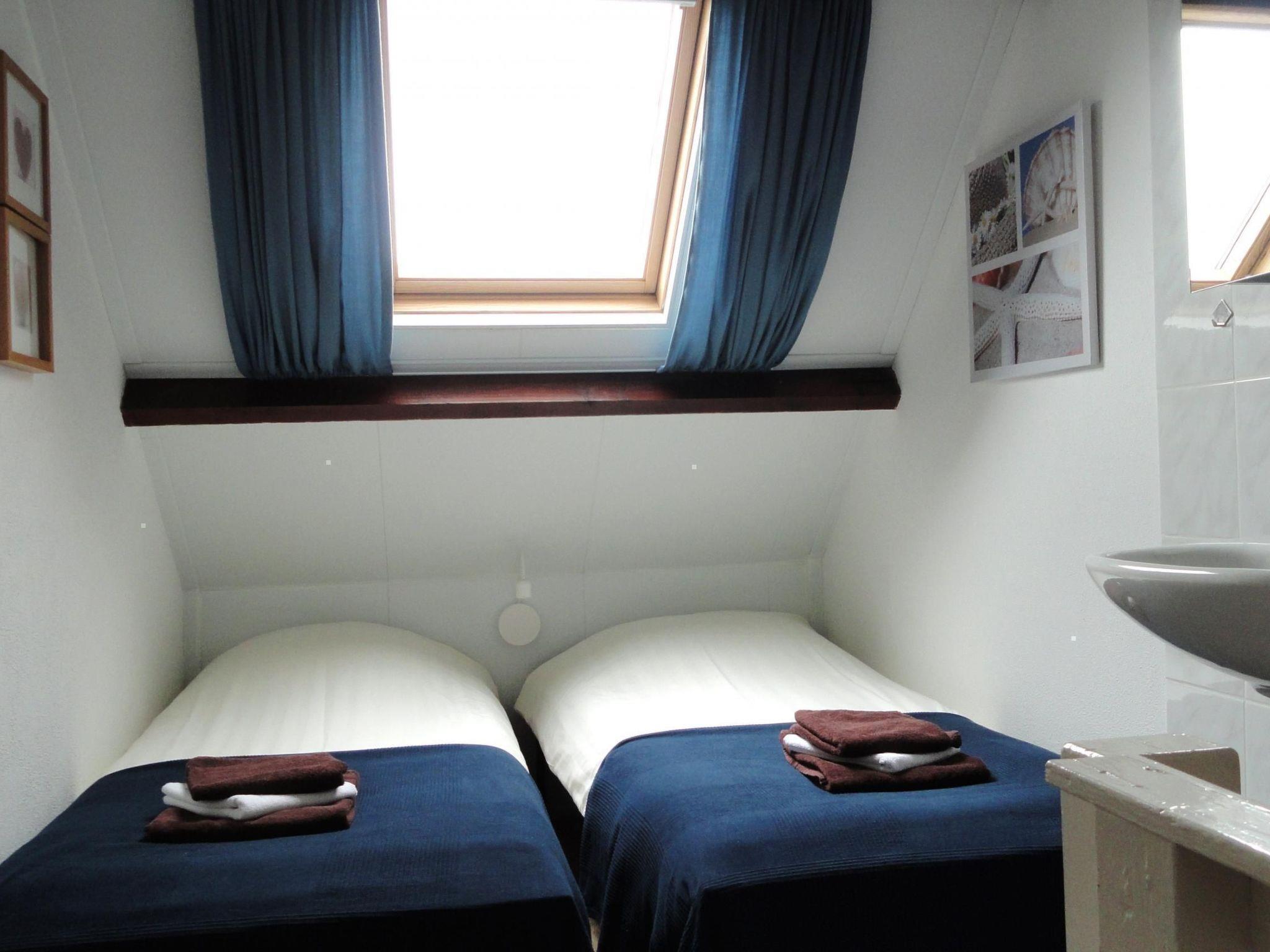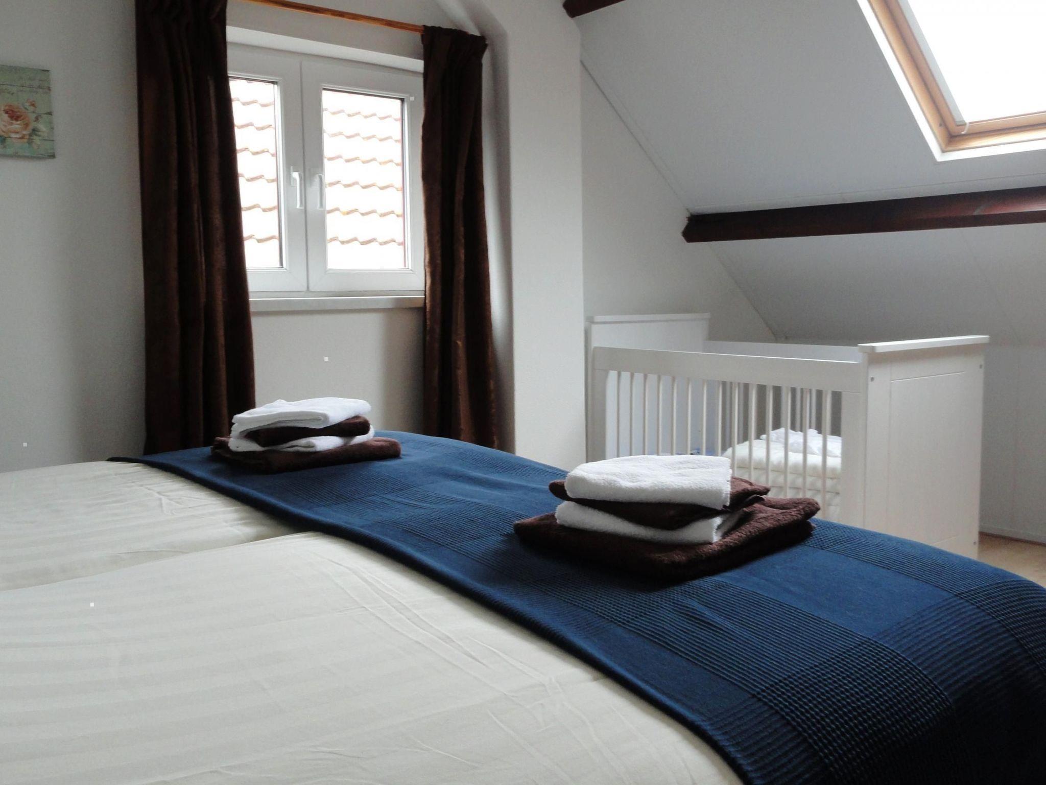 Im Obergeschoss befinden sich 2 Schlafzimmer mit 4 Boxspring-Einzelbetten und einem (Baby-)Kinderbett. Beide Schlafzimmer sind durch eine Verbindungstür getrennt.