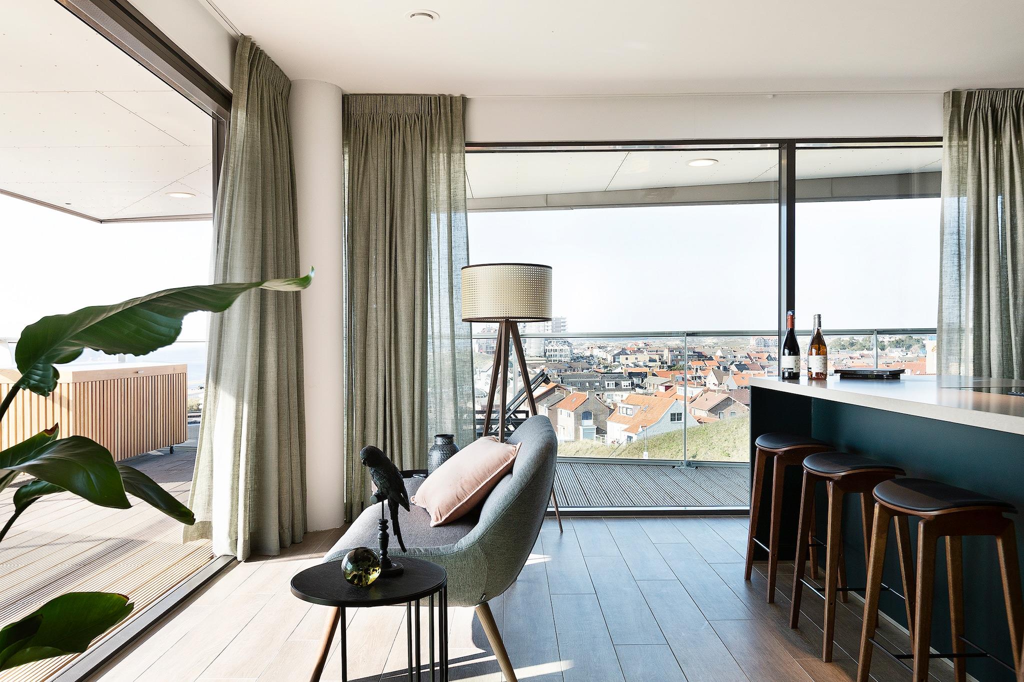 Dieses geräumige Apartment in Egmond aan Zee mit Blick auf die Nordsee bietet direkten Zugang zur Küste. Weitläufige Meerblicke und die zentrale Lage machen den Aufenthalt hier zu einem unvergesslichen Erlebnis. Ideal für größere Familien oder Gruppen, vereint es großzügigen Wohnraum mit einem modernen, hellen Grundriss und liegt nur wenige Schritte vom Strand und dem Ortszentrum entfernt. Das Apartment verfügt über vier Schlafzimmer, jeweils mit zwei Einzelbetten ausgestattet, und bietet bequem Platz für bis zu acht Gäste. Der helle und offene Wohnbereich mit Sitzecke und Fernseher lädt zum gemeinsamen Entspannen ein. Die voll ausgestattete Küche mit Geschirrspüler und Backofen ermöglicht die einfache Zubereitung von Mahlzeiten, während der Essbereich ausreichend Platz für gemeinsame Mahlzeiten bietet. Drei Badezimmer stehen zur Verfügung: zwei en suite (eines davon mit Badewanne im Hauptschlafzimmer) und ein Gemeinschaftsbad mit Dusche und WC. WLAN und eine Waschmaschine sorgen für zusätzlichen Komfort im Alltag. Große Türen führen auf eine Terrasse oder einen Balkon mit Meerblick, erweitern den Wohnraum nach draußen und bieten den ganzen Tag über einen Ort, um die frische Luft zu genießen. Das Apartment bietet moderne Ausstattung, einen praktischen Grundriss und zwei Parkplätze – ideal für Gruppenreisen. In fußläufiger Entfernung zu Geschäften, Cafés und Küstenwanderwegen gelegen, bietet die Unterkunft sowohl zum Strand als auch zum Zentrum von Egmond aan Zee bequemen Zugang. Ob Sie Ihre Zeit am Meer verbringen oder die Umgebung erkunden möchten, dieses Apartment ist der perfekte Ausgangspunkt für einen Gruppenurlaub.