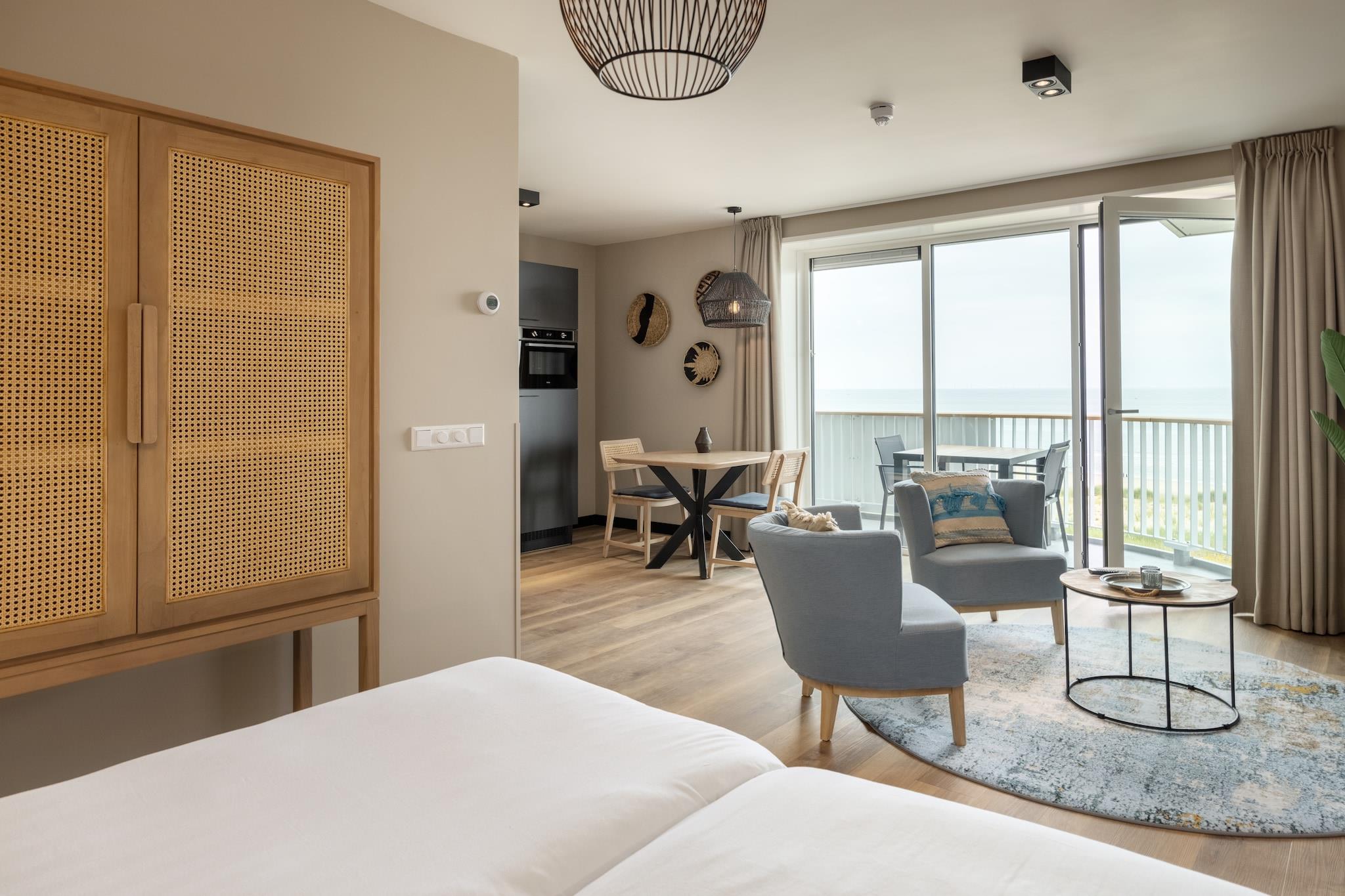 Erleben Sie einen völlig neu gestalteten Aufenthalt im De Graaf van Egmont, wunderschön renoviert und 2021 wiedereröffnet. Dieses stilvolle Erdgeschoss-Apartment für zwei Personen bietet modernen Komfort mit einem geräumigen Wohnzimmer, Smart-TV und einer eleganten offenen Küche mit Kühl-Gefrierkombination, Geschirrspüler und Mikrowelle. Das Schlafzimmer verfügt über bequeme Boxspringbetten in Doppelbettkonfiguration, während die ebenerdige Dusche und das moderne Badezimmer Ihrem Aufenthalt ein Spa-Feeling verleihen. Ob romantisches Wochenende oder Alleinurlaub – dieser ruhige Ort ist der perfekte Ausgangspunkt an der Küste. Direkt am Boulevard von Egmond aan Zee und gleich hinter den Dünen gelegen, sind Sie nur wenige Minuten vom Strand entfernt. Spazieren Sie am Ufer entlang, erkunden Sie die naturreichen Dünen oder genießen Sie den Sonnenuntergang von Ihrem privaten Balkon mit Gartenmöbeln. Die Residenz verfügt über einen Aufzug für bequemen Zugang zu allen Etagen und einen eigenen Parkplatz – ein ebenso praktisches wie schönes Erlebnis. Bitte beachten Sie: Haustiere sind nicht erlaubt, um eine ruhige, allergikerfreundliche Umgebung zu gewährleisten. Lust auf frische Meeresfrüchte oder einen Brunch am Strand? Spazieren Sie zu beliebten Restaurants wie Zilte Zoen, Van Speijk oder De Zilvermeeuw – alle mit Meerblick und regional inspirierten Menüs. Von gemütlichen Strandcafés bis hin zu charmanten Bistros im Dorfzentrum – hier kommen Ihre Geschmacksknospen auf ihre Kosten. Dieses einladende Apartment bietet einen ruhigen und stilvollen Rückzugsort, nur wenige Schritte von den besten Erlebnissen Egmonds entfernt.