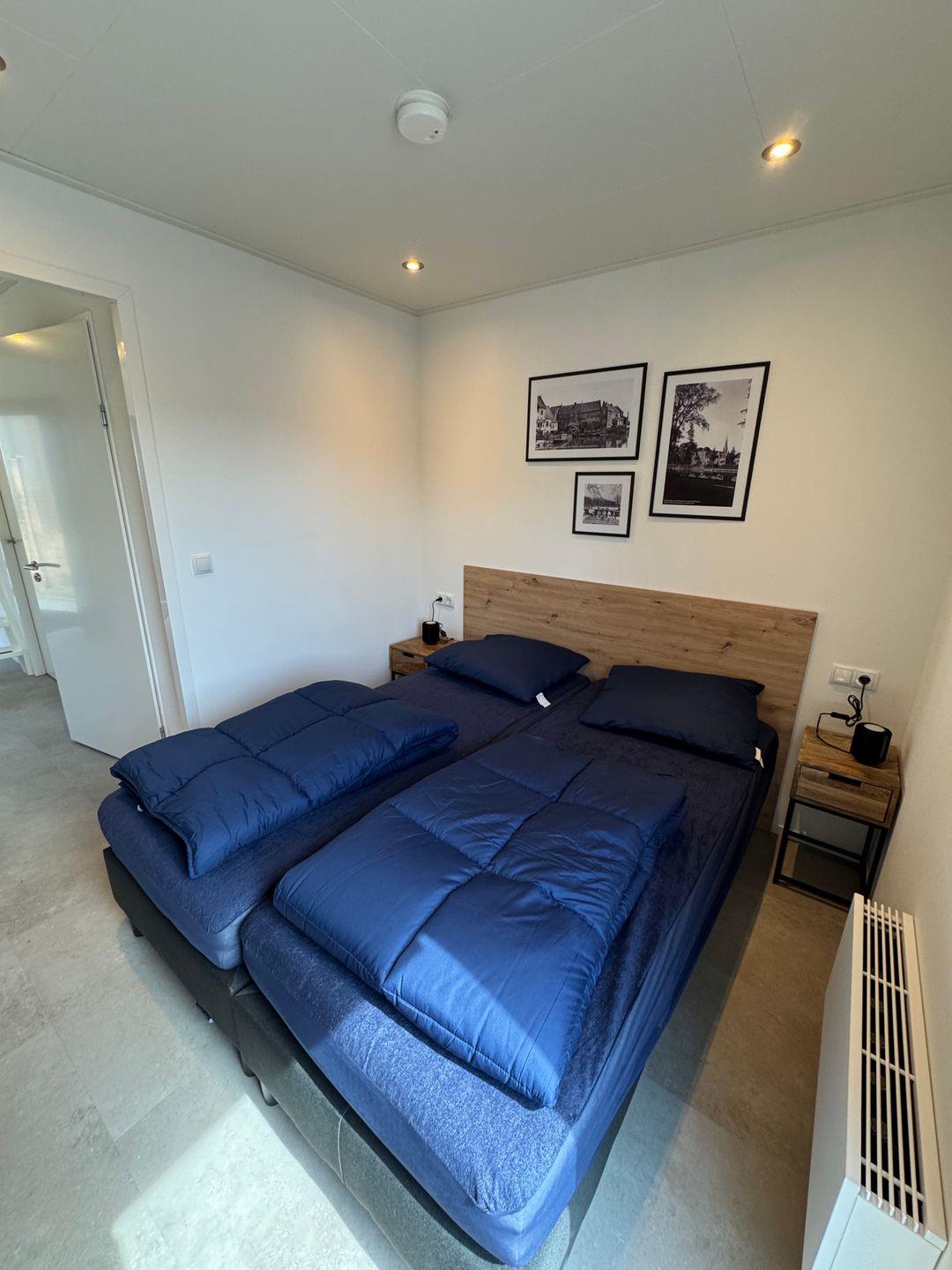 In erster Reihe am Wasser liegt unser neues, modern eingerichtetes Chalet Deck Acht mit eingezäuntem Terrassenbereich, eigenem Parkplatz mit Wallbox und Sonnen-Terrasse. Unser top-modernes Chalet bietet 4 Schlafzimmer, einen offenen Wohn-/Essbereich mit Blick aufs Meer und eine moderne Küche - ideal für Meerliebhaber sowie eine große Familie. Euer Vierbeiner ist bei uns auf Anfrage ebenfalls herzlich willkommen.