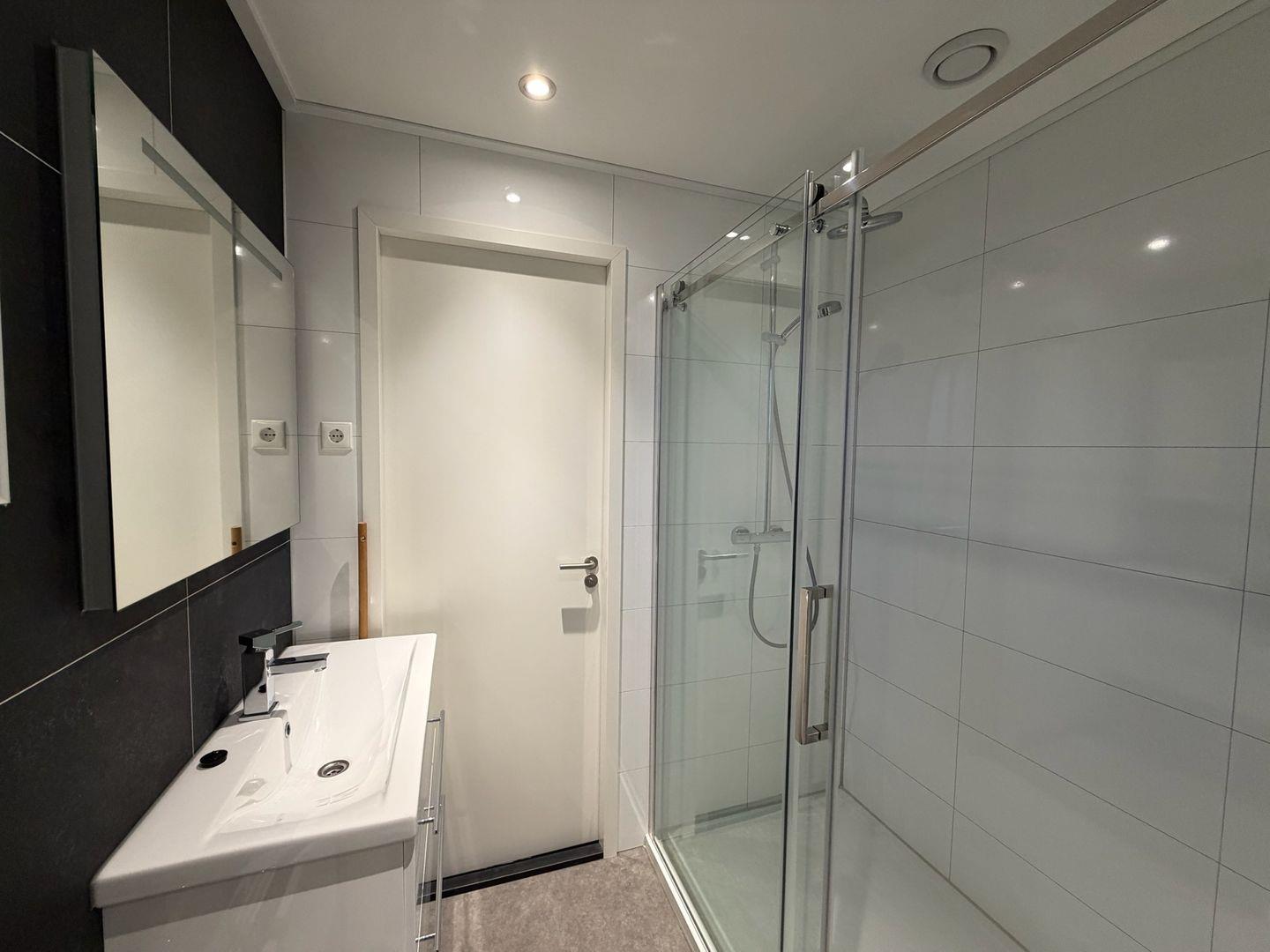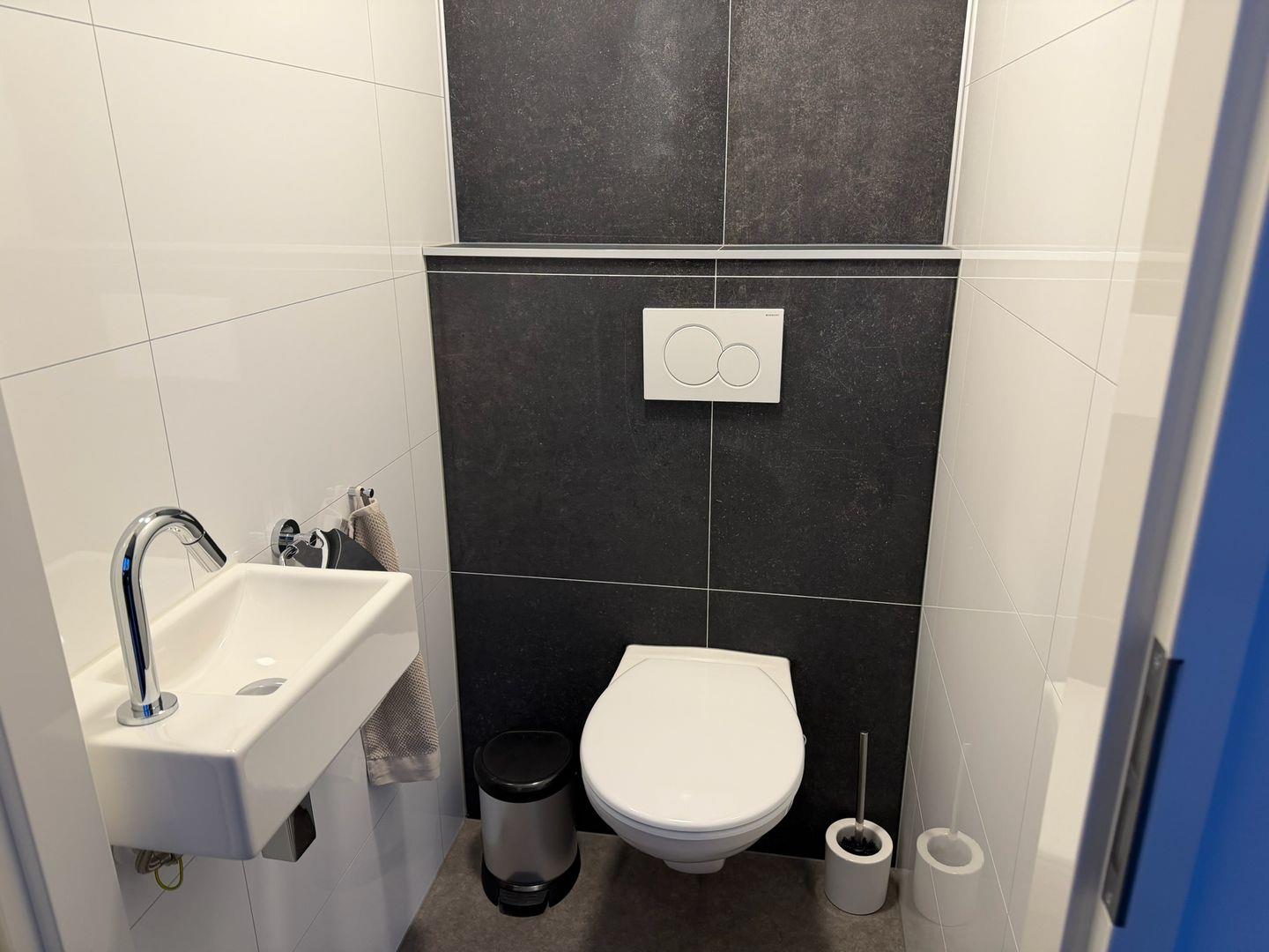 Das Badezimmer ist mit einer bodengleichen Dusche, Waschbecken, WC, Spiegel und Fenster ausgestattet. Warmes Wasser ist selbstverständlich vorhanden. Bettwäsche gehört zur Ausstattung. Waschmaschine und Trockner können gemeinschaftlich genutzt werden; zusätzlich stehen Wäscheständer und Staubsauger bereit.