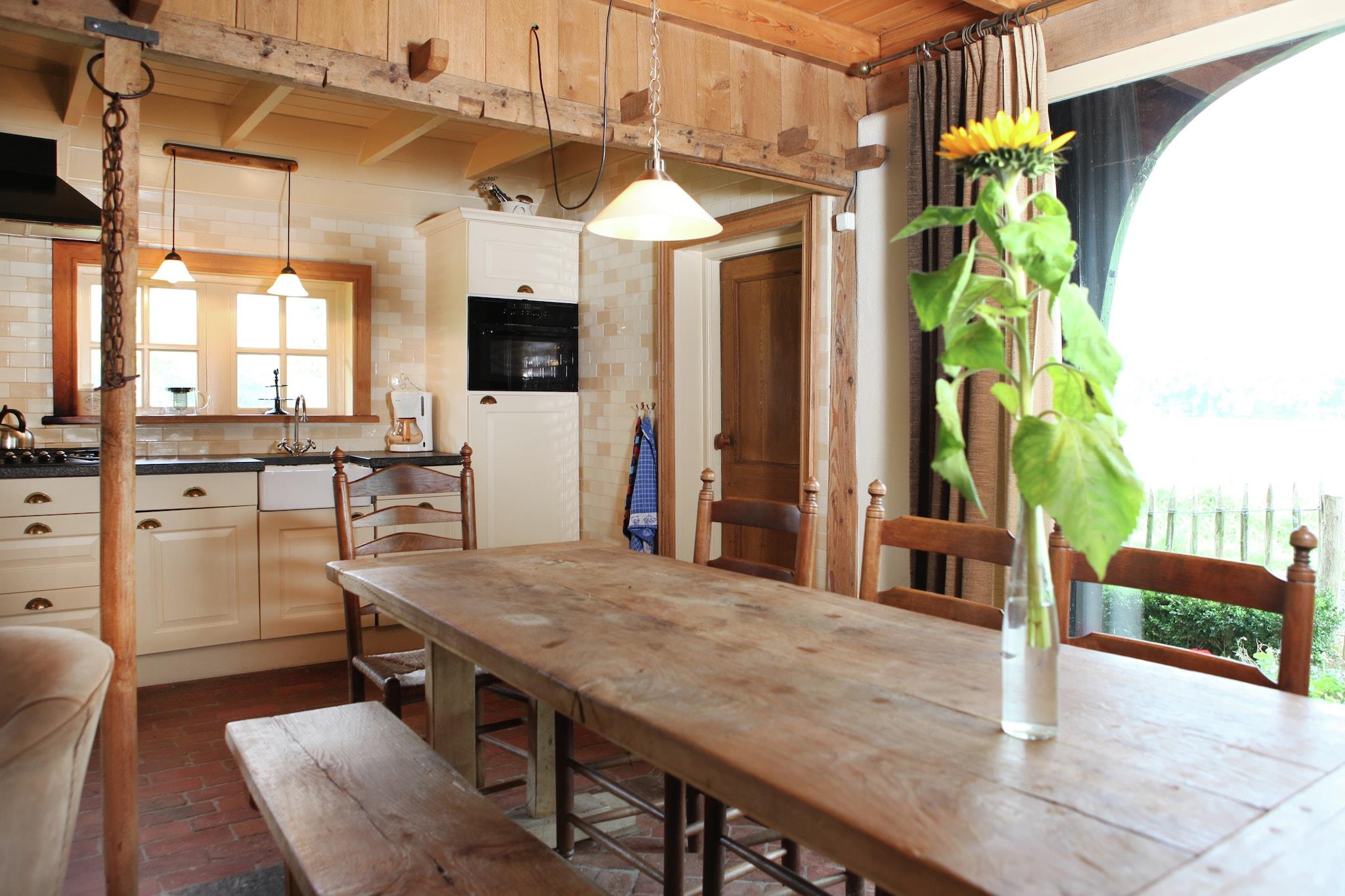 Parterre: (Wohnzimmer(Bettnische (1 Pers.), TV, Esstisch, Kaminofen, Radio, Heizung(Fußbodenheizung)), offene Küche(Kochplatte, Dunstabzugshaube, Kaffeemaschine, Kombi-Mikrowelle, Spülmaschine), Badezimmer(Badewanne, Dusche, Waschbecken, Toilette), Abstellraum) In der 1. Etage: (Schlafzimmer(Doppelbett), Schlafzimmer(Einzelbett, Doppelbett)) Trockner(Gemeinschaftliche Nutzung mit anderen Gästen), Waschmaschine(Gemeinschaftliche Nutzung mit anderen Gästen), Heizung(Zentral), Terrasse, Gartenmöbel, Parkplatz, Kinderbett(auf Anfrage)