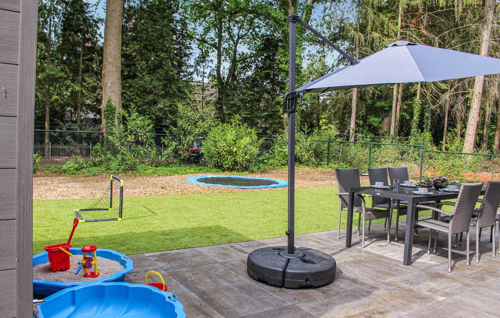 Vom Wohnbereich gelangen Sie in den Garten und auf die offene Terrasse, die zum Lesen oder zu gemeinsame Mahlzeiten einlädt. Die Kinder werden das Trampolin im Garten lieben.
