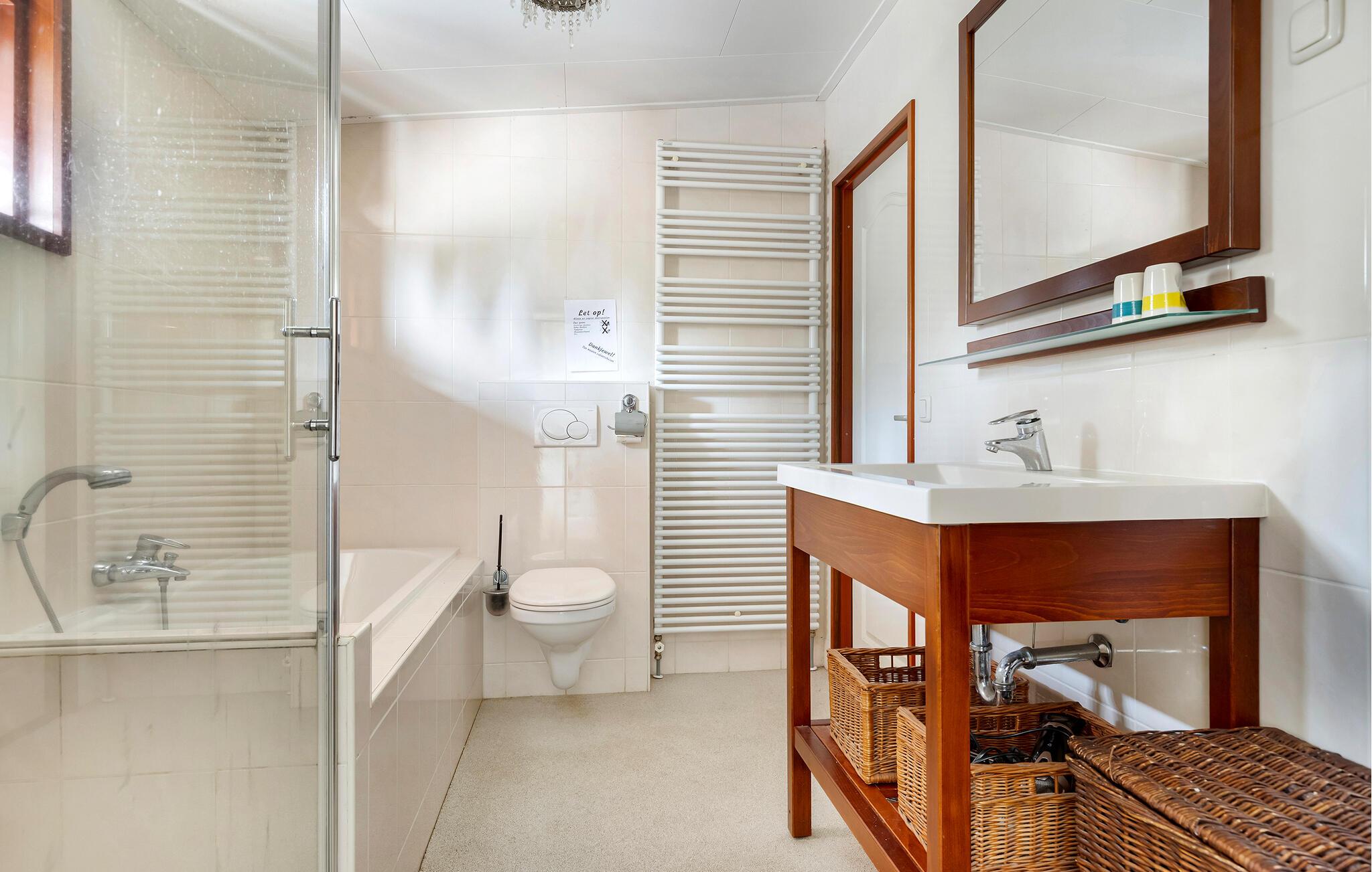 - WC mit warmem und kaltem Wasser, Handbrause und Badewanne
