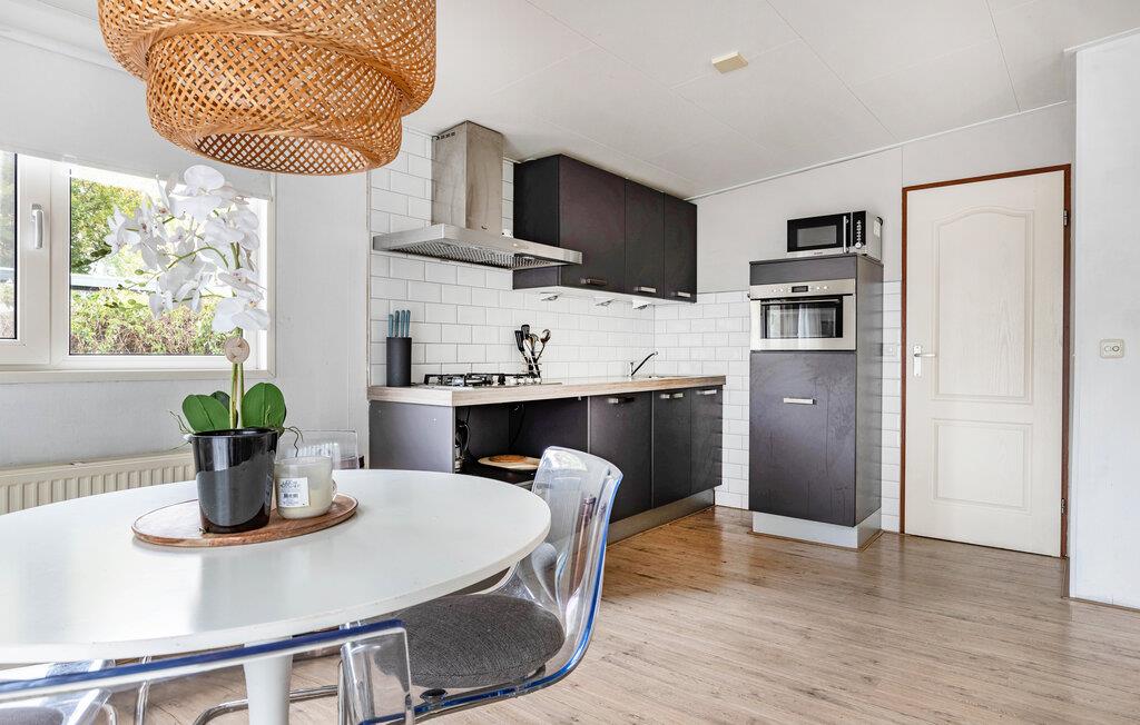 Genießen Sie eine erholsame Auszeit in dieser ansprechend gestalteten Unterkunft in ruhiger, grüner Umgebung. Betreten Sie den freundlichen Wohnbereich, der durch große Fenster viel Tageslicht erhält und eine angenehme Offenheit ausstrahlt. Die harmonische Farbgestaltung und die sorgfältig ausgewählten Möbel schaffen eine behagliche Atmosphäre. Machen Sie es sich bequem und genießen Sie den Ausblick ins Grüne. Nehmen Sie Ihre Mahlzeiten am Esstisch in der Nähe der Küche ein, die zum gemeinsamen Zubereiten von Speisen einlädt.