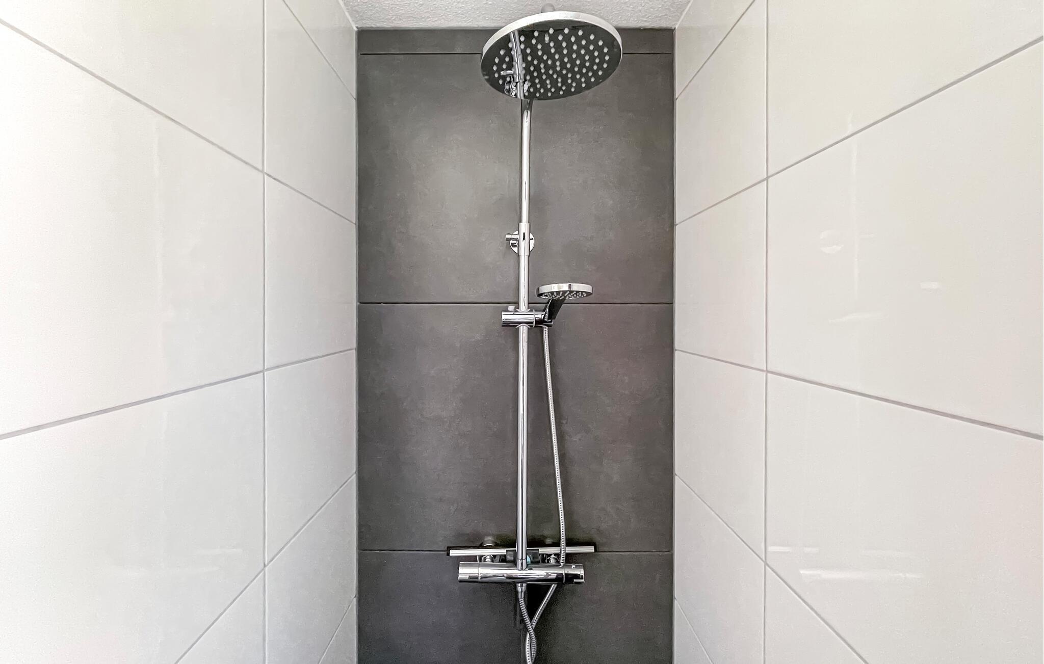 - WC mit warmem und kaltem Wasser, Handbrause, Badewanne und Dusche