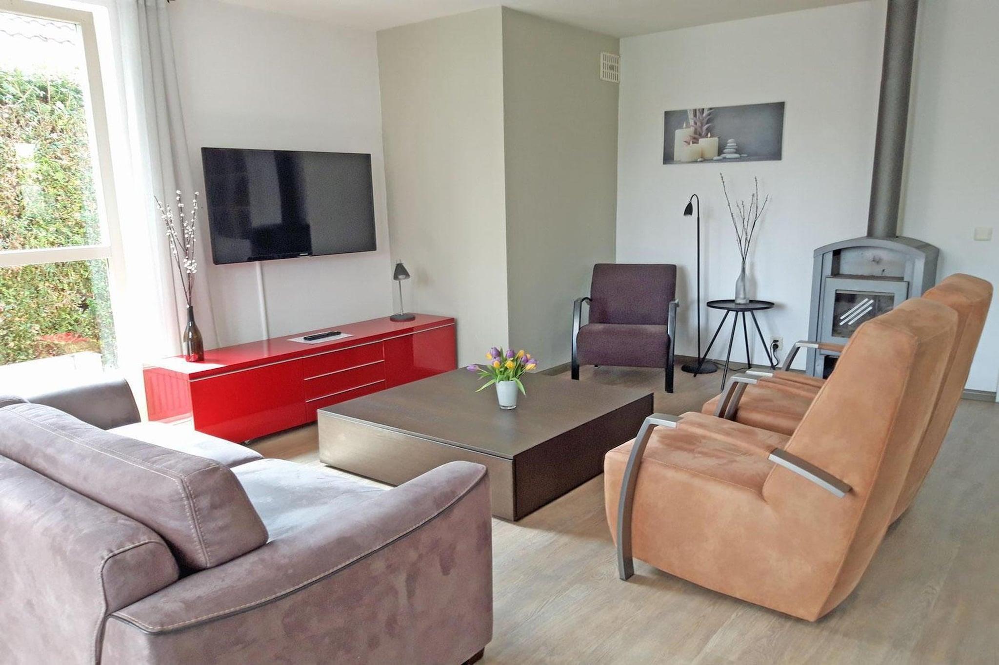 Parterre: (offene Küche(Kochplatte, Wasserkocher, Kaffeemaschine(pads), Backofen, Mikrowelle, Spülmaschine, Kühl-/Gefrierkombination, , ), Wohn/Esszimmer(TV(Flatscreen), Esstisch, Sitzecke), Schlafzimmer(Doppelbett), Schlafzimmer(Einzelbett, Einzelbett), Schlafzimmer(Einzelbett, Einzelbett), Badezimmer(Dusche, Waschbecken, Toilette), Toilette(Waschbecken, Toilette), Abstellraum(Trockner, Waschmaschine)) Internet, Gartenmöbel, Dusche, Heizung, Terrasse, Garten, Parkplatz, Trockenschrank