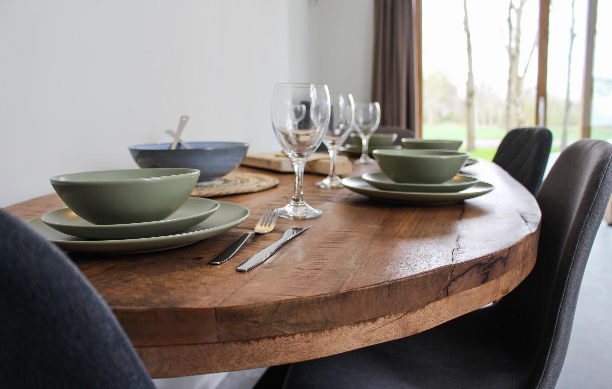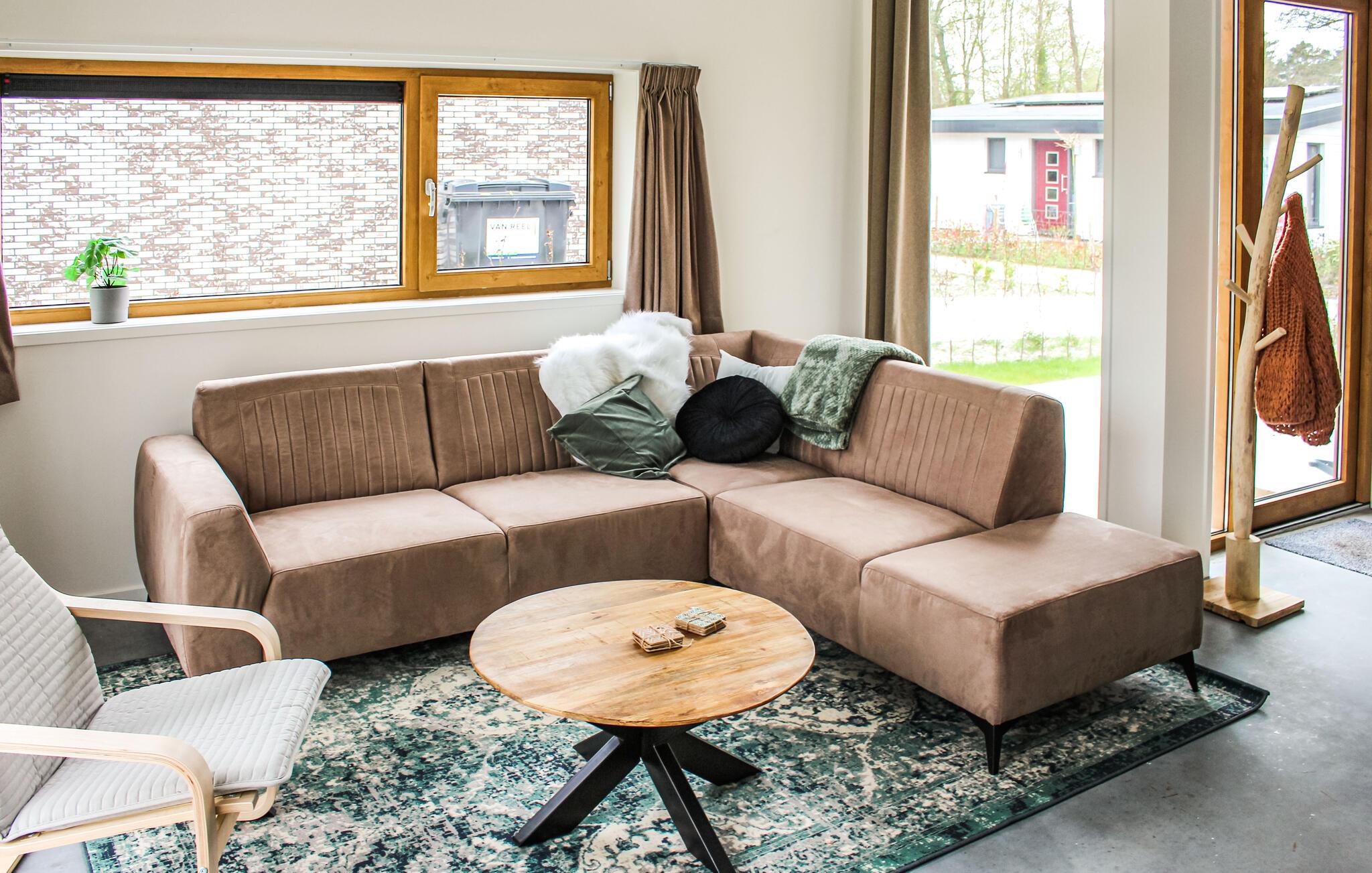 In diesem Ferienhaus, das Sie in idyllischer Lage empfängt, fühlen sich Naturliebhaber vom ersten Tag an wohl. Die hellen Räume bezaubern mit einer modernen Einrichtung und bodentiefen Panoramafenstern, durch die Sie im Wohnbereich einen herrlichen Blick auf die Landschaft genießen. Machen Sie es sich hier mit Ihren Lieben in stilvollem Ambiente gemütlich. Der Wohnbereich wird schnell zum Zentrum der gemeinsamen Aktivitäten, freuen Sie sich auf die Mahlzeiten am langen Esstisch und vergnügliche Abende in geselliger Runde.