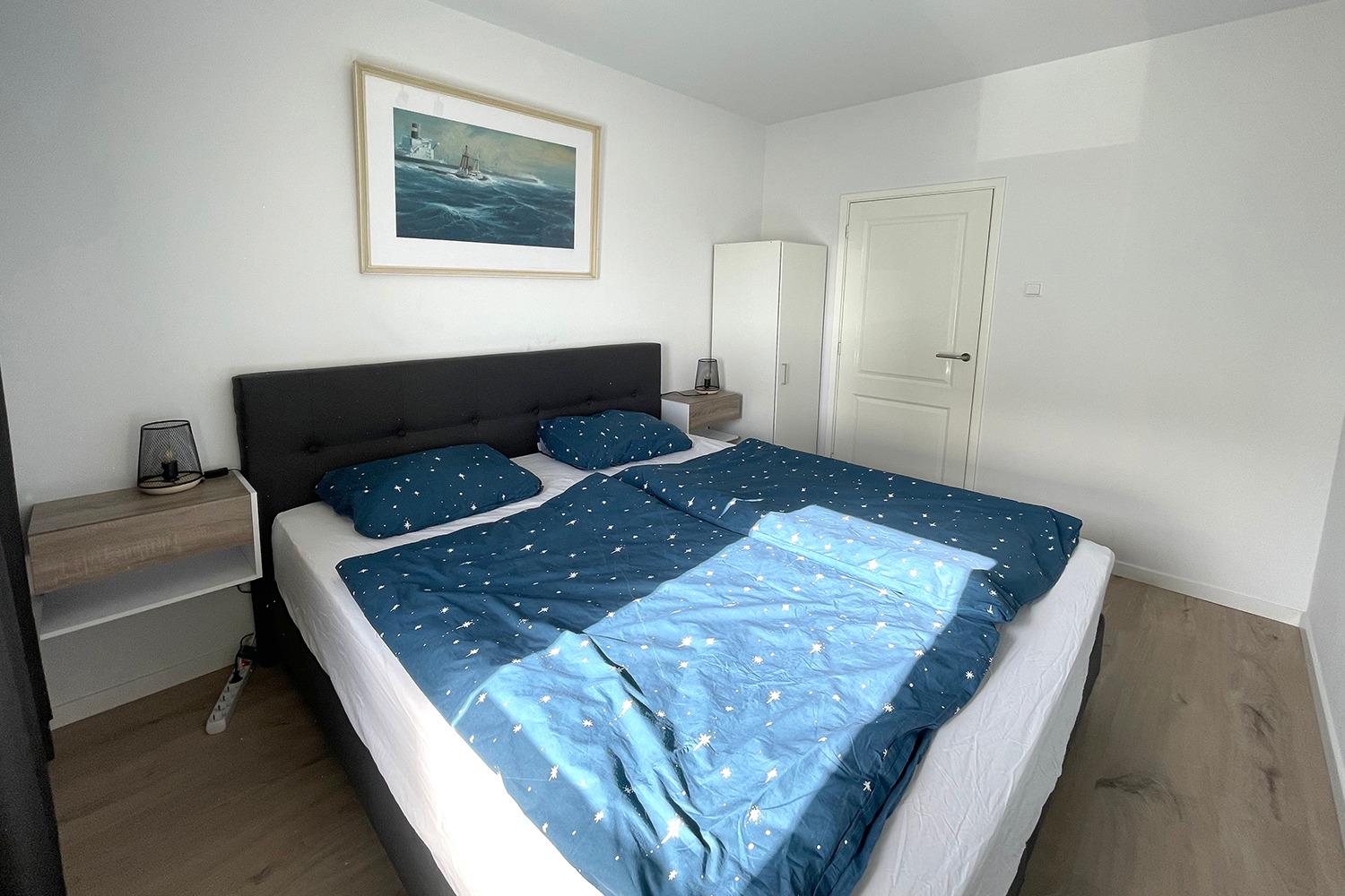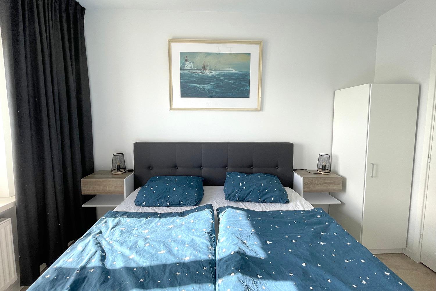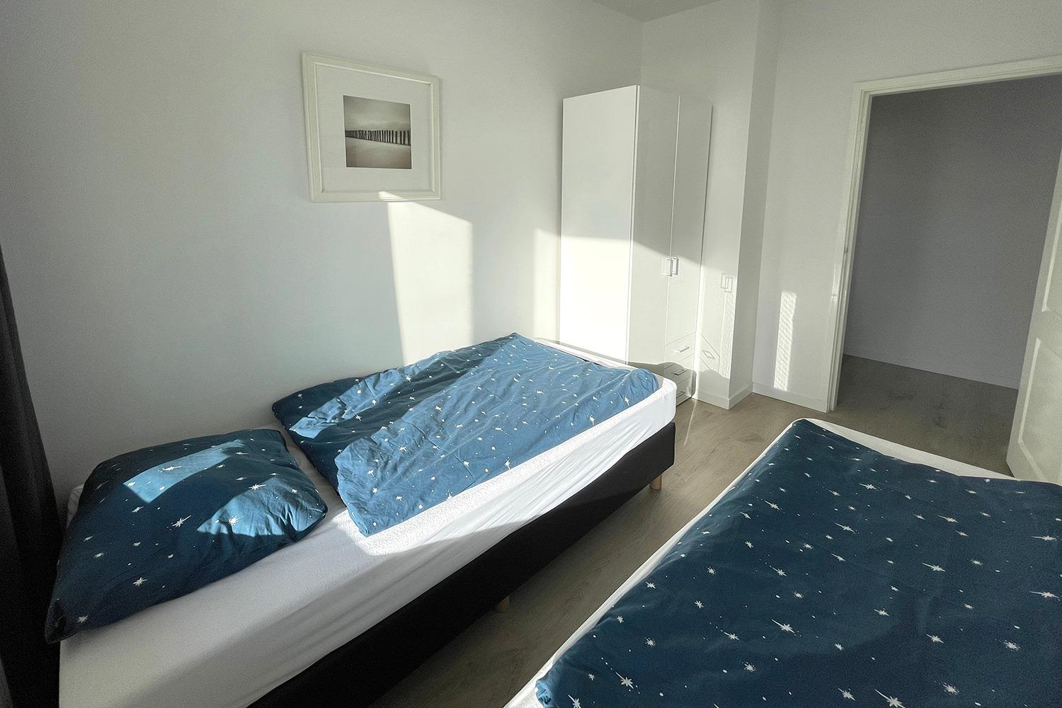Das Badezimmer hat eine Regendusche mit 2 Handbrausen. Zwei Schlafzimmer ergänzen diese Wohnung mit bequemen Boxspringbetten, das erste Schlafzimmer hat ein Doppelbett und das zweite Schlafzimmer hat zwei Einzelbetten.