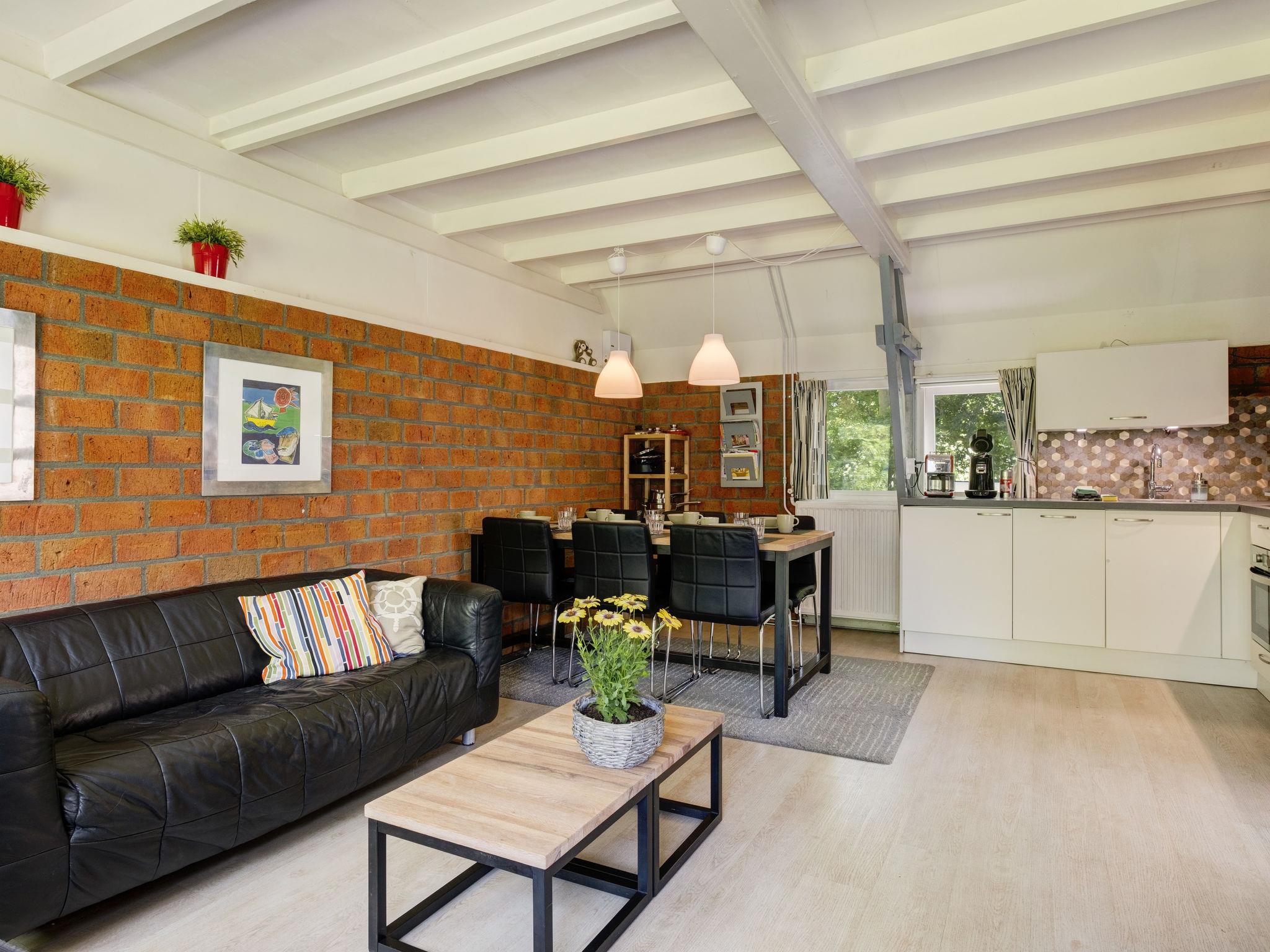 "De Schans", 4-Zimmer-Haus 80 m2 auf 2 Stockwerken. Hell, gemütlich eingerichtet: Wohn-/Esszimmer mit Esstisch, TV und Stereoanlage. Ausgang zur Terrasse. 1 kleines Zimmer mit 1 Bett und 1 Ausziehbett. Offene Küche (Geschirrspüler, 4 Flammen, Wasserkocher, elektrische Kaffeemaschine, Kombinationsmikrowelle). Dusche/WC. Heizung. Dachgeschoss: 1 abgeschrägtes Zimmer mit 1 franz. Bett (140 cm). 1 abgeschrägtes Zimmer mit 2 Betten. Terrasse teilweise überdacht. Terrassenmöbel, Abstellkammer. Zur Verfügung: Waschmaschine, Bügeleisen, Kinderhochstuhl, Babybett. Internet (WLAN, gratis). Bitte beachten: Nichtraucher-Unterkunft. Maximal 1 Haustier/Hund erlaubt. Rauchmelder.