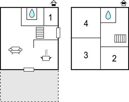 Badezimmer (nr. 2) - WC. Warmes und kaltes Wasser. Dusche