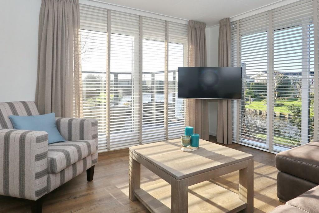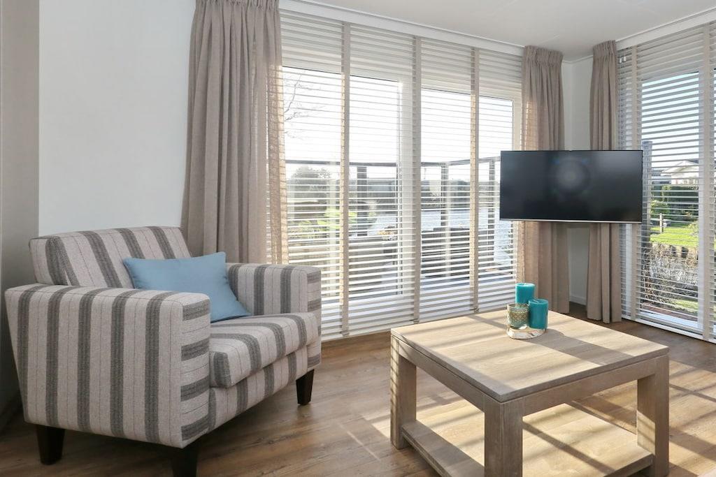 Lieben Sie den Strand, das Meer, die Dünen und die Gemütlichkeit, genießen Sie dann Ihren schönen Urlaub in unseren Zwei-Personen Chalets in denen Haustiere erlaubt sind. Bis zu 2 Urlauber finden hier auf 36m² Platz, mit u.a. WLAN-Ausstattung und Terrasse am Wasser. Die Ferienwohnung besteht aus einem gemütlichen Wohnzimmer mit großzügiger Sitzecke, High-Definition-TV, WLAN, offene Küche mit Backofen und Geschirrspüler. Es gibt ein Schlafzimmer mit Doppelbett und Fernseher. Ein Bad mit WC, Dusche und Waschbecken.
