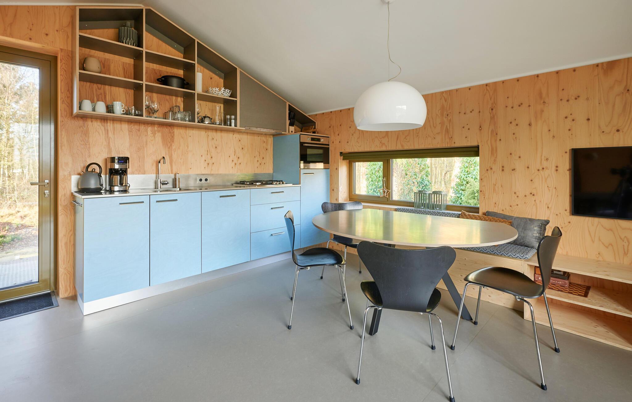 Willkommen in diesem einladenden und modernen Haus auf drei Etagen. Das architektonisch verspielte Design bietet ein einzigartiges Raumerlebnis und wurde sorgfältig in einem modernen und minimalistischen Stil dekoriert. Hier können Sie der Hektik des Alltags entfliehen und in wunderschöner Natur vollkommen entspannen. Die farbenfrohe, voll ausgestattete Küche lädt zum Zubereiten köstlicher Mahlzeiten ein. Treffen Sie sich am besonderen Esstisch, entspannen Sie auf dem Sofa bei einem guten Film oder genießen Sie abends die Wärme des Holzofens. Vom Wohnzimmer aus haben Sie einen schönen Blick auf den Wald und das Naturschutzgebiet Terhorsterzand mit seinen Heiden, Wäldern und Mooren.