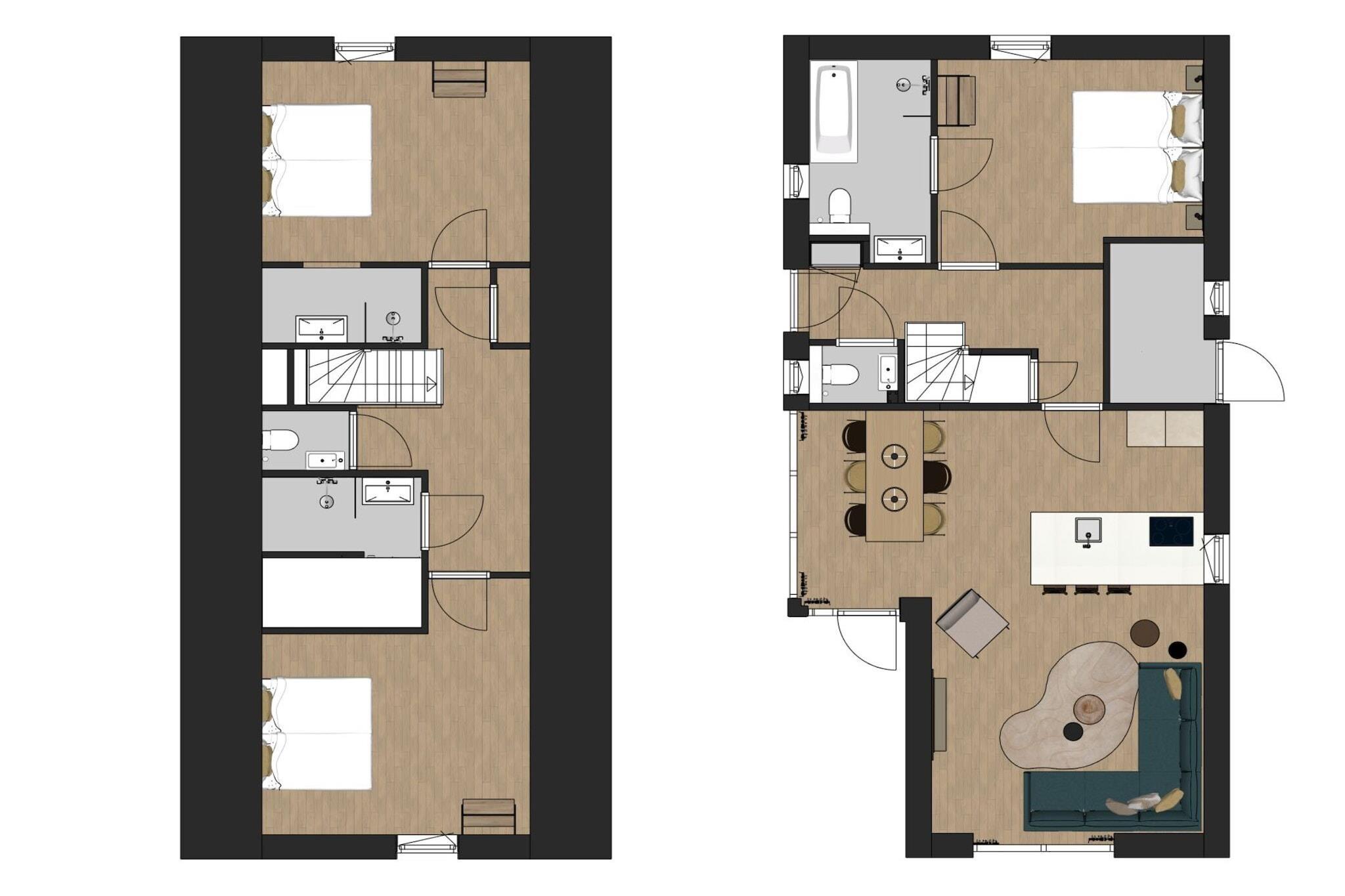 Moderner Komfort in ruhiger Lage Entdecken Sie das luxuriöse, freistehende Ferienhaus im Dormio Resort De Hondsrug. Es bietet die perfekte Balance aus Komfort und Ruhe für bis zu sechs Gäste. Auf einer großzügigen Fläche von ca. 121 m² verfügt das Haus über 3 Schlafzimmer und 3 Badezimmer. Das stilvolle Wohnzimmer umfasst eine gemütliche Sitzecke mit Smart-TV, einen Essbereich für gemeinsame Mahlzeiten und eine offene Küche mit Kochinsel, Kombi-Backofen, Geschirrspüler, Kühl-Gefrierkombination, Nespresso-Maschine und Filterkaffeemaschine. Essen am Bach mit Außenküche und Pizzaofen Betreten Sie die teilweise überdachte Terrasse mit Blick auf den ruhigen Bach – ein idealer Ort zum Essen im Freien oder zum Entspannen mit Aussicht. Die mobile Außenküche ist mit einem Holzkohlegrill und einem Außenkamin ausgestattet, der gleichzeitig als Pizzaofen dient – perfekt für kulinarische Abende mit Familie oder Freunden in malerischer Natur. Komfort, Privatsphäre & Wellness im Haus Im Erdgeschoss befindet sich ein Schlafzimmer mit zwei Einzelbetten und einem luxuriösen En-Suite-Badezimmer mit Badewanne, ebenerdiger Dusche, Waschbecken und WC. Im Obergeschoss bieten zwei weitere Zweibettzimmer zusätzliche Privatsphäre. Eines davon verfügt über ein En-Suite-Badezimmer mit ebenerdiger Dusche, während das dritte Badezimmer mit einer wohltuenden Dampfkabine ausgestattet ist. Zwei separate Toiletten und Annehmlichkeiten wie kostenloses WLAN, Fußbodenheizung, zwei private Parkplätze und ein Abstellraum mit E-Bike-Ladestation runden diesen eleganten und erholsamen Rückzugsort ab.