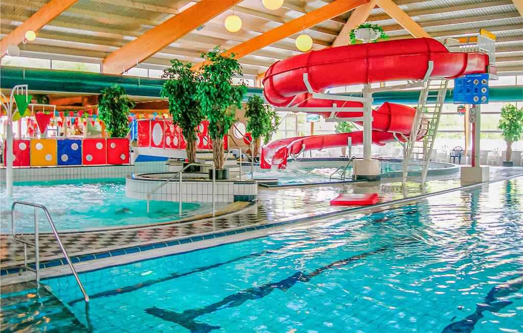 Verbringen Sie einen wundervollen Urlaub in diesem komfortablen Ferienhaus am See mit Zugang zu einem Erlebnisschwimmbad.