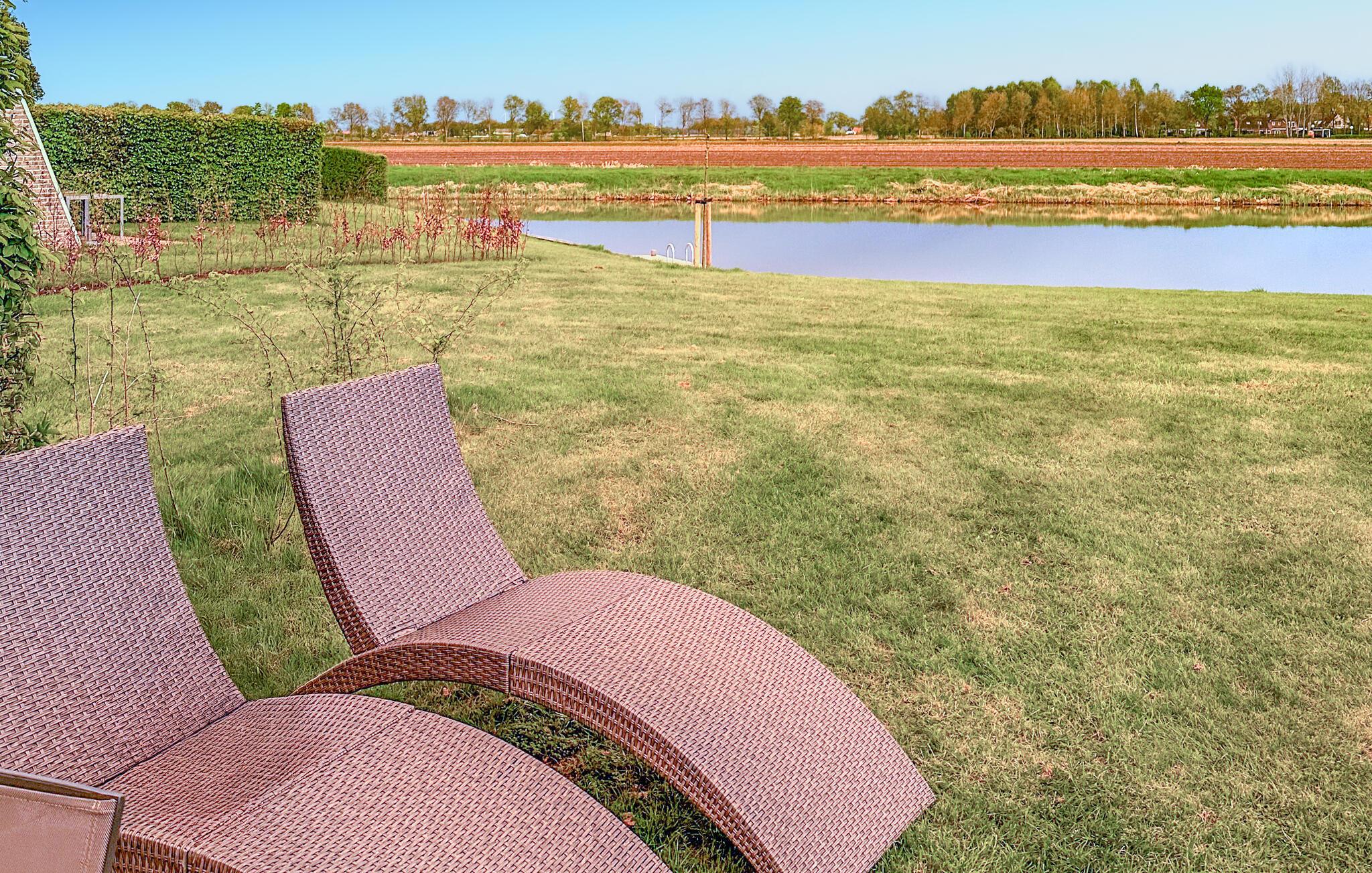 Genießen Sie im Garten des Ferienhauses in vollen Zügen die Sonne und die pure Urlaubsentspannung auf dem Seegrundstück. Nutzen Sie den Zugang zum Schwimmbad mit Wasserrutsche und einem separaten Kinderbecken. Es gibt auch einen Minigolfplatz, Tennisplätze und verschiedene Spielplätze ganz in der Nähe. Lassen Sie den Tag mit Getränken im Freien ausklingen.