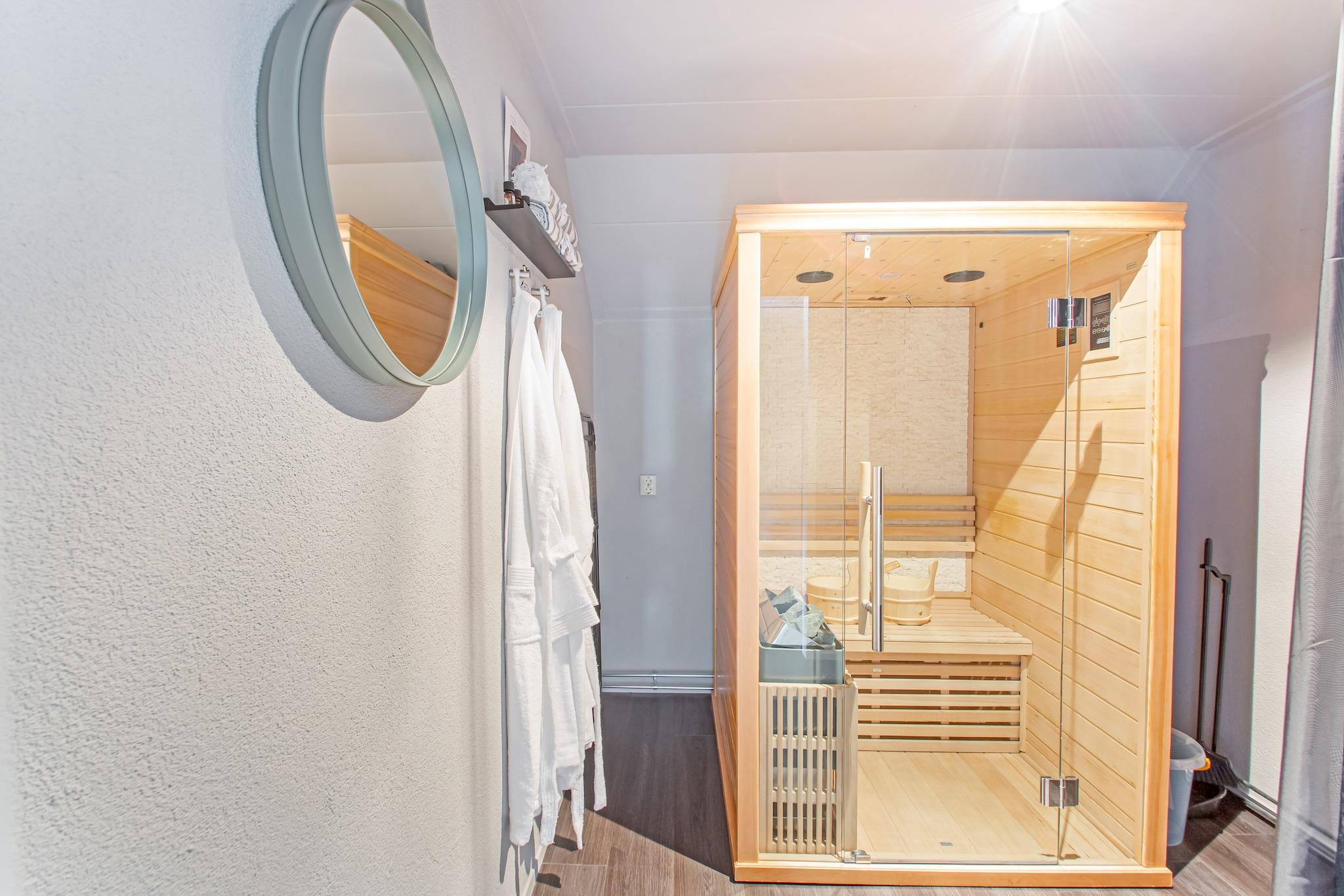 Parterre: (Eingangshalle, offene Küche(Kochendwasserhahn, Kochherd, Kaffeemaschine, Backofen, Kühl-/Gefrierkombination), Wohn/Esszimmer(TV, Esstisch, Sitzecke), Schlafzimmer mit Badezimmer(Doppelbett, Dusche), Toilette, Sauna(Sauna)) streamingservice, Mikrowelle, Spülmaschine, Waschmaschine, Heizung, Terrasse, Garten, Fahrradabstellraum, Gartenmöbel, Liegen, Grill, Parkplatz, Liegestühle, Sonnenschirm, Gesellschaftsspiele, Gartenhaus