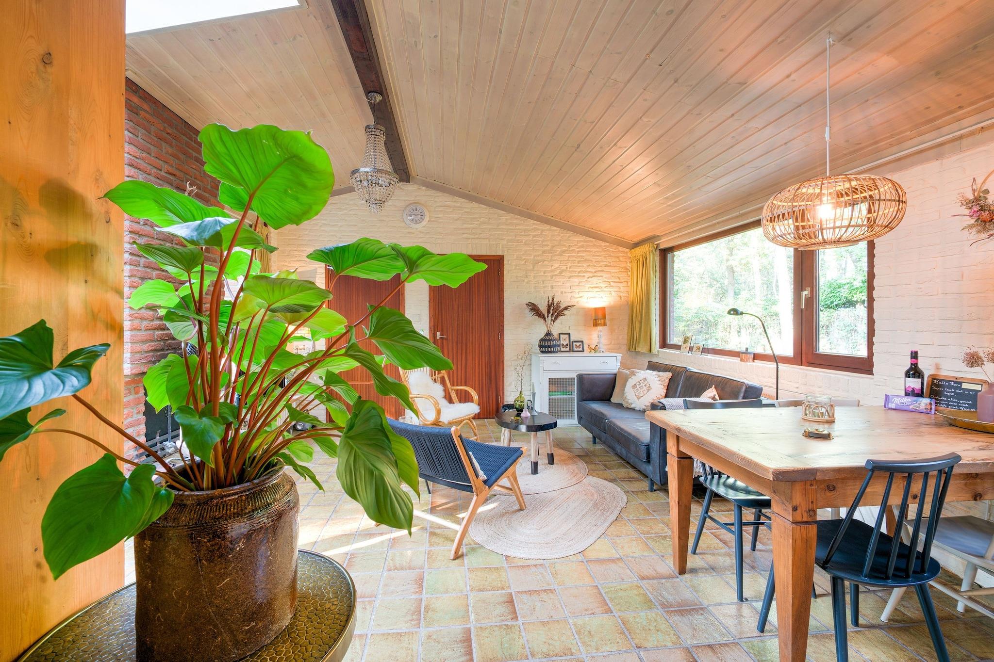 Dieser freistehende Bungalow steht am Rande des Waldgebietes Drents-Friese Wold auf einem großen Waldareal von circa 2400 m2. Lassen Sie sich von diesem ländlichen und gemütlichen Ferienhaus mit interessanter Antikmöbeleinrichtung verzaubern. Das Wohnzimmer hat eine lauschige Sitzecke mit offenem Kamin. Die offene Küche ist mit allen modernen Annehmlichkeiten ausgestattet. Im Studierzimmer kann bei Bedarf ein Kinderbett aufgestellt werden. Im riesigen Garten mit eigenem Wald kann man prima das Leben in der freien Natur genießen. Der Garten bietet genügend Privatsphäre und diverse Fleckchen sowohl in der Sonne als auch im Schatten. Die Terrasse ist überdacht, für den Fall dass das Wetter einmal nicht mitspielen sollte. Im Gartenhaus können Sie Ihre Fahrräder sicher unterstellen, und es ist eine Ladestelle für Elektro-Fahrräder vorhanden. Wanderungen und Fahrradtouren können Sie direkt vor der Haustür beginnen. Da das Haus am Rand der Landschaft Drents-Friese Wold gelegen ist, befinden sich Sie sich hier mitten in der Natur mit schönen Wäldern, Heide und Sandverwehungen. Die Umgebung hat noch mehr zu bieten, z.B. können Sie einen Saunatag in Boijl einplanen, oder auch das Städtchen Giethoorn, den Tierpark Emmen oder die Hünengräber in Havelte besuchen.