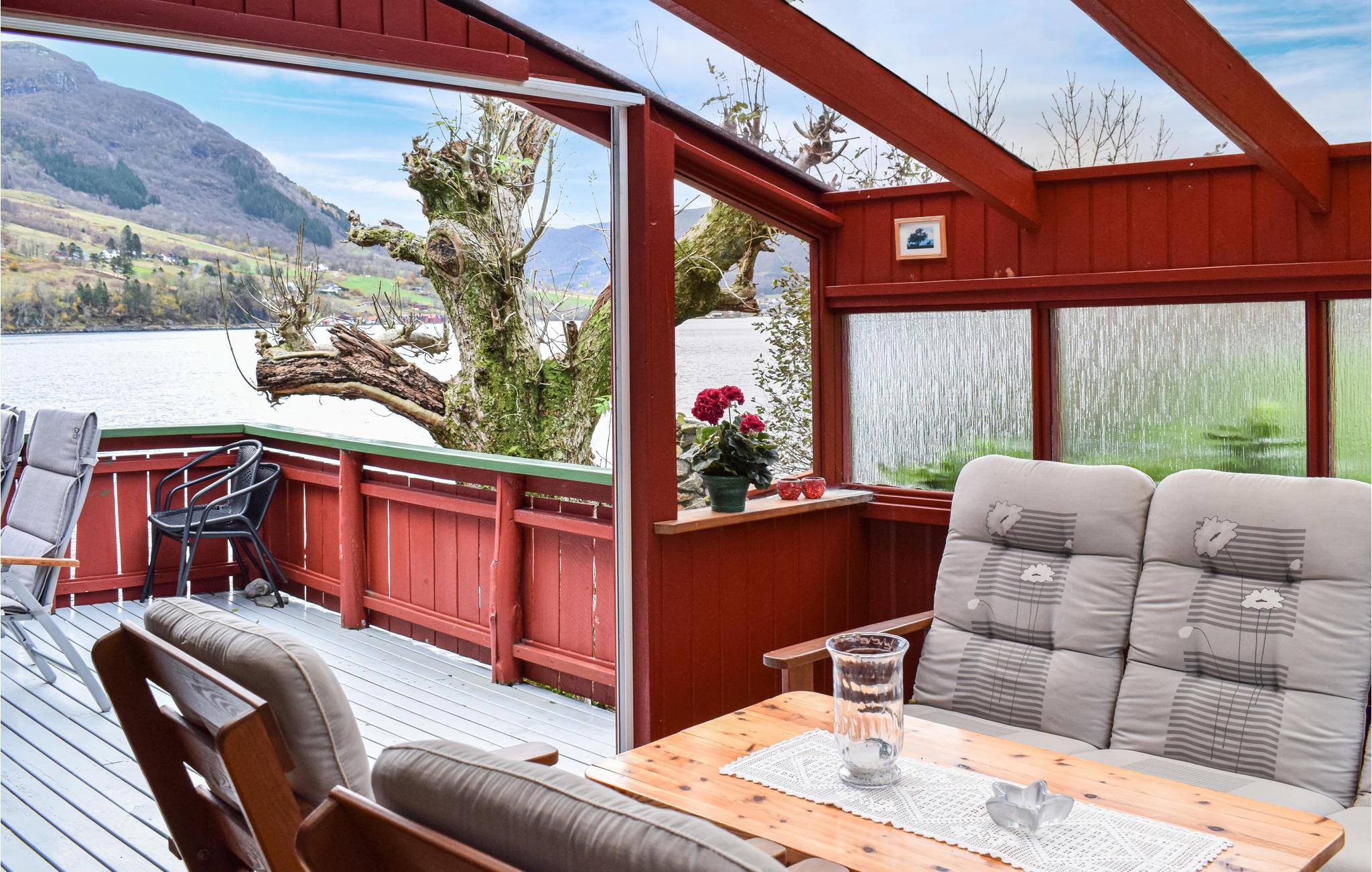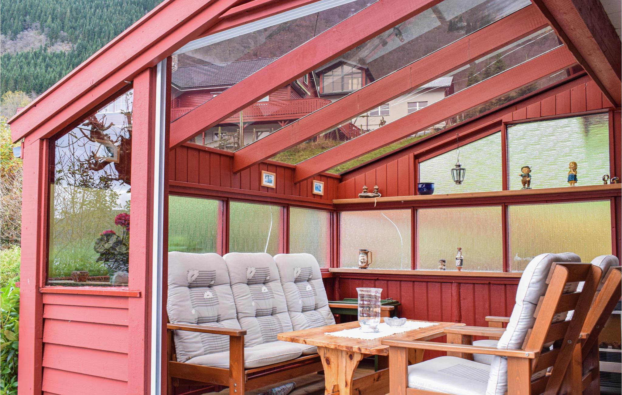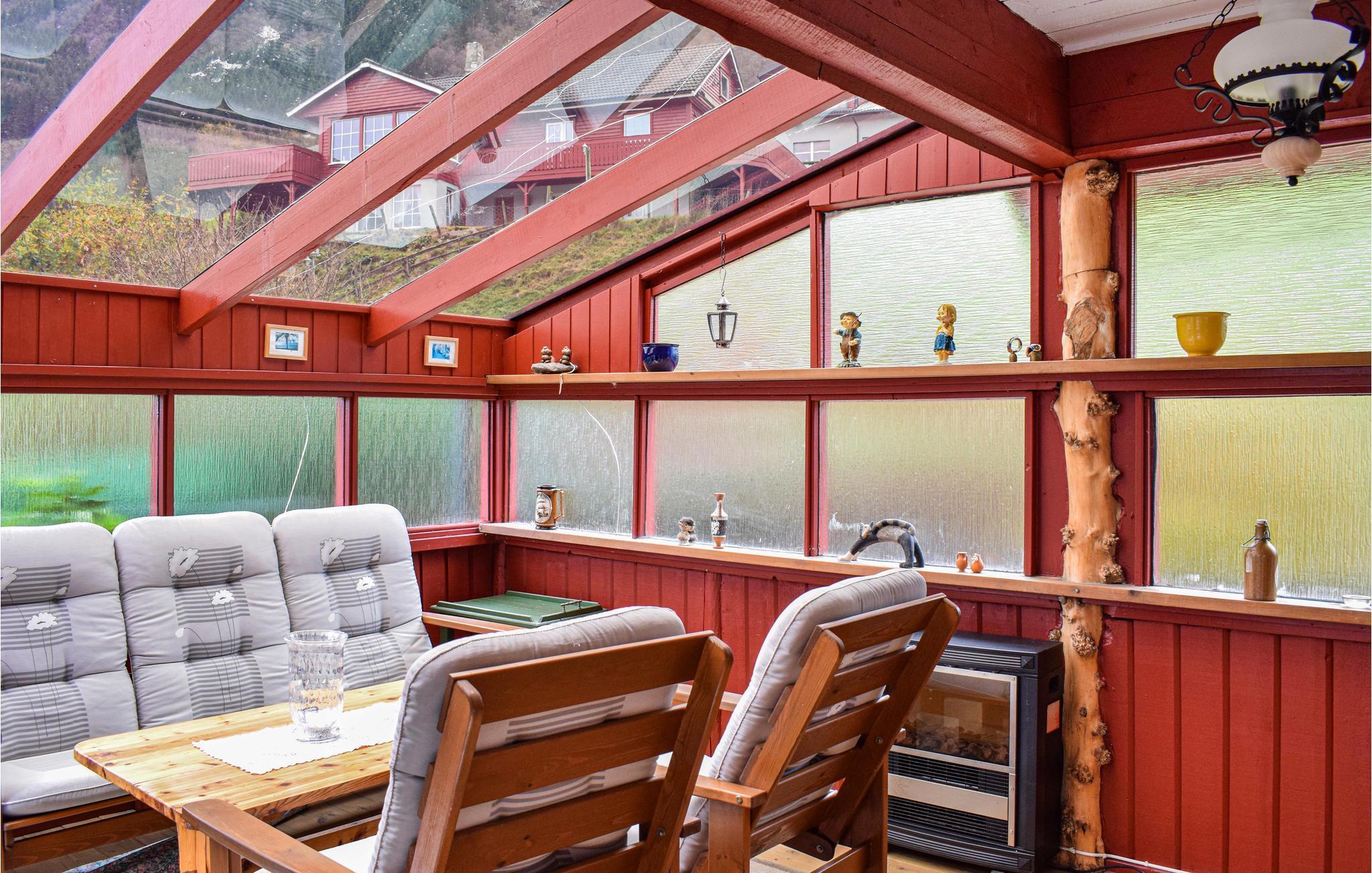 In diesem wunderbaren Haus direkt am Vindafjord lässt es sich wirklich leben. Sie erwartet ein geräumiger Wintergarten neben der schönen Terrasse mit Grill und Sitzgelegenheiten vor der fabelhaften Szenerie des Fjords. Hier verbringen Sie zusammen lange Sommerabende. Sollte das Wetter einmal nicht mitspielen, ziehen Sie sich in die gemütliche Wohnstube mit typischem Kaminofen zurück, und verbringen Ihre Zeit mit Lesen, Gesellschaftsspielen oder angeregten Gesprächen.