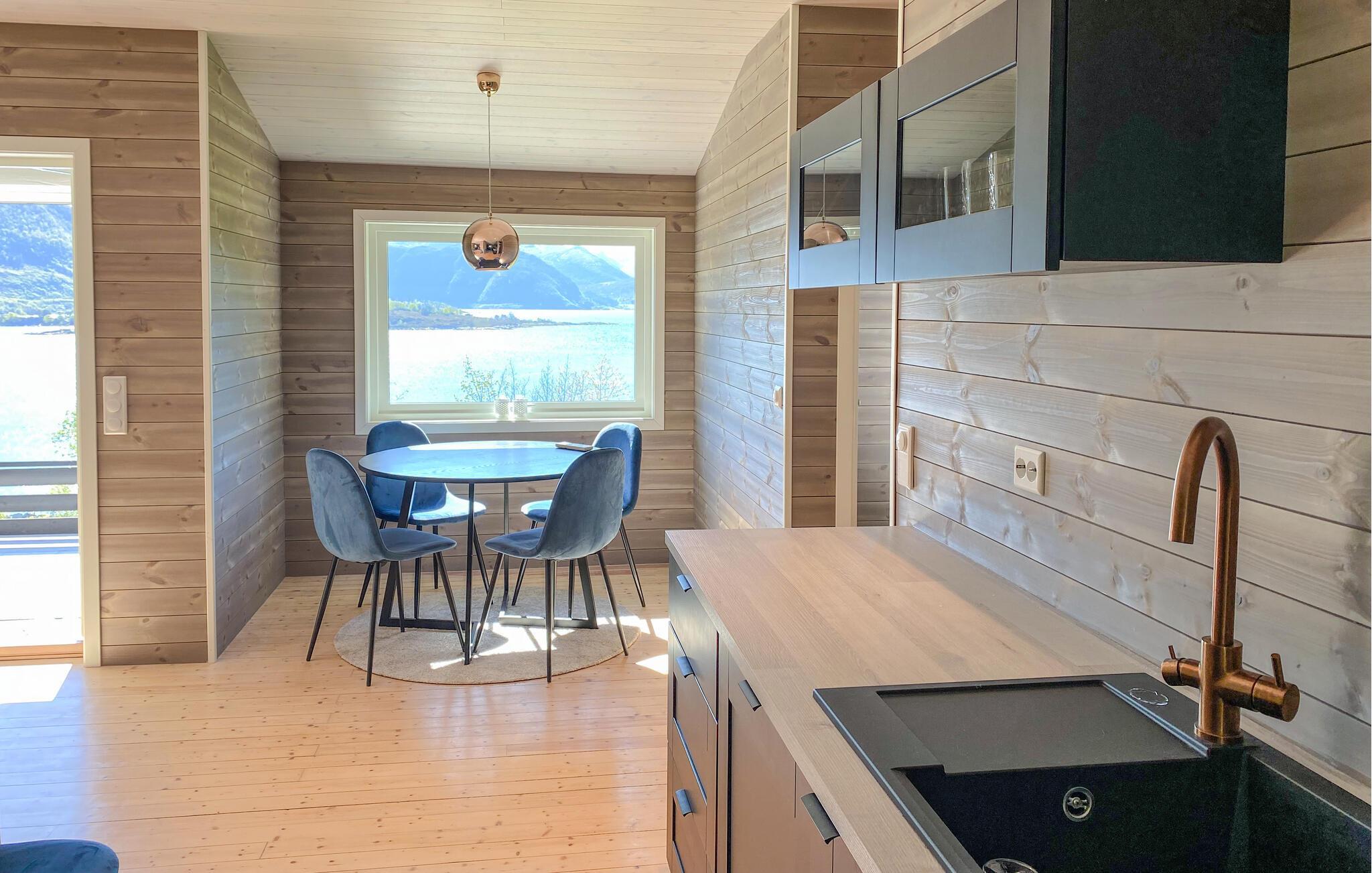 Mit tollem Blick auf den Fjord empfängt Sie das Haus in fantastischer Lage am Fjord. Das Haus ist modern und einladend, hier können Sie es sich mit der Familie nach Ihren Unternehmungen gemütlich machen, entspannen Sie in der Sauna und sorgen Sie mit einem Feuer im Kaminofen für eine besonders behagliche Stimmung. Aus dem Wohnzimmer haben Sie einen schönen Blick auf den Fjord.