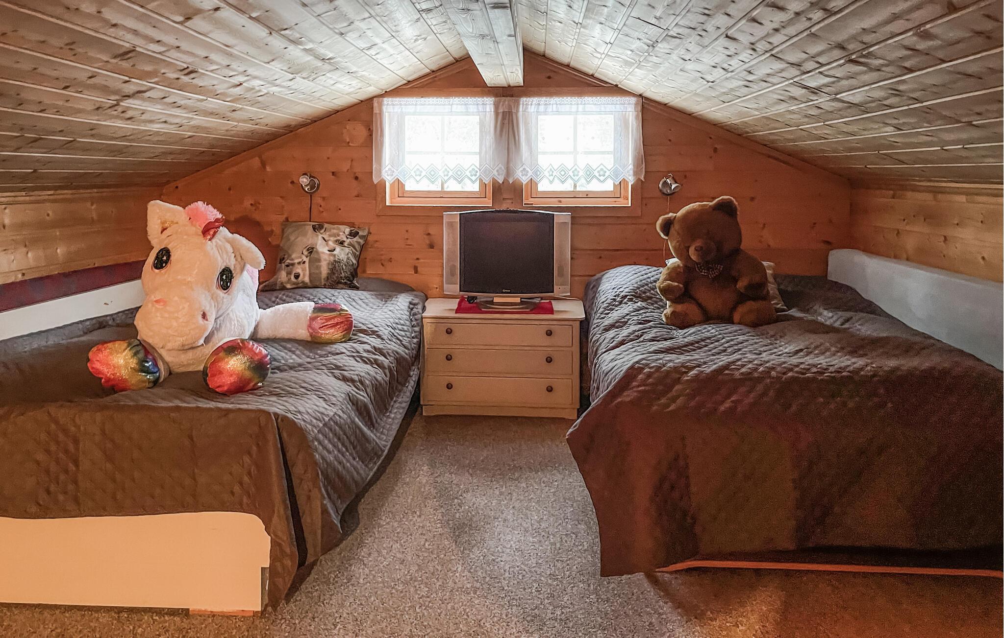 Ihr Ferienhaus besticht durch sein charmantes Interieur und die schöne Umgebung. Mit seinen warmen Holzwänden, gemütlichen Möbeln und stilvollen Akzenten bietet es ideale Voraussetzungen für eine Auszeit mit der ganzen Familie. Machen Sie es sich nach dem Frühstück in den bequemen Sofas gemütlich. In den offen gestalteten Räumen ist viel Platz für Familienaktivitäten. Spielen Sie Kartenspiele am Esstisch, toben Sie mit Ihren Kindern im Wohnbereich oder entspannen Sie sich bei einem guten Film. Die Küche bietet gute Möglichkeiten, um nach Herzenslust zu kochen und eigene Delikatessen zu genießen.