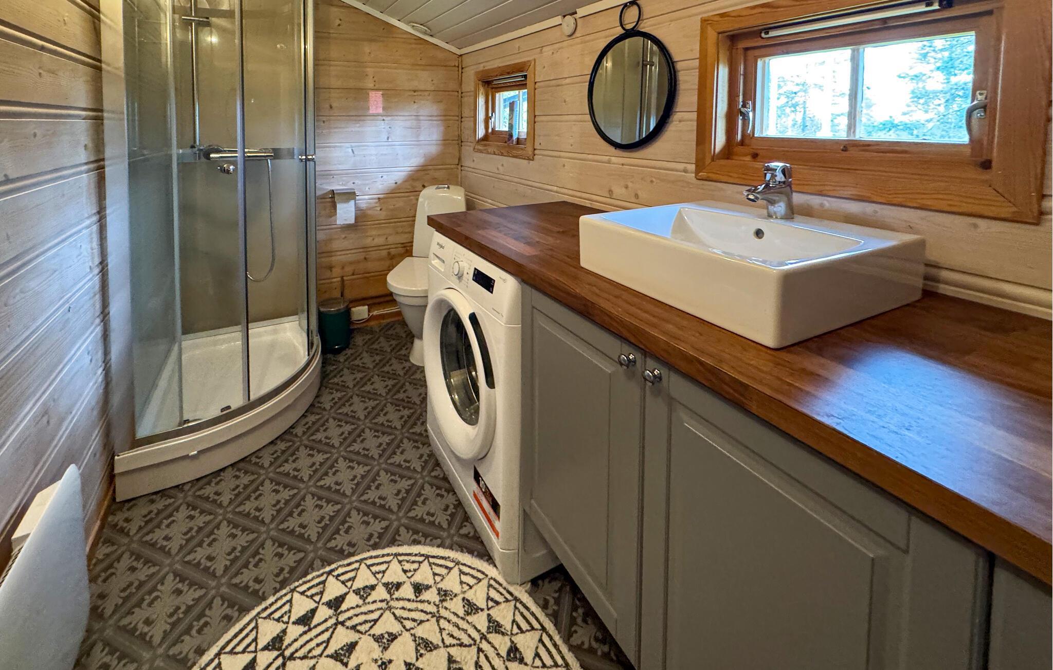 Dieses charmante Holzhaus ist wie geschaffen für eine erholsame Auszeit vom Alltag. Eine gemütliche Sofalandschaft, die zum entspannten Kaffeetrinken einlädt, und liebevolle Details schaffen eine Atmosphäre, in der Sie schnell zur Ruhe kommen. Tanken Sie neue Energie beim Musikhören, Plaudern oder beim gemeinsamen Kochen in der modernen Küche.