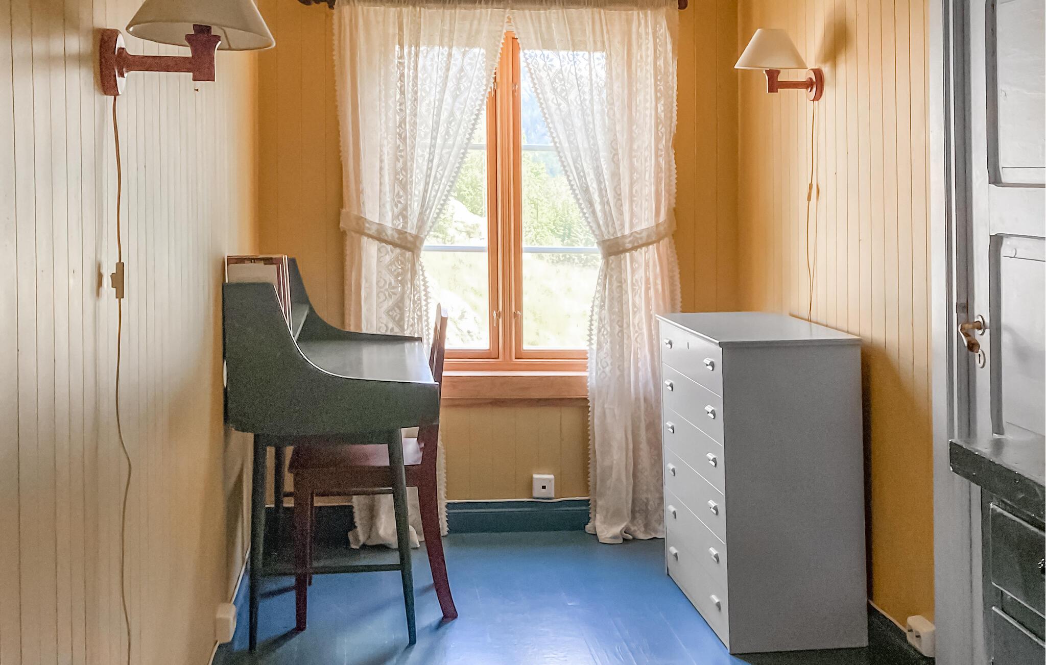 Das Haus liegt auf einer Anhöhe in Øvre Sirdal und bietet Ihnen einen fantastischen Blick über das Tal und den Fluss. Verbringen Sie entspannte Stunden auf dem flachen Außengelände rund um das Haus und lassen Sie sich vom sanften Rauschen des Flusses und der weiten Landschaft verzaubern. Im Inneren können Sie sich auf eine gemütliche und rustikale Einrichtung freuen. Machen Sie es sich im Wohnzimmer auf dem Sofa bequem und genießen Sie die wohlige Wärme des Kaminofens. Die massiven Holzwände verleihen dem Raum eine urige und behagliche Atmosphäre, die zum Verweilen einlädt. Am schönen Esstisch können Sie Ihre Mahlzeiten gemeinsam genießen und den Tag in aller Ruhe beginnen.