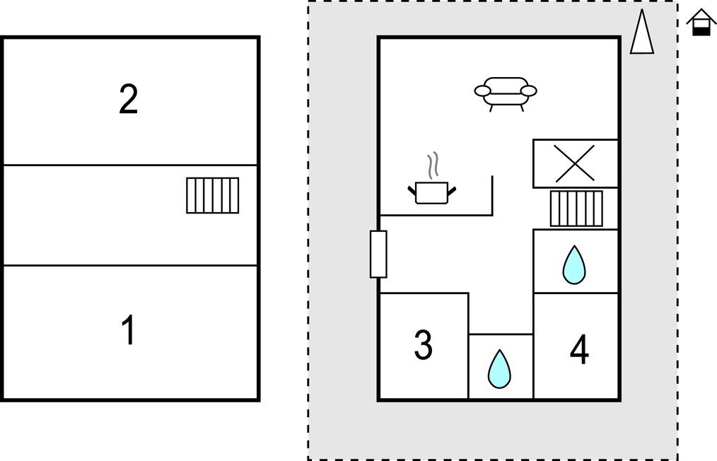 - WC mit warmem und kaltem Wasser, Dusche und Badewanne