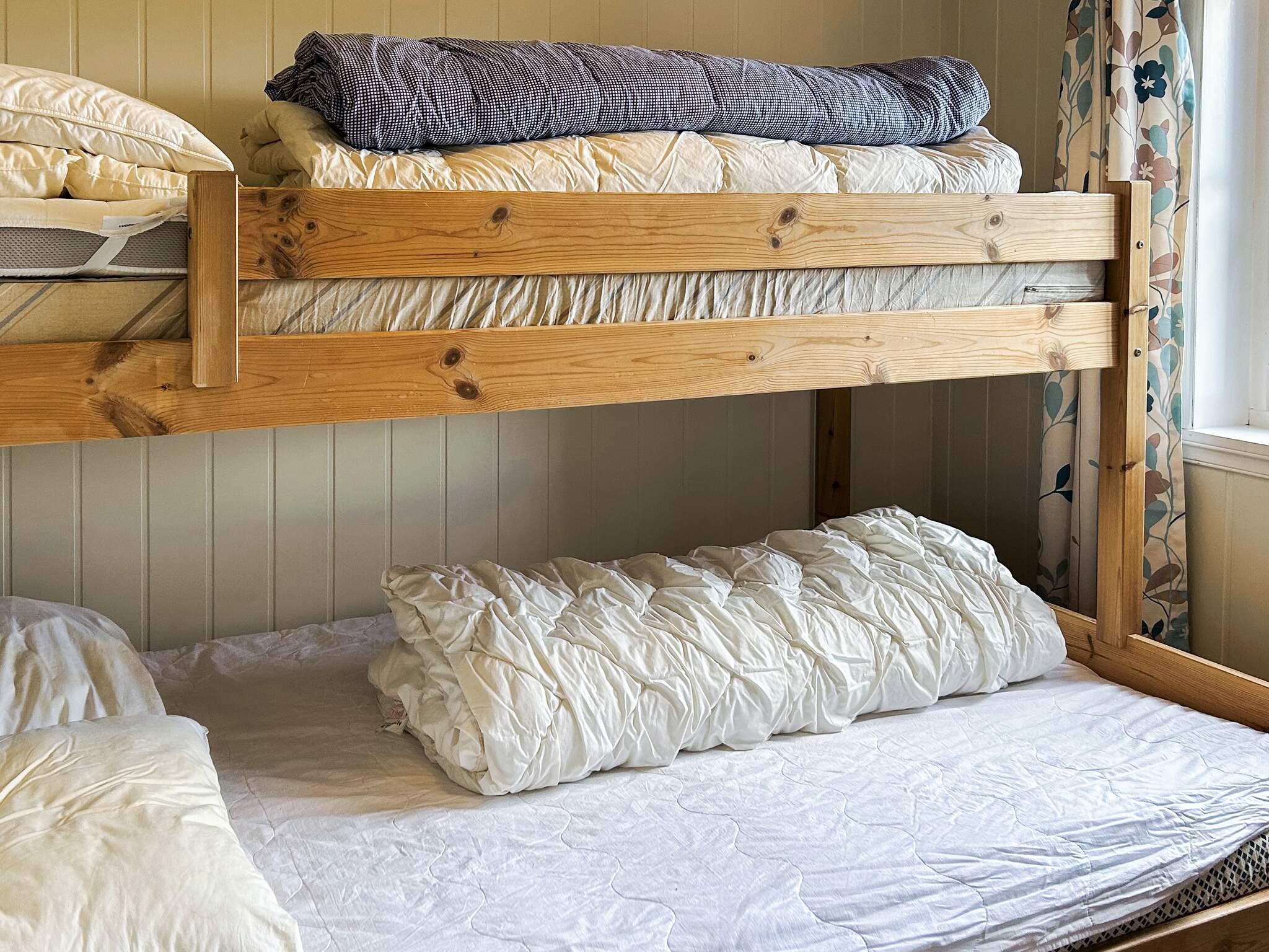 Das Ferienhaus verfügt über eine großzügige, offene Wohnküche mit Holzofen. Zwei Schlafzimmer; eines mit Doppelbett und eines mit zwei Kojen im Etagenbett; 120 cm breite Liegefläche untern, 80 cm oben. Fernseher mit Sendern über Internet/Glasfaser. Badezimmer mit Fußbodenheizung, WC, Waschbecken und Dusche. Entlang der gesamten Fassade befindet sich eine große Terrasse mit Gartenmöbeln und Grill und einer fantastischen Aussicht.