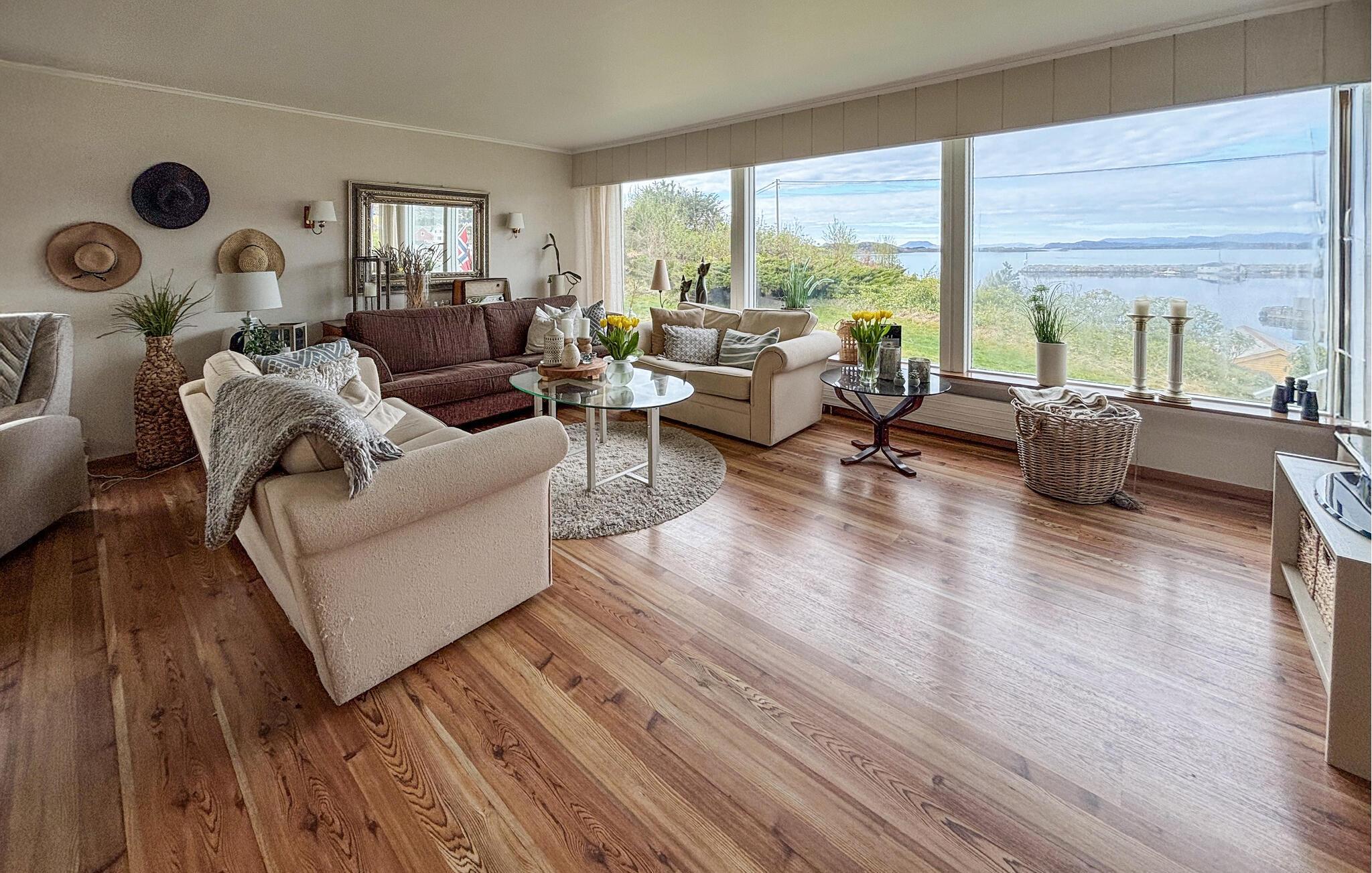 Willkommen in diesem behaglichen Ferienhaus auf der malerischen Insel Atløy. Zelebrieren Sie gesellige Kochabende in der geräumigen Küche und genießen Sie Ihre Mahlzeiten gemeinsam im einladenden Essbereich. Lassen Sie den Kaminofen für wohlige Wärme sorgen, nehmen Sie auf den bequemen Sofas Platz und freuen Sie sich auf stimmungsvolle Abende im gemütlichen Wohnzimmer