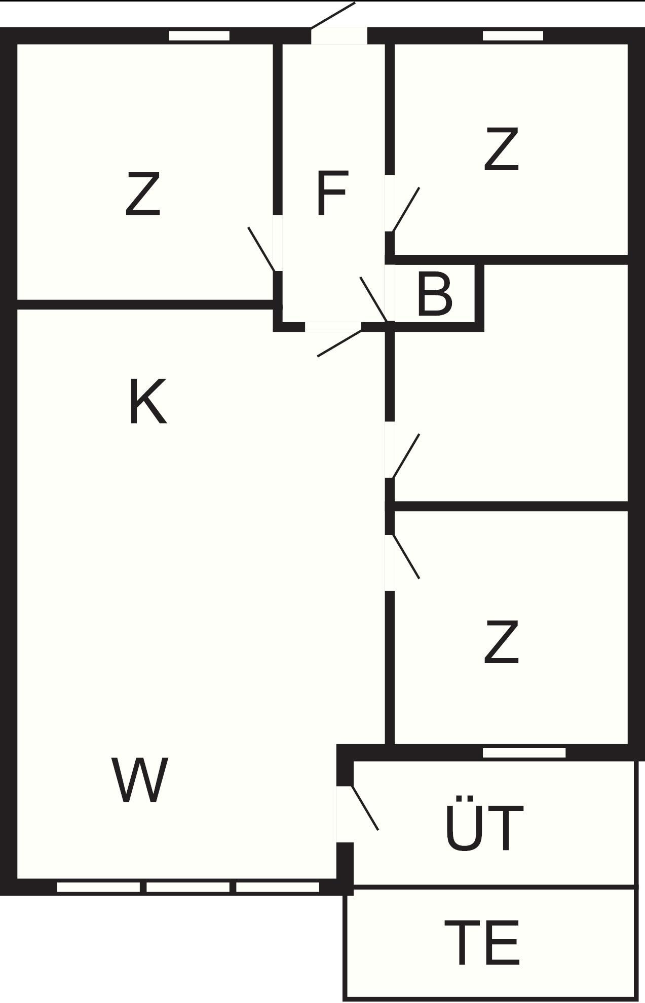 Bad: WC, Waschb., Dusche, Fußbodenheiz.