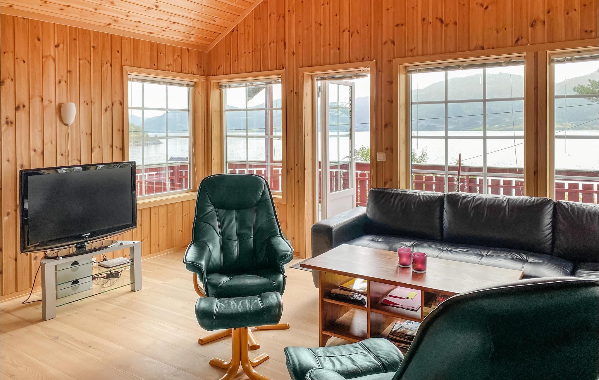 In schöner natürlicher Umgebung mit Blick auf den schimmernden Fjord und unweit des Fährhafens Arasvika-Hennset gelegen, garantiert dieses Haus einen abwechslungsreichen Urlaub. Im Inneren des Hauses sorgt Naturholz für ein warmes Aussehen und Gefühl und die hohen Decken sowie die vielen Sprossenfenstern schaffen eine geräumige, luftige und helle Atmosphäre, in der sich alle wohlfühlen werden. Nach einem erlebnisreichen Tag können Sie Ihre Füße auf dem Sofa hochlegen oder einen Spieleabend am Esstisch veranstalten. Beim Essen haben Sie einen schönen Blick auf das Grün.
