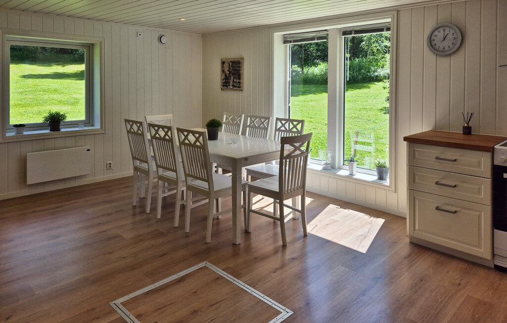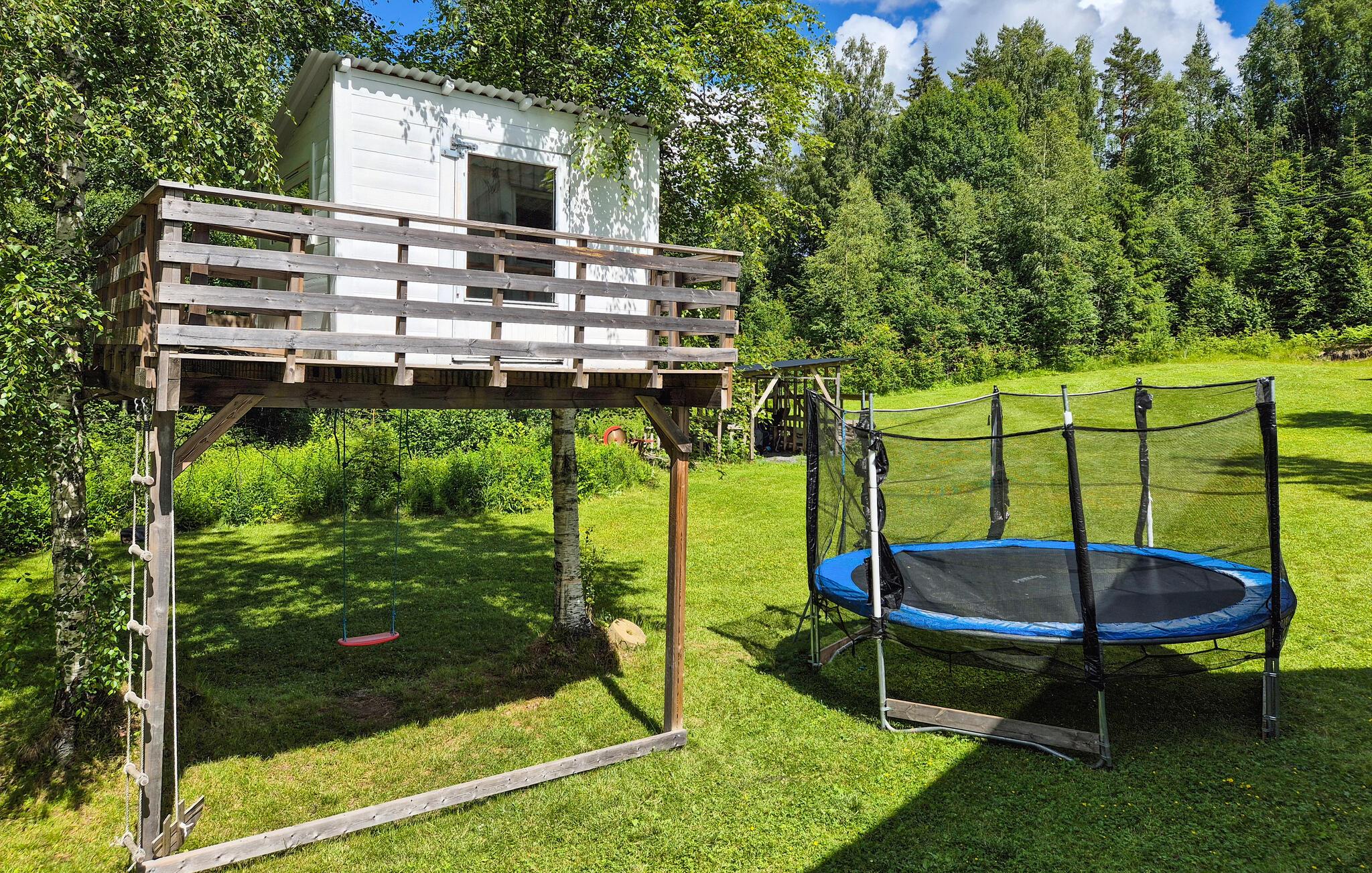 Hier können Sie die Natur genießen und sich in malerischer Umgebung richtig erholen. Von der Terrasse aus haben Sie eine schöne Aussicht auf den See und mit einem kurzen Weg hinunter zu den Bade- und Angelmöglichkeiten eignet sich alles für einen schönen Urlaub für Groß und Klein. Das Haus steht auf einem geräumigen Grundstück mit einem Trampolin und einem Baumhaus für die Kleinsten der Familie. Es gibt schöne Wandermöglichkeiten und Fahrradtouren in der Umgebung sowie die Möglichkeit, in der Saison Pilze und Beeren zu pflücken.