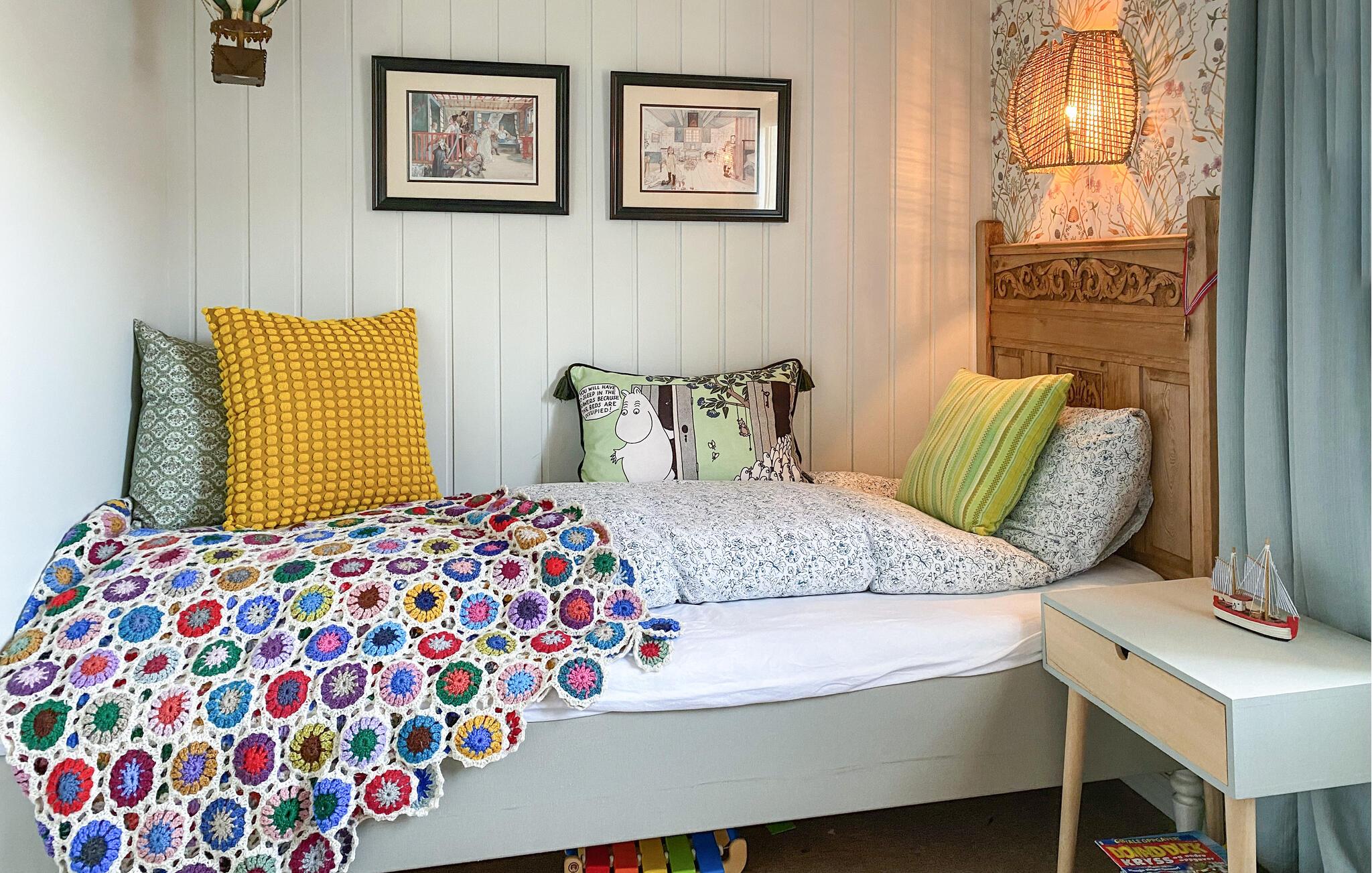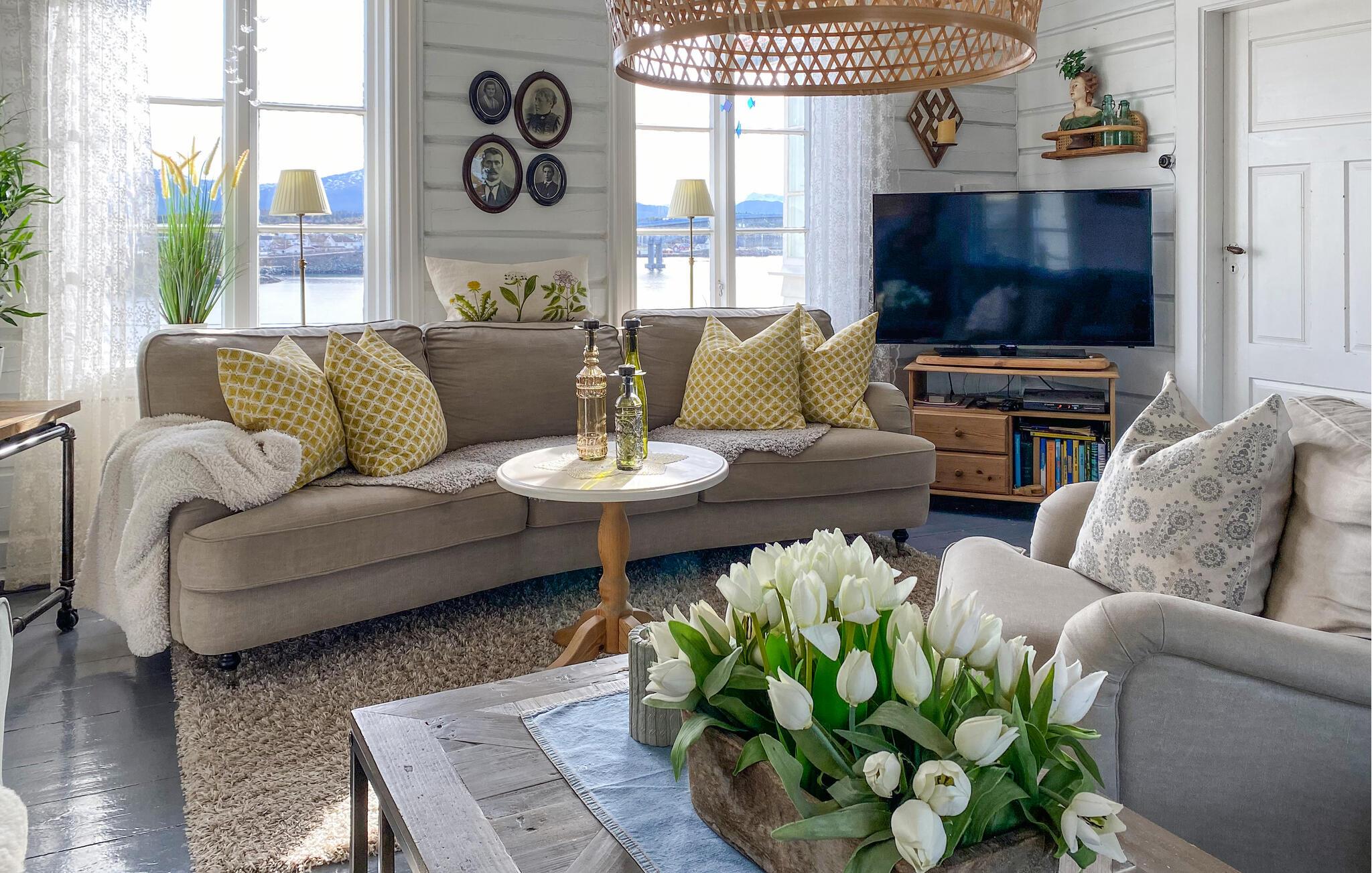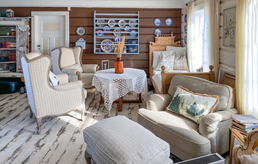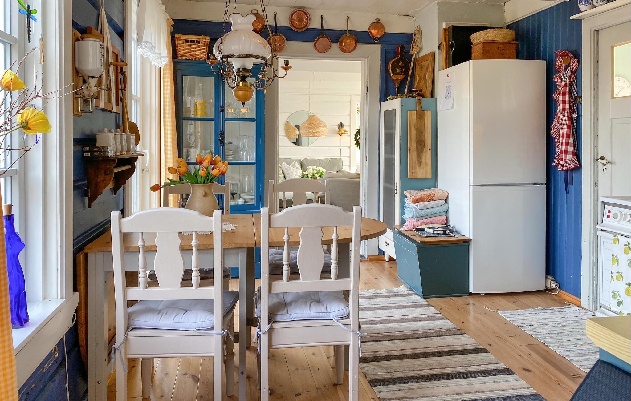 Erleben Sie eine besondere Auszeit in Ihrem liebevoll eingerichteten Ferienhaus. Die geschützte Lage direkt am Wasser und der ursprüngliche Charme des Hauses schaffen ideale Bedingungen für entspannte Tage. Verweilen Sie in den gemütlichen Wohnbereichen mit ihren hellen Holzwänden, verspielten Details und einer geschmackvollen Mischung aus rustikalem Stil und skandinavischer Leichtigkeit. Machen Sie es sich auf den Sofas bequem, schalten Sie den Fernseher ein oder blättern Sie durch ein gutes Buch. Nutzen Sie die verschiedenen Sitzbereiche für gemeinsame Mahlzeiten, Spieleabende oder ruhige Lesestunden. Bereiten Sie Ihre Mahlzeiten in der farbenfrohen, gemütlichen Küche zu, die mit liebevollen Elementen und ländlichem Flair überzeugt.